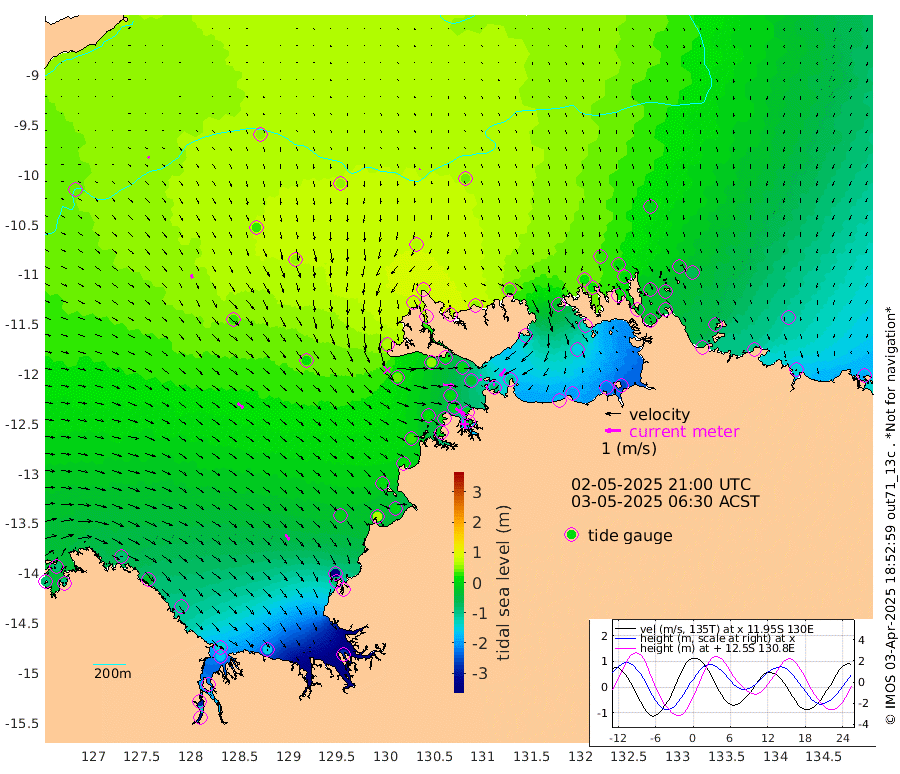 11cm/s -106T +4cm/s rms + 6cm/s 51T. Darwin_C1 52m 12cm/s -92T +4cm/s rms + 7cm/s -161T. Darwin_CW1 22m 22cm/s 72T +4cm/s rms + 8cm/s 61T. Darwin_CW2 34m 55cm/s -146T +3cm/s rms + 9cm/s 98T. Darwin_CW3 22m 3cm/s 15T +5cm/s rms + 7cm/s 88T. Darwin_C3 56m 6cm/s 54T +2cm/s rms + 9cm/s -126T. Darwin_CTbW 22m 5cm/s -167T +9cm/s rms + 2cm/s -110T. NWSLYN 196m 66cm/s 94T +1cm/s rms + 1cm/s -47T. DARBGF 30m 11cm/s 117T +7cm/s rms + 2cm/s -137T. ITFTIS 464m 25cm/s 159T +9cm/s rms + 1cm/s 74T. ITFMHB 146m 45cm/s 145T +4cm/s rms + 1cm/s -134T. ITFJBG 61m 49cm/s 132T +6cm/s rms + 4cm/s 121T. ITFFTB 108m 72cm/s 124T +4cm/s rms + 3cm/s 80T. NRSDAR 19m -85cm Carronade Island -87cm Guy Point -92cm Napier Broome Bay -87cm Lesueur Island -92cm Reveley Island -25cm Rocky Island -165cm Cape Domett -145cm Lacrosse Island -218cm Adolphus Island -287cm Pender Point -329cm Wyndham 27cm The Boxers 29cm Unnamed Shoal 49cm Loxton Shoal -146cm Pelican Island 56cm Calder Shoal 54cm Evans Shoal -280cm Quoin Island -83cm Port Keats -85cm Jones Point -341cm Catfish Island -4cm Cape Scott Offshore 57cm Cape Ford 3cm Anson Bay 57cm Goodrich Bank 11cm Peron Island North 21cm Point Jenny 26cm Native Point 18cm Fish Reef 14cm Tapa Bay 61cm Point Fawcett (Offshore) -4cm Burge Point 47cm Munkunuwa 36cm Beagle A -4cm Parsons Bank 2cm Fenton Patches 42cm Lynedoch Bank -24cm Hancox Shoal Area -8cm Nightcliff -23cm Darwin -2cm Charles Point Patches -86cm Glyde Point -169cm Chambers Bay -193cm Point Stuart -110cm Cape Hotham -153cm Christine Reef -216cm West Alligator Head -255cm East Field Island -132cm Two Hills Bay 21cm Newby Shoal -126cm Camp Point 21cm Medina Inlet South 73cm South Barlow Point 74cm St. Asaph Bay 62cm Cape Van Dieman 60cm Snake Bay 45cm Cache Point 41cm Echo Shoal 27cm Point Jahleel (Off) -26cm Cape Don 14cm Port Essington 21cm Smith Point - West 11cm NW Peacock Island 26cm North Of Jones Shoal 7cm Peacock Island -28cm Point David 12cm D'urville Point -5cm Money Shoal -33cm Copeland Island -45cm Cape Cockburn -24cm One Tree Point -58cm Hogmany Shoal -33cm New Year Island - West -37cm Grant Island -62cm Aurari Bay -99cm Cuthbert Point -64cm North Goulburn Island -122cm Paxie Shoal -141cm Entrance Island -189cm Yabooma Island