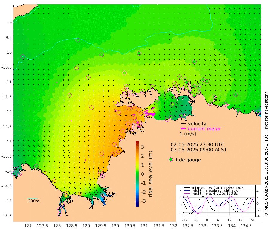 211cm/s 78T +4cm/s rms + 6cm/s 51T. Darwin_C1 52m 141cm/s 92T +4cm/s rms + 7cm/s -161T. Darwin_CW1 22m 112cm/s 74T +4cm/s rms + 8cm/s 61T. Darwin_CW2 34m 92cm/s 50T +3cm/s rms + 9cm/s 98T. Darwin_CW3 22m 160cm/s 89T +5cm/s rms + 7cm/s 88T. Darwin_C3 56m 112cm/s 65T +2cm/s rms + 9cm/s -126T. Darwin_CTbW 22m 1cm/s 157T +9cm/s rms + 2cm/s -110T. NWSLYN 196m 63cm/s 86T +1cm/s rms + 1cm/s -47T. DARBGF 30m 4cm/s 176T +7cm/s rms + 2cm/s -137T. ITFTIS 464m 23cm/s -175T +9cm/s rms + 1cm/s 74T. ITFMHB 146m 32cm/s 173T +4cm/s rms + 1cm/s -134T. ITFJBG 61m 27cm/s 155T +6cm/s rms + 4cm/s 121T. ITFFTB 108m 60cm/s 113T +4cm/s rms + 3cm/s 80T. NRSDAR 19m -73cm Carronade Island -73cm Guy Point -74cm Napier Broome Bay 12cm Lesueur Island 107cm Reveley Island 90cm Rocky Island 130cm Cape Domett 121cm Lacrosse Island 97cm Adolphus Island 7cm Pender Point -37cm Wyndham 52cm The Boxers 61cm Unnamed Shoal 12cm Loxton Shoal 156cm Pelican Island 55cm Calder Shoal 29cm Evans Shoal 110cm Quoin Island 187cm Port Keats 174cm Jones Point 50cm Catfish Island 176cm Cape Scott Offshore 205cm Cape Ford 196cm Anson Bay 39cm Goodrich Bank 186cm Peron Island North 181cm Point Jenny 181cm Native Point 194cm Fish Reef 199cm Tapa Bay 130cm Point Fawcett (Offshore) 200cm Burge Point 211cm Munkunuwa 162cm Beagle A 202cm Parsons Bank 191cm Fenton Patches 22cm Lynedoch Bank 184cm Hancox Shoal Area 202cm Nightcliff 210cm Darwin 198cm Charles Point Patches 116cm Glyde Point 37cm Chambers Bay 26cm Point Stuart 82cm Cape Hotham 38cm Christine Reef 24cm West Alligator Head -16cm East Field Island 52cm Two Hills Bay 111cm Newby Shoal 39cm Camp Point 204cm Medina Inlet South 117cm South Barlow Point 92cm St. Asaph Bay 46cm Cape Van Dieman 52cm Snake Bay 43cm Cache Point -16cm Echo Shoal 49cm Point Jahleel (Off) 62cm Cape Don 46cm Port Essington 52cm Smith Point - West 40cm NW Peacock Island 37cm North Of Jones Shoal 13cm Peacock Island 28cm Point David 46cm D'urville Point 19cm Money Shoal 26cm Copeland Island 40cm Cape Cockburn 33cm One Tree Point 28cm Hogmany Shoal 25cm New Year Island - West 30cm Grant Island 24cm Aurari Bay 19cm Cuthbert Point 27cm North Goulburn Island 8cm Paxie Shoal 3cm Entrance Island -20cm Yabooma Island