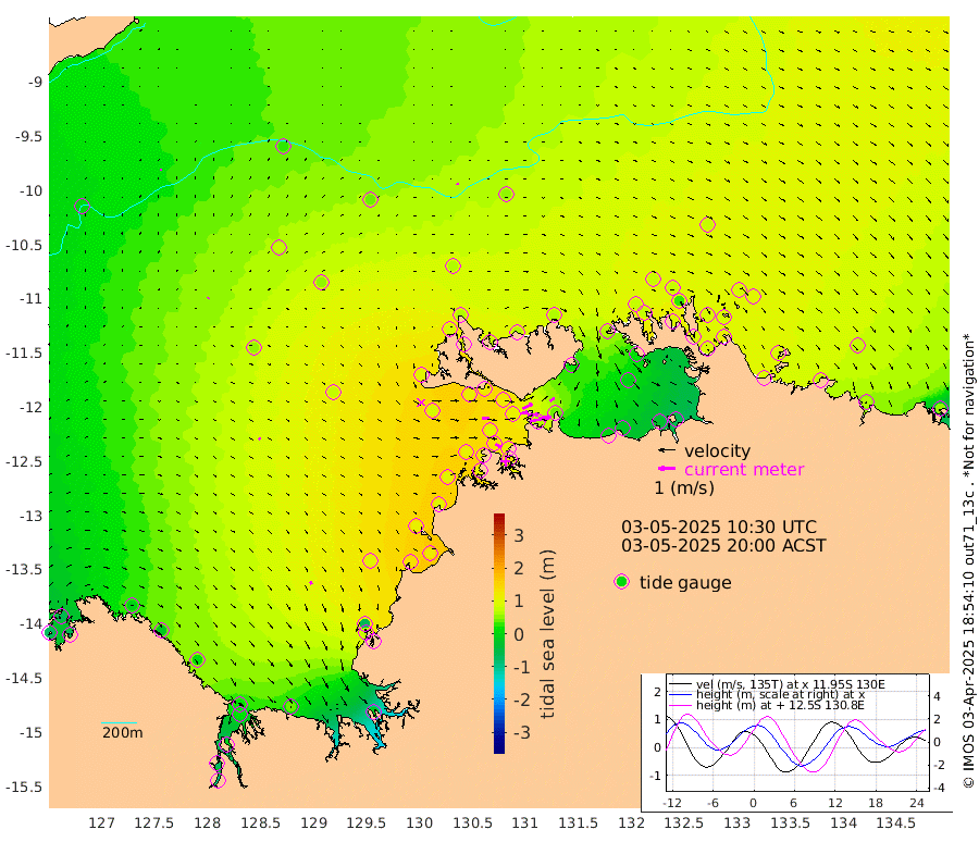 108cm/s 79T +4cm/s rms + 6cm/s 51T. Darwin_C1 52m 76cm/s 85T +4cm/s rms + 7cm/s -161T. Darwin_CW1 22m 43cm/s 77T +4cm/s rms + 8cm/s 61T. Darwin_CW2 34m 33cm/s 57T +3cm/s rms + 9cm/s 98T. Darwin_CW3 22m 62cm/s 88T +5cm/s rms + 7cm/s 88T. Darwin_C3 56m 65cm/s 63T +2cm/s rms + 9cm/s -126T. Darwin_CTbW 22m 8cm/s 124T +9cm/s rms + 2cm/s -110T. NWSLYN 196m 39cm/s 90T +1cm/s rms + 1cm/s -47T. DARBGF 30m 7cm/s 10T +7cm/s rms + 2cm/s -137T. ITFTIS 464m 6cm/s 32T +9cm/s rms + 1cm/s 74T. ITFMHB 146m 19cm/s 154T +4cm/s rms + 1cm/s -134T. ITFJBG 61m 13cm/s 119T +6cm/s rms + 4cm/s 121T. ITFFTB 108m 34cm/s 116T +4cm/s rms + 3cm/s 80T. NRSDAR 19m -66cm Carronade Island -68cm Guy Point -63cm Napier Broome Bay -7cm Lesueur Island 14cm Reveley Island -18cm Rocky Island 19cm Cape Domett 13cm Lacrosse Island -7cm Adolphus Island -73cm Pender Point -101cm Wyndham 50cm The Boxers 78cm Unnamed Shoal 30cm Loxton Shoal 42cm Pelican Island 50cm Calder Shoal 42cm Evans Shoal -12cm Quoin Island 79cm Port Keats 74cm Jones Point -61cm Catfish Island 93cm Cape Scott Offshore 125cm Cape Ford 114cm Anson Bay 60cm Goodrich Bank 110cm Peron Island North 99cm Point Jenny 100cm Native Point 107cm Fish Reef 111cm Tapa Bay 94cm Point Fawcett (Offshore) 107cm Burge Point 112cm Munkunuwa 88cm Beagle A 119cm Parsons Bank 96cm Fenton Patches 52cm Lynedoch Bank 104cm Hancox Shoal Area 105cm Nightcliff 125cm Darwin 130cm Charles Point Patches 60cm Glyde Point -11cm Chambers Bay -19cm Point Stuart 36cm Cape Hotham -10cm Christine Reef -33cm West Alligator Head -62cm East Field Island 16cm Two Hills Bay 74cm Newby Shoal 17cm Camp Point 119cm Medina Inlet South 98cm South Barlow Point 79cm St. Asaph Bay 66cm Cape Van Dieman 77cm Snake Bay 62cm Cache Point 2cm Echo Shoal 60cm Point Jahleel (Off) 64cm Cape Don 78cm Port Essington 74cm Smith Point - West 75cm NW Peacock Island 72cm North Of Jones Shoal 27cm Peacock Island 86cm Point David 81cm D'urville Point 76cm Money Shoal 83cm Copeland Island 107cm Cape Cockburn 86cm One Tree Point 95cm Hogmany Shoal 82cm New Year Island - West 85cm Grant Island 80cm Aurari Bay 78cm Cuthbert Point 85cm North Goulburn Island 76cm Paxie Shoal 60cm Entrance Island 52cm Yabooma Island