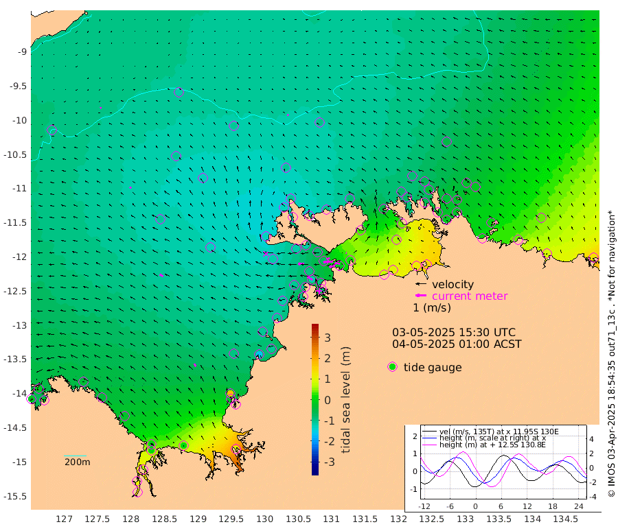 57cm/s -103T +4cm/s rms + 6cm/s 51T. Darwin_C1 52m 47cm/s -86T +4cm/s rms + 7cm/s -161T. Darwin_CW1 22m 49cm/s -107T +4cm/s rms + 8cm/s 61T. Darwin_CW2 34m 8cm/s -67T +3cm/s rms + 9cm/s 98T. Darwin_CW3 22m 66cm/s -93T +5cm/s rms + 7cm/s 88T. Darwin_C3 56m 32cm/s -115T +2cm/s rms + 9cm/s -126T. Darwin_CTbW 22m 10cm/s -43T +9cm/s rms + 2cm/s -110T. NWSLYN 196m 59cm/s -90T +1cm/s rms + 1cm/s -47T. DARBGF 30m 11cm/s -121T +7cm/s rms + 2cm/s -137T. ITFTIS 464m 16cm/s -41T +9cm/s rms + 1cm/s 74T. ITFMHB 146m 28cm/s -33T +4cm/s rms + 1cm/s -134T. ITFJBG 61m 36cm/s -58T +6cm/s rms + 4cm/s 121T. ITFFTB 108m 59cm/s -58T +4cm/s rms + 3cm/s 80T. NRSDAR 19m -18cm Carronade Island -21cm Guy Point -27cm Napier Broome Bay -39cm Lesueur Island -23cm Reveley Island -39cm Rocky Island 9cm Cape Domett 0cm Lacrosse Island 59cm Adolphus Island 107cm Pender Point 141cm Wyndham -112cm The Boxers -109cm Unnamed Shoal -116cm Loxton Shoal 10cm Pelican Island -127cm Calder Shoal -106cm Evans Shoal 95cm Quoin Island -52cm Port Keats -30cm Jones Point 171cm Catfish Island -97cm Cape Scott Offshore -163cm Cape Ford -106cm Anson Bay -109cm Goodrich Bank -105cm Peron Island North -112cm Point Jenny -117cm Native Point -108cm Fish Reef -112cm Tapa Bay -135cm Point Fawcett (Offshore) -102cm Burge Point -124cm Munkunuwa -118cm Beagle A -89cm Parsons Bank -97cm Fenton Patches -95cm Lynedoch Bank -73cm Hancox Shoal Area -93cm Nightcliff -92cm Darwin -113cm Charles Point Patches -15cm Glyde Point 73cm Chambers Bay 96cm Point Stuart 18cm Cape Hotham 58cm Christine Reef 114cm West Alligator Head 149cm East Field Island 43cm Two Hills Bay -127cm Newby Shoal 30cm Camp Point -119cm Medina Inlet South -136cm South Barlow Point -133cm St. Asaph Bay -112cm Cape Van Dieman -116cm Snake Bay -101cm Cache Point -96cm Echo Shoal -83cm Point Jahleel (Off) -46cm Cape Don -71cm Port Essington -71cm Smith Point - West -62cm NW Peacock Island -81cm North Of Jones Shoal -26cm Peacock Island -26cm Point David -62cm D'urville Point -53cm Money Shoal -17cm Copeland Island -25cm Cape Cockburn -35cm One Tree Point -15cm Hogmany Shoal -30cm New Year Island - West -25cm Grant Island 10cm Aurari Bay 37cm Cuthbert Point 2cm North Goulburn Island 45cm Paxie Shoal 81cm Entrance Island 132cm Yabooma Island