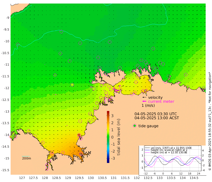 84cm/s 78T +4cm/s rms + 6cm/s 51T. Darwin_C1 52m 62cm/s 91T +4cm/s rms + 7cm/s -161T. Darwin_CW1 22m 36cm/s 71T +4cm/s rms + 8cm/s 61T. Darwin_CW2 34m 53cm/s 47T +3cm/s rms + 9cm/s 98T. Darwin_CW3 22m 59cm/s 91T +5cm/s rms + 7cm/s 88T. Darwin_C3 56m 50cm/s 66T +2cm/s rms + 9cm/s -126T. Darwin_CTbW 22m 2cm/s 4T +9cm/s rms + 2cm/s -110T. NWSLYN 196m 14cm/s -68T +1cm/s rms + 1cm/s -47T. DARBGF 30m 4cm/s -80T +7cm/s rms + 2cm/s -137T. ITFTIS 464m 5cm/s -92T +9cm/s rms + 1cm/s 74T. ITFMHB 146m 14cm/s -47T +4cm/s rms + 1cm/s -134T. ITFJBG 61m 16cm/s -60T +6cm/s rms + 4cm/s 121T. ITFFTB 108m 24cm/s -47T +4cm/s rms + 3cm/s 80T. NRSDAR 19m 85cm Carronade Island 87cm Guy Point 94cm Napier Broome Bay 104cm Lesueur Island 133cm Reveley Island 100cm Rocky Island 188cm Cape Domett 176cm Lacrosse Island 200cm Adolphus Island 232cm Pender Point 245cm Wyndham 30cm The Boxers 20cm Unnamed Shoal -2cm Loxton Shoal 173cm Pelican Island 12cm Calder Shoal -8cm Evans Shoal 243cm Quoin Island 144cm Port Keats 137cm Jones Point 285cm Catfish Island 88cm Cape Scott Offshore 66cm Cape Ford 84cm Anson Bay -13cm Goodrich Bank 74cm Peron Island North 75cm Point Jenny 73cm Native Point 79cm Fish Reef 82cm Tapa Bay 28cm Point Fawcett (Offshore) 95cm Burge Point 64cm Munkunuwa 63cm Beagle A 80cm Parsons Bank 91cm Fenton Patches -12cm Lynedoch Bank 88cm Hancox Shoal Area 94cm Nightcliff 98cm Darwin 81cm Charles Point Patches 107cm Glyde Point 138cm Chambers Bay 148cm Point Stuart 109cm Cape Hotham 129cm Christine Reef 166cm West Alligator Head 180cm East Field Island 113cm Two Hills Bay 59cm Newby Shoal 105cm Camp Point 76cm Medina Inlet South 5cm South Barlow Point 1cm St. Asaph Bay -15cm Cape Van Dieman -16cm Snake Bay -5cm Cache Point -2cm Echo Shoal 6cm Point Jahleel (Off) 39cm Cape Don -1cm Port Essington -1cm Smith Point - West -4cm NW Peacock Island -9cm North Of Jones Shoal -4cm Peacock Island 0cm Point David -5cm D'urville Point -8cm Money Shoal 1cm Copeland Island 8cm Cape Cockburn 3cm One Tree Point 14cm Hogmany Shoal 7cm New Year Island - West 8cm Grant Island 15cm Aurari Bay 32cm Cuthbert Point 19cm North Goulburn Island 43cm Paxie Shoal 50cm Entrance Island 59cm Yabooma Island