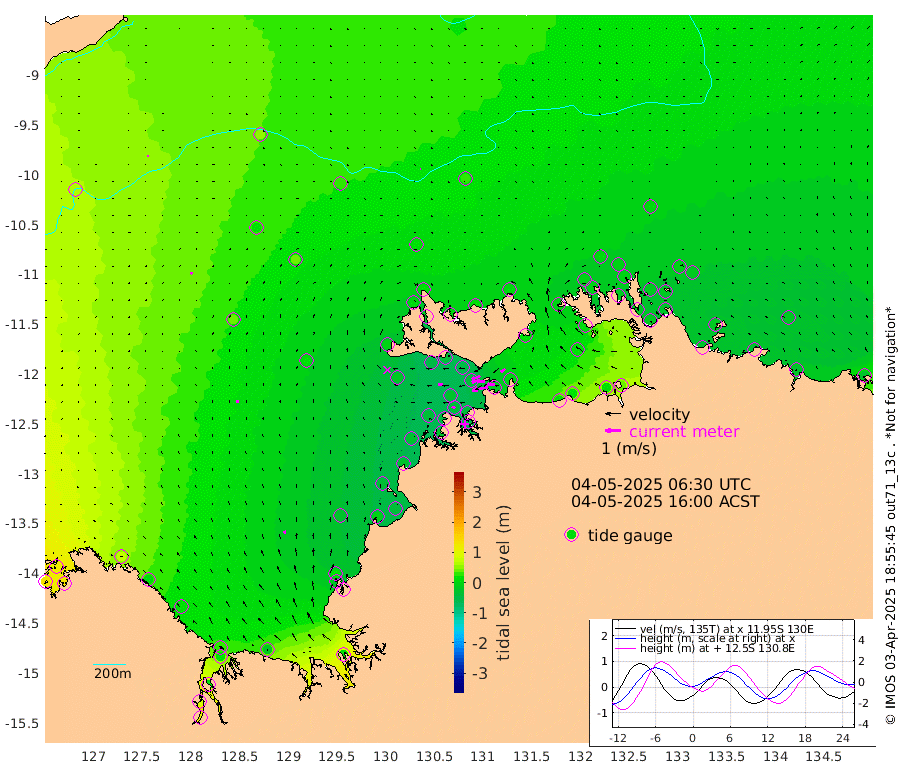 104cm/s -102T +4cm/s rms + 6cm/s 51T. Darwin_C1 52m 53cm/s -89T +4cm/s rms + 7cm/s -161T. Darwin_CW1 22m 43cm/s -107T +4cm/s rms + 8cm/s 61T. Darwin_CW2 34m 36cm/s -127T +3cm/s rms + 9cm/s 98T. Darwin_CW3 22m 50cm/s -91T +5cm/s rms + 7cm/s 88T. Darwin_C3 56m 58cm/s -115T +2cm/s rms + 9cm/s -126T. Darwin_CTbW 22m 5cm/s 111T +9cm/s rms + 2cm/s -110T. NWSLYN 196m 28cm/s -89T +1cm/s rms + 1cm/s -47T. DARBGF 30m 9cm/s 20T +7cm/s rms + 2cm/s -137T. ITFTIS 464m 13cm/s 22T +9cm/s rms + 1cm/s 74T. ITFMHB 146m 21cm/s -15T +4cm/s rms + 1cm/s -134T. ITFJBG 61m 15cm/s -6T +6cm/s rms + 4cm/s 121T. ITFFTB 108m 25cm/s -69T +4cm/s rms + 3cm/s 80T. NRSDAR 19m 120cm Carronade Island 125cm Guy Point 131cm Napier Broome Bay 78cm Lesueur Island 18cm Reveley Island 8cm Rocky Island 19cm Cape Domett 23cm Lacrosse Island 21cm Adolphus Island 90cm Pender Point 111cm Wyndham 39cm The Boxers 22cm Unnamed Shoal 53cm Loxton Shoal -15cm Pelican Island 36cm Calder Shoal 29cm Evans Shoal 17cm Quoin Island -21cm Port Keats -27cm Jones Point 15cm Catfish Island -27cm Cape Scott Offshore -5cm Cape Ford -40cm Anson Bay 19cm Goodrich Bank -41cm Peron Island North -29cm Point Jenny -27cm Native Point -40cm Fish Reef -37cm Tapa Bay -10cm Point Fawcett (Offshore) -33cm Burge Point -50cm Munkunuwa -19cm Beagle A -55cm Parsons Bank -33cm Fenton Patches 25cm Lynedoch Bank -45cm Hancox Shoal Area -43cm Nightcliff -47cm Darwin -37cm Charles Point Patches -15cm Glyde Point 14cm Chambers Bay 14cm Point Stuart -8cm Cape Hotham 17cm Christine Reef 17cm West Alligator Head 38cm East Field Island 0cm Two Hills Bay 20cm Newby Shoal 19cm Camp Point -42cm Medina Inlet South -13cm South Barlow Point 2cm St. Asaph Bay 15cm Cape Van Dieman 10cm Snake Bay 16cm Cache Point 63cm Echo Shoal 8cm Point Jahleel (Off) -4cm Cape Don -4cm Port Essington -10cm Smith Point - West -7cm NW Peacock Island 3cm North Of Jones Shoal -1cm Peacock Island -16cm Point David -14cm D'urville Point 3cm Money Shoal -20cm Copeland Island -25cm Cape Cockburn -14cm One Tree Point -15cm Hogmany Shoal -8cm New Year Island - West -14cm Grant Island -27cm Aurari Bay -28cm Cuthbert Point -22cm North Goulburn Island -12cm Paxie Shoal -25cm Entrance Island -29cm Yabooma Island