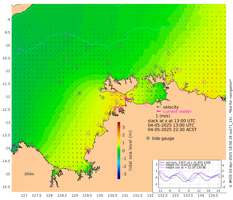 122cm/s 78T +4cm/s rms + 6cm/s 51T. Darwin_C1 52m 67cm/s 91T +4cm/s rms + 7cm/s -161T. Darwin_CW1 22m 38cm/s 75T +4cm/s rms + 8cm/s 61T. Darwin_CW2 34m 66cm/s 45T +3cm/s rms + 9cm/s 98T. Darwin_CW3 22m 63cm/s 90T +5cm/s rms + 7cm/s 88T. Darwin_C3 56m 60cm/s 65T +2cm/s rms + 9cm/s -126T. Darwin_CTbW 22m 3cm/s 121T +9cm/s rms + 2cm/s -110T. NWSLYN 196m 12cm/s 85T +1cm/s rms + 1cm/s -47T. DARBGF 30m 5cm/s -83T +7cm/s rms + 2cm/s -137T. ITFTIS 464m 6cm/s -51T +9cm/s rms + 1cm/s 74T. ITFMHB 146m 6cm/s -149T +4cm/s rms + 1cm/s -134T. ITFJBG 61m 7cm/s -94T +6cm/s rms + 4cm/s 121T. ITFFTB 108m 9cm/s 90T +4cm/s rms + 3cm/s 80T. NRSDAR 19m -70cm Carronade Island -72cm Guy Point -71cm Napier Broome Bay -21cm Lesueur Island 25cm Reveley Island -20cm Rocky Island 52cm Cape Domett 41cm Lacrosse Island 53cm Adolphus Island 13cm Pender Point 3cm Wyndham -12cm The Boxers 15cm Unnamed Shoal -38cm Loxton Shoal 78cm Pelican Island -21cm Calder Shoal -17cm Evans Shoal 81cm Quoin Island 74cm Port Keats 78cm Jones Point 106cm Catfish Island 61cm Cape Scott Offshore 25cm Cape Ford 77cm Anson Bay -5cm Goodrich Bank 71cm Peron Island North 52cm Point Jenny 50cm Native Point 64cm Fish Reef 65cm Tapa Bay 29cm Point Fawcett (Offshore) 64cm Burge Point 61cm Munkunuwa 31cm Beagle A 87cm Parsons Bank 54cm Fenton Patches -6cm Lynedoch Bank 82cm Hancox Shoal Area 73cm Nightcliff 90cm Darwin 80cm Charles Point Patches 66cm Glyde Point 52cm Chambers Bay 58cm Point Stuart 64cm Cape Hotham 41cm Christine Reef 58cm West Alligator Head 44cm East Field Island 59cm Two Hills Bay 6cm Newby Shoal 43cm Camp Point 69cm Medina Inlet South 25cm South Barlow Point 7cm St. Asaph Bay -1cm Cape Van Dieman 8cm Snake Bay 4cm Cache Point -54cm Echo Shoal 14cm Point Jahleel (Off) 46cm Cape Don 37cm Port Essington 36cm Smith Point - West 39cm NW Peacock Island 27cm North Of Jones Shoal 13cm Peacock Island 69cm Point David 46cm D'urville Point 41cm Money Shoal 71cm Copeland Island 92cm Cape Cockburn 66cm One Tree Point 86cm Hogmany Shoal 62cm New Year Island - West 69cm Grant Island 86cm Aurari Bay 101cm Cuthbert Point 87cm North Goulburn Island 104cm Paxie Shoal 107cm Entrance Island 128cm Yabooma Island