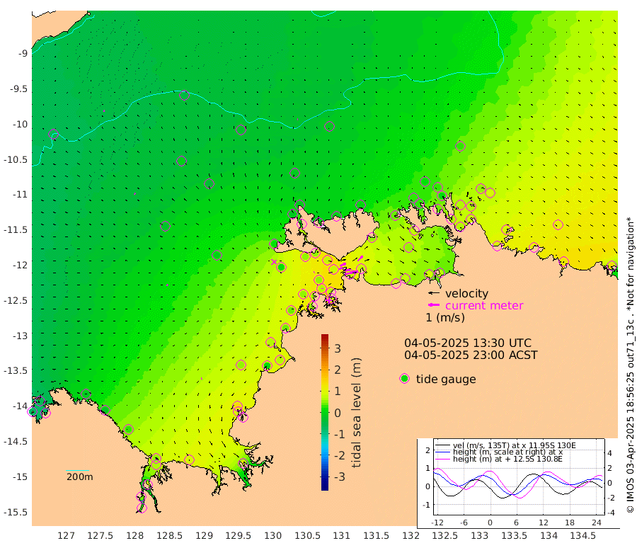 114cm/s 78T +4cm/s rms + 6cm/s 51T. Darwin_C1 52m 59cm/s 92T +4cm/s rms + 7cm/s -161T. Darwin_CW1 22m 34cm/s 73T +4cm/s rms + 8cm/s 61T. Darwin_CW2 34m 65cm/s 44T +3cm/s rms + 9cm/s 98T. Darwin_CW3 22m 56cm/s 90T +5cm/s rms + 7cm/s 88T. Darwin_C3 56m 56cm/s 65T +2cm/s rms + 9cm/s -126T. Darwin_CTbW 22m 1cm/s 100T +9cm/s rms + 2cm/s -110T. NWSLYN 196m 3cm/s 65T +1cm/s rms + 1cm/s -47T. DARBGF 30m 6cm/s -97T +7cm/s rms + 2cm/s -137T. ITFTIS 464m 8cm/s -56T +9cm/s rms + 1cm/s 74T. ITFMHB 146m 6cm/s -118T +4cm/s rms + 1cm/s -134T. ITFJBG 61m 11cm/s -82T +6cm/s rms + 4cm/s 121T. ITFFTB 108m 5cm/s 5T +4cm/s rms + 3cm/s 80T. NRSDAR 19m -67cm Carronade Island -70cm Guy Point -70cm Napier Broome Bay -21cm Lesueur Island 28cm Reveley Island -19cm Rocky Island 62cm Cape Domett 49cm Lacrosse Island 70cm Adolphus Island 37cm Pender Point 33cm Wyndham -26cm The Boxers -1cm Unnamed Shoal -55cm Loxton Shoal 87cm Pelican Island -38cm Calder Shoal -33cm Evans Shoal 104cm Quoin Island 73cm Port Keats 80cm Jones Point 145cm Catfish Island 52cm Cape Scott Offshore 8cm Cape Ford 66cm Anson Bay -22cm Goodrich Bank 60cm Peron Island North 42cm Point Jenny 38cm Native Point 54cm Fish Reef 54cm Tapa Bay 12cm Point Fawcett (Offshore) 55cm Burge Point 47cm Munkunuwa 20cm Beagle A 78cm Parsons Bank 46cm Fenton Patches -22cm Lynedoch Bank 75cm Hancox Shoal Area 65cm Nightcliff 81cm Darwin 67cm Charles Point Patches 69cm Glyde Point 70cm Chambers Bay 78cm Point Stuart 71cm Cape Hotham 56cm Christine Reef 82cm West Alligator Head 74cm East Field Island 70cm Two Hills Bay -8cm Newby Shoal 51cm Camp Point 56cm Medina Inlet South 5cm South Barlow Point -12cm St. Asaph Bay -18cm Cape Van Dieman -11cm Snake Bay -11cm Cache Point -67cm Echo Shoal 2cm Point Jahleel (Off) 40cm Cape Don 25cm Port Essington 24cm Smith Point - West 28cm NW Peacock Island 13cm North Of Jones Shoal 8cm Peacock Island 61cm Point David 34cm D'urville Point 30cm Money Shoal 65cm Copeland Island 85cm Cape Cockburn 58cm One Tree Point 80cm Hogmany Shoal 55cm New Year Island - West 62cm Grant Island 84cm Aurari Bay 103cm Cuthbert Point 85cm North Goulburn Island 107cm Paxie Shoal 117cm Entrance Island 145cm Yabooma Island