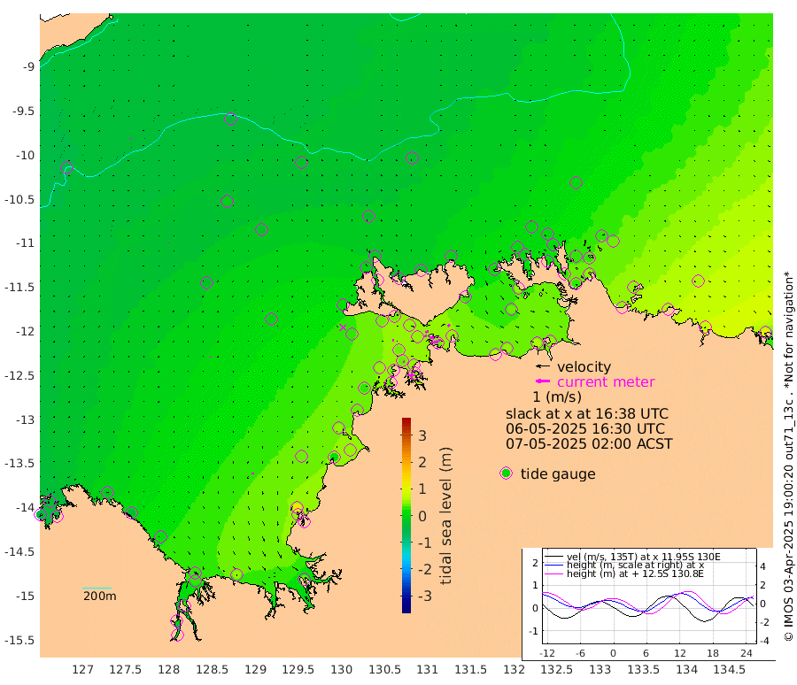 43cm/s 80T +4cm/s rms + 6cm/s 51T. Darwin_C1 52m 19cm/s 85T +4cm/s rms + 7cm/s -161T. Darwin_CW1 22m 20cm/s 73T +4cm/s rms + 8cm/s 61T. Darwin_CW2 34m 23cm/s 46T +3cm/s rms + 9cm/s 98T. Darwin_CW3 22m 26cm/s 89T +5cm/s rms + 7cm/s 88T. Darwin_C3 56m 23cm/s 64T +2cm/s rms + 9cm/s -126T. Darwin_CTbW 22m 1cm/s 149T +9cm/s rms + 2cm/s -110T. NWSLYN 196m 11cm/s 89T +1cm/s rms + 1cm/s -47T. DARBGF 30m 4cm/s -127T +7cm/s rms + 2cm/s -137T. ITFTIS 464m 4cm/s -137T +9cm/s rms + 1cm/s 74T. ITFMHB 146m 11cm/s 164T +4cm/s rms + 1cm/s -134T. ITFJBG 61m 6cm/s 179T +6cm/s rms + 4cm/s 121T. ITFFTB 108m 7cm/s 111T +4cm/s rms + 3cm/s 80T. NRSDAR 19m -44cm Carronade Island -47cm Guy Point -51cm Napier Broome Bay -17cm Lesueur Island 13cm Reveley Island -37cm Rocky Island 29cm Cape Domett 31cm Lacrosse Island 23cm Adolphus Island -4cm Pender Point -5cm Wyndham -25cm The Boxers -9cm Unnamed Shoal -53cm Loxton Shoal 52cm Pelican Island -29cm Calder Shoal -31cm Evans Shoal 41cm Quoin Island 40cm Port Keats 55cm Jones Point 119cm Catfish Island 41cm Cape Scott Offshore 16cm Cape Ford 51cm Anson Bay -25cm Goodrich Bank 45cm Peron Island North 38cm Point Jenny 33cm Native Point 47cm Fish Reef 42cm Tapa Bay 15cm Point Fawcett (Offshore) 42cm Burge Point 35cm Munkunuwa 25cm Beagle A 49cm Parsons Bank 39cm Fenton Patches -28cm Lynedoch Bank 50cm Hancox Shoal Area 50cm Nightcliff 50cm Darwin 42cm Charles Point Patches 45cm Glyde Point 56cm Chambers Bay 56cm Point Stuart 51cm Cape Hotham 38cm Christine Reef 59cm West Alligator Head 54cm East Field Island 47cm Two Hills Bay -11cm Newby Shoal 32cm Camp Point 39cm Medina Inlet South -2cm South Barlow Point -9cm St. Asaph Bay -21cm Cape Van Dieman -20cm Snake Bay -13cm Cache Point -49cm Echo Shoal -5cm Point Jahleel (Off) 21cm Cape Don 7cm Port Essington 8cm Smith Point - West 8cm NW Peacock Island 2cm North Of Jones Shoal 3cm Peacock Island 29cm Point David 13cm D'urville Point 9cm Money Shoal 33cm Copeland Island 45cm Cape Cockburn 27cm One Tree Point 39cm Hogmany Shoal 24cm New Year Island - West 27cm Grant Island 48cm Aurari Bay 58cm Cuthbert Point 48cm North Goulburn Island 62cm Paxie Shoal 76cm Entrance Island 103cm Yabooma Island