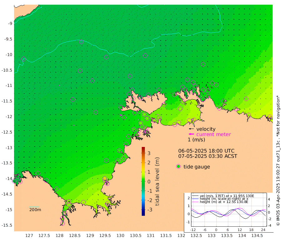 9cm/s -110T +4cm/s rms + 6cm/s 51T. Darwin_C1 52m 8cm/s -91T +4cm/s rms + 7cm/s -161T. Darwin_CW1 22m 4cm/s 81T +4cm/s rms + 8cm/s 61T. Darwin_CW2 34m 9cm/s -1T +3cm/s rms + 9cm/s 98T. Darwin_CW3 22m 8cm/s 91T +5cm/s rms + 7cm/s 88T. Darwin_C3 56m 8cm/s -118T +2cm/s rms + 9cm/s -126T. Darwin_CTbW 22m 4cm/s -29T +9cm/s rms + 2cm/s -110T. NWSLYN 196m 5cm/s -78T +1cm/s rms + 1cm/s -47T. DARBGF 30m 5cm/s -120T +7cm/s rms + 2cm/s -137T. ITFTIS 464m 4cm/s -84T +9cm/s rms + 1cm/s 74T. ITFMHB 146m 4cm/s -124T +4cm/s rms + 1cm/s -134T. ITFJBG 61m 8cm/s -81T +6cm/s rms + 4cm/s 121T. ITFFTB 108m 4cm/s -58T +4cm/s rms + 3cm/s 80T. NRSDAR 19m -32cm Carronade Island -35cm Guy Point -43cm Napier Broome Bay -9cm Lesueur Island 27cm Reveley Island -29cm Rocky Island 54cm Cape Domett 52cm Lacrosse Island 61cm Adolphus Island 50cm Pender Point 56cm Wyndham -43cm The Boxers -38cm Unnamed Shoal -68cm Loxton Shoal 67cm Pelican Island -47cm Calder Shoal -51cm Evans Shoal 83cm Quoin Island 44cm Port Keats 61cm Jones Point 126cm Catfish Island 22cm Cape Scott Offshore 27cm Cape Ford 28cm Anson Bay -47cm Goodrich Bank 24cm Peron Island North 21cm Point Jenny 15cm Native Point 31cm Fish Reef 24cm Tapa Bay -13cm Point Fawcett (Offshore) 36cm Burge Point 17cm Munkunuwa 12cm Beagle A 34cm Parsons Bank 34cm Fenton Patches -48cm Lynedoch Bank 38cm Hancox Shoal Area 37cm Nightcliff 38cm Darwin 26cm Charles Point Patches 46cm Glyde Point 72cm Chambers Bay 76cm Point Stuart 55cm Cape Hotham 55cm Christine Reef 84cm West Alligator Head 91cm East Field Island 52cm Two Hills Bay -24cm Newby Shoal 43cm Camp Point 20cm Medina Inlet South -29cm South Barlow Point -34cm St. Asaph Bay -45cm Cape Van Dieman -48cm Snake Bay -36cm Cache Point -59cm Echo Shoal -25cm Point Jahleel (Off) 4cm Cape Don -18cm Port Essington -18cm Smith Point - West -17cm NW Peacock Island -25cm North Of Jones Shoal -7cm Peacock Island 2cm Point David -14cm D'urville Point -14cm Money Shoal 8cm Copeland Island 14cm Cape Cockburn 0cm One Tree Point 11cm Hogmany Shoal -1cm New Year Island - West 2cm Grant Island 24cm Aurari Bay 37cm Cuthbert Point 22cm North Goulburn Island 44cm Paxie Shoal 67cm Entrance Island 101cm Yabooma Island