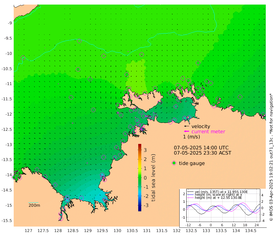 4cm/s -95T +4cm/s rms + 6cm/s 51T. Darwin_C1 52m 19cm/s -89T +4cm/s rms + 7cm/s -161T. Darwin_CW1 22m 17cm/s -109T +4cm/s rms + 8cm/s 61T. Darwin_CW2 34m 15cm/s -148T +3cm/s rms + 9cm/s 98T. Darwin_CW3 22m 32cm/s -90T +5cm/s rms + 7cm/s 88T. Darwin_C3 56m 4cm/s 62T +2cm/s rms + 9cm/s -126T. Darwin_CTbW 22m 9cm/s 154T +9cm/s rms + 2cm/s -110T. NWSLYN 196m 16cm/s 106T +1cm/s rms + 1cm/s -47T. DARBGF 30m 3cm/s 106T +7cm/s rms + 2cm/s -137T. ITFTIS 464m 7cm/s 146T +9cm/s rms + 1cm/s 74T. ITFMHB 146m 12cm/s 124T +4cm/s rms + 1cm/s -134T. ITFJBG 61m 17cm/s 128T +6cm/s rms + 4cm/s 121T. ITFFTB 108m 19cm/s 128T +4cm/s rms + 3cm/s 80T. NRSDAR 19m -18cm Carronade Island -15cm Guy Point -18cm Napier Broome Bay -51cm Lesueur Island -87cm Reveley Island -75cm Rocky Island -136cm Cape Domett -123cm Lacrosse Island -156cm Adolphus Island -155cm Pender Point -162cm Wyndham -1cm The Boxers 9cm Unnamed Shoal 24cm Loxton Shoal -125cm Pelican Island 9cm Calder Shoal 26cm Evans Shoal -177cm Quoin Island -111cm Port Keats -110cm Jones Point -136cm Catfish Island -51cm Cape Scott Offshore -98cm Cape Ford -51cm Anson Bay 22cm Goodrich Bank -50cm Peron Island North -52cm Point Jenny -51cm Native Point -64cm Fish Reef -58cm Tapa Bay -4cm Point Fawcett (Offshore) -86cm Burge Point -52cm Munkunuwa -55cm Beagle A -66cm Parsons Bank -86cm Fenton Patches 23cm Lynedoch Bank -67cm Hancox Shoal Area -72cm Nightcliff -83cm Darwin -68cm Charles Point Patches -80cm Glyde Point -86cm Chambers Bay -95cm Point Stuart -75cm Cape Hotham -84cm Christine Reef -107cm West Alligator Head -121cm East Field Island -67cm Two Hills Bay -41cm Newby Shoal -72cm Camp Point -60cm Medina Inlet South 2cm South Barlow Point 11cm St. Asaph Bay 25cm Cape Van Dieman 27cm Snake Bay 20cm Cache Point 24cm Echo Shoal 10cm Point Jahleel (Off) -13cm Cape Don 14cm Port Essington 16cm Smith Point - West 18cm NW Peacock Island 26cm North Of Jones Shoal 9cm Peacock Island 18cm Point David 18cm D'urville Point 19cm Money Shoal 16cm Copeland Island 14cm Cape Cockburn 17cm One Tree Point 16cm Hogmany Shoal 12cm New Year Island - West 13cm Grant Island 5cm Aurari Bay -6cm Cuthbert Point 7cm North Goulburn Island -6cm Paxie Shoal -24cm Entrance Island -34cm Yabooma Island