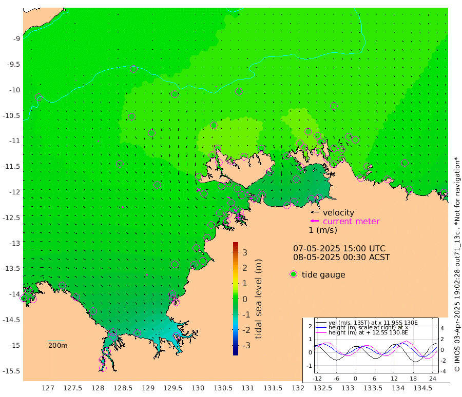26cm/s 78T +4cm/s rms + 6cm/s 51T. Darwin_C1 52m 2cm/s 64T +4cm/s rms + 7cm/s -161T. Darwin_CW1 22m 4cm/s 84T +4cm/s rms + 8cm/s 61T. Darwin_CW2 34m 4cm/s 156T +3cm/s rms + 9cm/s 98T. Darwin_CW3 22m 3cm/s -71T +5cm/s rms + 7cm/s 88T. Darwin_C3 56m 21cm/s 64T +2cm/s rms + 9cm/s -126T. Darwin_CTbW 22m 9cm/s 153T +9cm/s rms + 2cm/s -110T. NWSLYN 196m 28cm/s 98T +1cm/s rms + 1cm/s -47T. DARBGF 30m 3cm/s 119T +7cm/s rms + 2cm/s -137T. ITFTIS 464m 9cm/s 159T +9cm/s rms + 1cm/s 74T. ITFMHB 146m 20cm/s 140T +4cm/s rms + 1cm/s -134T. ITFJBG 61m 22cm/s 134T +6cm/s rms + 4cm/s 121T. ITFFTB 108m 30cm/s 125T +4cm/s rms + 3cm/s 80T. NRSDAR 19m -34cm Carronade Island -33cm Guy Point -36cm Napier Broome Bay -44cm Lesueur Island -60cm Reveley Island -68cm Rocky Island -97cm Cape Domett -83cm Lacrosse Island -124cm Adolphus Island -146cm Pender Point -156cm Wyndham 4cm The Boxers 20cm Unnamed Shoal 10cm Loxton Shoal -76cm Pelican Island 12cm Calder Shoal 20cm Evans Shoal -138cm Quoin Island -61cm Port Keats -57cm Jones Point -73cm Catfish Island -5cm Cape Scott Offshore -49cm Cape Ford 2cm Anson Bay 21cm Goodrich Bank -2cm Peron Island North -4cm Point Jenny -6cm Native Point -10cm Fish Reef -7cm Tapa Bay 25cm Point Fawcett (Offshore) -32cm Burge Point -5cm Munkunuwa -11cm Beagle A -15cm Parsons Bank -32cm Fenton Patches 18cm Lynedoch Bank -18cm Hancox Shoal Area -17cm Nightcliff -29cm Darwin -17cm Charles Point Patches -40cm Glyde Point -52cm Chambers Bay -64cm Point Stuart -38cm Cape Hotham -57cm Christine Reef -74cm West Alligator Head -93cm East Field Island -38cm Two Hills Bay -17cm Newby Shoal -48cm Camp Point -10cm Medina Inlet South 21cm South Barlow Point 25cm St. Asaph Bay 26cm Cape Van Dieman 28cm Snake Bay 24cm Cache Point 9cm Echo Shoal 18cm Point Jahleel (Off) 6cm Cape Don 23cm Port Essington 26cm Smith Point - West 26cm NW Peacock Island 32cm North Of Jones Shoal 12cm Peacock Island 30cm Point David 29cm D'urville Point 25cm Money Shoal 29cm Copeland Island 33cm Cape Cockburn 29cm One Tree Point 30cm Hogmany Shoal 24cm New Year Island - West 24cm Grant Island 25cm Aurari Bay 15cm Cuthbert Point 26cm North Goulburn Island 14cm Paxie Shoal 3cm Entrance Island -1cm Yabooma Island