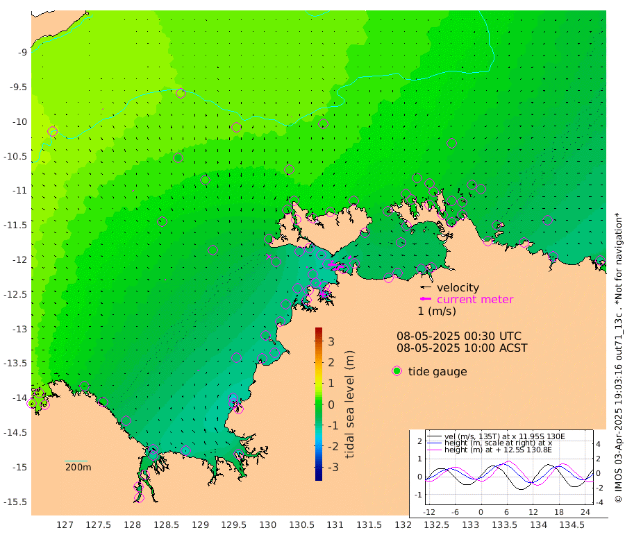 55cm/s -102T +4cm/s rms + 6cm/s 51T. Darwin_C1 52m 48cm/s -89T +4cm/s rms + 7cm/s -161T. Darwin_CW1 22m 41cm/s -106T +4cm/s rms + 8cm/s 61T. Darwin_CW2 34m 34cm/s -137T +3cm/s rms + 9cm/s 98T. Darwin_CW3 22m 69cm/s -91T +5cm/s rms + 7cm/s 88T. Darwin_C3 56m 26cm/s -115T +2cm/s rms + 9cm/s -126T. Darwin_CTbW 22m 2cm/s -99T +9cm/s rms + 2cm/s -110T. NWSLYN 196m 10cm/s -103T +1cm/s rms + 1cm/s -47T. DARBGF 30m 4cm/s 128T +7cm/s rms + 2cm/s -137T. ITFTIS 464m 5cm/s 139T +9cm/s rms + 1cm/s 74T. ITFMHB 146m 6cm/s 22T +4cm/s rms + 1cm/s -134T. ITFJBG 61m 6cm/s 99T +6cm/s rms + 4cm/s 121T. ITFFTB 108m 7cm/s -83T +4cm/s rms + 3cm/s 80T. NRSDAR 19m 50cm Carronade Island 52cm Guy Point 48cm Napier Broome Bay -5cm Lesueur Island -59cm Reveley Island -2cm Rocky Island -102cm Cape Domett -93cm Lacrosse Island -88cm Adolphus Island -78cm Pender Point -65cm Wyndham 12cm The Boxers -11cm Unnamed Shoal 54cm Loxton Shoal -122cm Pelican Island 24cm Calder Shoal 38cm Evans Shoal -124cm Quoin Island -105cm Port Keats -126cm Jones Point -143cm Catfish Island -81cm Cape Scott Offshore -89cm Cape Ford -96cm Anson Bay 26cm Goodrich Bank -78cm Peron Island North -75cm Point Jenny -73cm Native Point -86cm Fish Reef -91cm Tapa Bay -29cm Point Fawcett (Offshore) -94cm Burge Point -83cm Munkunuwa -53cm Beagle A -95cm Parsons Bank -84cm Fenton Patches 31cm Lynedoch Bank -94cm Hancox Shoal Area -93cm Nightcliff -108cm Darwin -95cm Charles Point Patches -85cm Glyde Point -80cm Chambers Bay -81cm Point Stuart -77cm Cape Hotham -58cm Christine Reef -87cm West Alligator Head -82cm East Field Island -64cm Two Hills Bay -7cm Newby Shoal -62cm Camp Point -86cm Medina Inlet South -10cm South Barlow Point 3cm St. Asaph Bay 22cm Cape Van Dieman 21cm Snake Bay 19cm Cache Point 62cm Echo Shoal 8cm Point Jahleel (Off) -26cm Cape Don -2cm Port Essington 3cm Smith Point - West 4cm NW Peacock Island 13cm North Of Jones Shoal 3cm Peacock Island -21cm Point David 0cm D'urville Point 1cm Money Shoal -23cm Copeland Island -26cm Cape Cockburn -17cm One Tree Point -30cm Hogmany Shoal -16cm New Year Island - West -19cm Grant Island -37cm Aurari Bay -47cm Cuthbert Point -36cm North Goulburn Island -65cm Paxie Shoal -71cm Entrance Island -92cm Yabooma Island