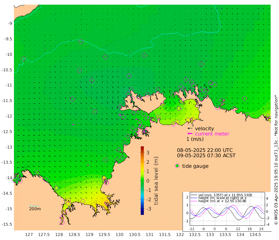 27cm/s -104T +4cm/s rms + 6cm/s 51T. Darwin_C1 52m 2cm/s -48T +4cm/s rms + 7cm/s -161T. Darwin_CW1 22m 15cm/s -108T +4cm/s rms + 8cm/s 61T. Darwin_CW2 34m 6cm/s -24T +3cm/s rms + 9cm/s 98T. Darwin_CW3 22m 5cm/s -115T +5cm/s rms + 7cm/s 88T. Darwin_C3 56m 25cm/s -116T +2cm/s rms + 9cm/s -126T. Darwin_CTbW 22m 8cm/s -23T +9cm/s rms + 2cm/s -110T. NWSLYN 196m 35cm/s -84T +1cm/s rms + 1cm/s -47T. DARBGF 30m 6cm/s -111T +7cm/s rms + 2cm/s -137T. ITFTIS 464m 8cm/s -45T +9cm/s rms + 1cm/s 74T. ITFMHB 146m 24cm/s -38T +4cm/s rms + 1cm/s -134T. ITFJBG 61m 26cm/s -53T +6cm/s rms + 4cm/s 121T. ITFFTB 108m 38cm/s -56T +4cm/s rms + 3cm/s 80T. NRSDAR 19m 26cm Carronade Island 31cm Guy Point 18cm Napier Broome Bay 34cm Lesueur Island 60cm Reveley Island 13cm Rocky Island 92cm Cape Domett 85cm Lacrosse Island 127cm Adolphus Island 149cm Pender Point 167cm Wyndham -32cm The Boxers -49cm Unnamed Shoal -28cm Loxton Shoal 79cm Pelican Island -32cm Calder Shoal -30cm Evans Shoal 162cm Quoin Island 45cm Port Keats 45cm Jones Point 121cm Catfish Island -2cm Cape Scott Offshore 12cm Cape Ford -11cm Anson Bay -38cm Goodrich Bank -4cm Peron Island North -17cm Point Jenny -20cm Native Point -8cm Fish Reef -12cm Tapa Bay -38cm Point Fawcett (Offshore) 9cm Burge Point -15cm Munkunuwa -18cm Beagle A 3cm Parsons Bank 4cm Fenton Patches -32cm Lynedoch Bank 10cm Hancox Shoal Area 5cm Nightcliff 13cm Darwin -1cm Charles Point Patches 35cm Glyde Point 68cm Chambers Bay 84cm Point Stuart 49cm Cape Hotham 67cm Christine Reef 97cm West Alligator Head 118cm East Field Island 52cm Two Hills Bay -19cm Newby Shoal 50cm Camp Point -9cm Medina Inlet South -42cm South Barlow Point -41cm St. Asaph Bay -42cm Cape Van Dieman -43cm Snake Bay -35cm Cache Point -19cm Echo Shoal -25cm Point Jahleel (Off) -6cm Cape Don -27cm Port Essington -29cm Smith Point - West -26cm NW Peacock Island -29cm North Of Jones Shoal -10cm Peacock Island -19cm Point David -29cm D'urville Point -23cm Money Shoal -15cm Copeland Island -13cm Cape Cockburn -18cm One Tree Point -9cm Hogmany Shoal -18cm New Year Island - West -15cm Grant Island -8cm Aurari Bay 5cm Cuthbert Point -7cm North Goulburn Island 13cm Paxie Shoal 28cm Entrance Island 53cm Yabooma Island