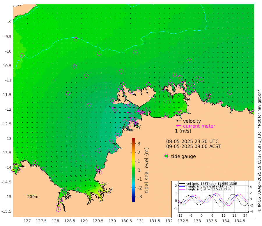 72cm/s -103T +4cm/s rms + 6cm/s 51T. Darwin_C1 52m 50cm/s -88T +4cm/s rms + 7cm/s -161T. Darwin_CW1 22m 54cm/s -108T +4cm/s rms + 8cm/s 61T. Darwin_CW2 34m 25cm/s -121T +3cm/s rms + 9cm/s 98T. Darwin_CW3 22m 68cm/s -92T +5cm/s rms + 7cm/s 88T. Darwin_C3 56m 46cm/s -115T +2cm/s rms + 9cm/s -126T. Darwin_CTbW 22m 5cm/s -34T +9cm/s rms + 2cm/s -110T. NWSLYN 196m 41cm/s -89T +1cm/s rms + 1cm/s -47T. DARBGF 30m 3cm/s -140T +7cm/s rms + 2cm/s -137T. ITFTIS 464m 5cm/s -18T +9cm/s rms + 1cm/s 74T. ITFMHB 146m 24cm/s -26T +4cm/s rms + 1cm/s -134T. ITFJBG 61m 19cm/s -43T +6cm/s rms + 4cm/s 121T. ITFFTB 108m 37cm/s -61T +4cm/s rms + 3cm/s 80T. NRSDAR 19m 67cm Carronade Island 72cm Guy Point 62cm Napier Broome Bay 23cm Lesueur Island -5cm Reveley Island 1cm Rocky Island -12cm Cape Domett -11cm Lacrosse Island 23cm Adolphus Island 65cm Pender Point 91cm Wyndham -19cm The Boxers -46cm Unnamed Shoal 16cm Loxton Shoal -40cm Pelican Island -12cm Calder Shoal 2cm Evans Shoal 24cm Quoin Island -58cm Port Keats -69cm Jones Point -7cm Catfish Island -76cm Cape Scott Offshore -73cm Cape Ford -95cm Anson Bay -14cm Goodrich Bank -77cm Peron Island North -84cm Point Jenny -84cm Native Point -87cm Fish Reef -92cm Tapa Bay -61cm Point Fawcett (Offshore) -81cm Burge Point -91cm Munkunuwa -69cm Beagle A -84cm Parsons Bank -79cm Fenton Patches -4cm Lynedoch Bank -77cm Hancox Shoal Area -84cm Nightcliff -88cm Darwin -88cm Charles Point Patches -44cm Glyde Point -6cm Chambers Bay 8cm Point Stuart -24cm Cape Hotham 7cm Christine Reef 14cm West Alligator Head 37cm East Field Island -8cm Two Hills Bay -32cm Newby Shoal -7cm Camp Point -88cm Medina Inlet South -51cm South Barlow Point -39cm St. Asaph Bay -20cm Cape Van Dieman -23cm Snake Bay -17cm Cache Point 30cm Echo Shoal -18cm Point Jahleel (Off) -27cm Cape Don -25cm Port Essington -25cm Smith Point - West -21cm NW Peacock Island -16cm North Of Jones Shoal -7cm Peacock Island -29cm Point David -26cm D'urville Point -17cm Money Shoal -28cm Copeland Island -30cm Cape Cockburn -26cm One Tree Point -26cm Hogmany Shoal -25cm New Year Island - West -25cm Grant Island -32cm Aurari Bay -28cm Cuthbert Point -30cm North Goulburn Island -30cm Paxie Shoal -25cm Entrance Island -19cm Yabooma Island