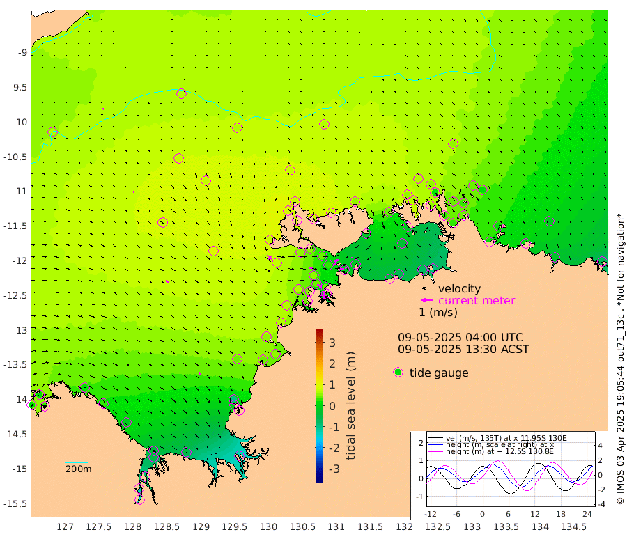 35cm/s 77T +4cm/s rms + 6cm/s 51T. Darwin_C1 52m 12cm/s 82T +4cm/s rms + 7cm/s -161T. Darwin_CW1 22m 19cm/s 74T +4cm/s rms + 8cm/s 61T. Darwin_CW2 34m 8cm/s -175T +3cm/s rms + 9cm/s 98T. Darwin_CW3 22m 8cm/s 79T +5cm/s rms + 7cm/s 88T. Darwin_C3 56m 38cm/s 63T +2cm/s rms + 9cm/s -126T. Darwin_CTbW 22m 4cm/s 151T +9cm/s rms + 2cm/s -110T. NWSLYN 196m 44cm/s 94T +1cm/s rms + 1cm/s -47T. DARBGF 30m 7cm/s 64T +7cm/s rms + 2cm/s -137T. ITFTIS 464m 11cm/s 134T +9cm/s rms + 1cm/s 74T. ITFMHB 146m 28cm/s 141T +4cm/s rms + 1cm/s -134T. ITFJBG 61m 31cm/s 124T +6cm/s rms + 4cm/s 121T. ITFFTB 108m 45cm/s 125T +4cm/s rms + 3cm/s 80T. NRSDAR 19m 20cm Carronade Island 12cm Guy Point 25cm Napier Broome Bay 16cm Lesueur Island -22cm Reveley Island 27cm Rocky Island -52cm Cape Domett -40cm Lacrosse Island -79cm Adolphus Island -127cm Pender Point -137cm Wyndham 73cm The Boxers 78cm Unnamed Shoal 65cm Loxton Shoal -50cm Pelican Island 76cm Calder Shoal 62cm Evans Shoal -125cm Quoin Island 3cm Port Keats -16cm Jones Point -92cm Catfish Island 40cm Cape Scott Offshore 41cm Cape Ford 47cm Anson Bay 69cm Goodrich Bank 48cm Peron Island North 61cm Point Jenny 63cm Native Point 58cm Fish Reef 51cm Tapa Bay 79cm Point Fawcett (Offshore) 45cm Burge Point 50cm Munkunuwa 76cm Beagle A 37cm Parsons Bank 54cm Fenton Patches 61cm Lynedoch Bank 26cm Hancox Shoal Area 45cm Nightcliff 31cm Darwin 45cm Charles Point Patches -2cm Glyde Point -45cm Chambers Bay -63cm Point Stuart -19cm Cape Hotham -35cm Christine Reef -76cm West Alligator Head -96cm East Field Island -26cm Two Hills Bay 91cm Newby Shoal -25cm Camp Point 53cm Medina Inlet South 83cm South Barlow Point 79cm St. Asaph Bay 72cm Cape Van Dieman 74cm Snake Bay 69cm Cache Point 58cm Echo Shoal 56cm Point Jahleel (Off) 35cm Cape Don 52cm Port Essington 58cm Smith Point - West 53cm NW Peacock Island 59cm North Of Jones Shoal 20cm Peacock Island 30cm Point David 55cm D'urville Point 46cm Money Shoal 26cm Copeland Island 39cm Cape Cockburn 36cm One Tree Point 20cm Hogmany Shoal 37cm New Year Island - West 32cm Grant Island 20cm Aurari Bay 4cm Cuthbert Point 21cm North Goulburn Island -16cm Paxie Shoal -26cm Entrance Island -59cm Yabooma Island