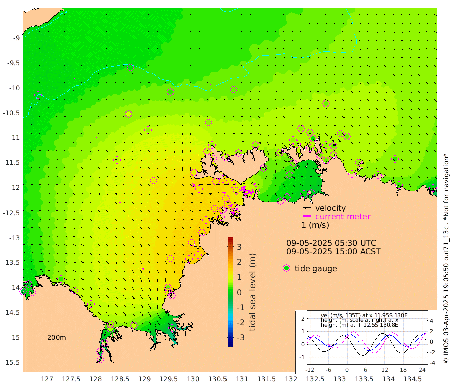 94cm/s 77T +4cm/s rms + 6cm/s 51T. Darwin_C1 52m 70cm/s 88T +4cm/s rms + 7cm/s -161T. Darwin_CW1 22m 60cm/s 74T +4cm/s rms + 8cm/s 61T. Darwin_CW2 34m 35cm/s 53T +3cm/s rms + 9cm/s 98T. Darwin_CW3 22m 80cm/s 88T +5cm/s rms + 7cm/s 88T. Darwin_C3 56m 60cm/s 64T +2cm/s rms + 9cm/s -126T. Darwin_CTbW 22m 2cm/s 102T +9cm/s rms + 2cm/s -110T. NWSLYN 196m 47cm/s 89T +1cm/s rms + 1cm/s -47T. DARBGF 30m 5cm/s 30T +7cm/s rms + 2cm/s -137T. ITFTIS 464m 5cm/s 132T +9cm/s rms + 1cm/s 74T. ITFMHB 146m 27cm/s 155T +4cm/s rms + 1cm/s -134T. ITFJBG 61m 22cm/s 129T +6cm/s rms + 4cm/s 121T. ITFFTB 108m 45cm/s 118T +4cm/s rms + 3cm/s 80T. NRSDAR 19m -25cm Carronade Island -36cm Guy Point -18cm Napier Broome Bay 28cm Lesueur Island 46cm Reveley Island 58cm Rocky Island 63cm Cape Domett 61cm Lacrosse Island 35cm Adolphus Island -32cm Pender Point -52cm Wyndham 65cm The Boxers 83cm Unnamed Shoal 21cm Loxton Shoal 77cm Pelican Island 56cm Calder Shoal 29cm Evans Shoal 23cm Quoin Island 118cm Port Keats 109cm Jones Point 41cm Catfish Island 117cm Cape Scott Offshore 131cm Cape Ford 137cm Anson Bay 46cm Goodrich Bank 125cm Peron Island North 134cm Point Jenny 135cm Native Point 143cm Fish Reef 138cm Tapa Bay 103cm Point Fawcett (Offshore) 143cm Burge Point 133cm Munkunuwa 134cm Beagle A 132cm Parsons Bank 145cm Fenton Patches 35cm Lynedoch Bank 120cm Hancox Shoal Area 140cm Nightcliff 142cm Darwin 141cm Charles Point Patches 85cm Glyde Point 31cm Chambers Bay 16cm Point Stuart 57cm Cape Hotham 27cm Christine Reef 10cm West Alligator Head -12cm East Field Island 37cm Two Hills Bay 112cm Newby Shoal 38cm Camp Point 141cm Medina Inlet South 96cm South Barlow Point 78cm St. Asaph Bay 52cm Cape Van Dieman 56cm Snake Bay 51cm Cache Point 4cm Echo Shoal 50cm Point Jahleel (Off) 60cm Cape Don 53cm Port Essington 55cm Smith Point - West 49cm NW Peacock Island 46cm North Of Jones Shoal 17cm Peacock Island 42cm Point David 54cm D'urville Point 42cm Money Shoal 40cm Copeland Island 57cm Cape Cockburn 46cm One Tree Point 38cm Hogmany Shoal 48cm New Year Island - West 44cm Grant Island 47cm Aurari Bay 41cm Cuthbert Point 46cm North Goulburn Island 30cm Paxie Shoal 28cm Entrance Island 12cm Yabooma Island
