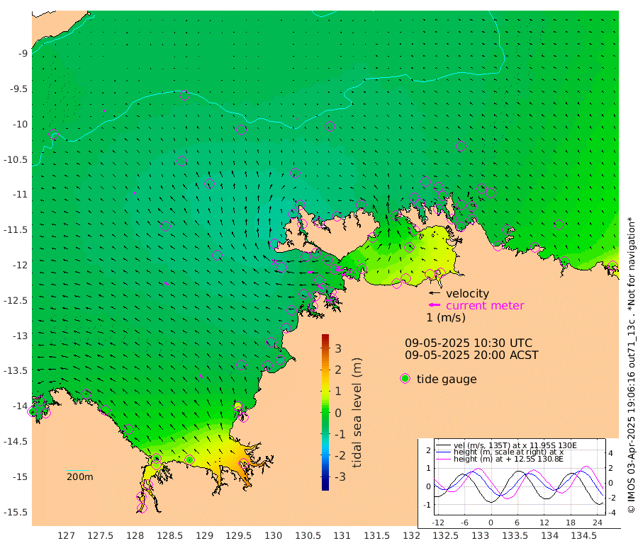 45cm/s -102T +4cm/s rms + 6cm/s 51T. Darwin_C1 52m 17cm/s -88T +4cm/s rms + 7cm/s -161T. Darwin_CW1 22m 36cm/s -108T +4cm/s rms + 8cm/s 61T. Darwin_CW2 34m 5cm/s -36T +3cm/s rms + 9cm/s 98T. Darwin_CW3 22m 30cm/s -95T +5cm/s rms + 7cm/s 88T. Darwin_C3 56m 37cm/s -115T +2cm/s rms + 9cm/s -126T. Darwin_CTbW 22m 6cm/s -34T +9cm/s rms + 2cm/s -110T. NWSLYN 196m 58cm/s -87T +1cm/s rms + 1cm/s -47T. DARBGF 30m 6cm/s -89T +7cm/s rms + 2cm/s -137T. ITFTIS 464m 19cm/s -25T +9cm/s rms + 1cm/s 74T. ITFMHB 146m 37cm/s -32T +4cm/s rms + 1cm/s -134T. ITFJBG 61m 40cm/s -51T +6cm/s rms + 4cm/s 121T. ITFFTB 108m 58cm/s -56T +4cm/s rms + 3cm/s 80T. NRSDAR 19m -6cm Carronade Island -3cm Guy Point 0cm Napier Broome Bay -16cm Lesueur Island 7cm Reveley Island 16cm Rocky Island 47cm Cape Domett 24cm Lacrosse Island 86cm Adolphus Island 155cm Pender Point 169cm Wyndham -70cm The Boxers -76cm Unnamed Shoal -59cm Loxton Shoal 32cm Pelican Island -83cm Calder Shoal -66cm Evans Shoal 126cm Quoin Island -17cm Port Keats -4cm Jones Point 86cm Catfish Island -72cm Cape Scott Offshore -75cm Cape Ford -83cm Anson Bay -71cm Goodrich Bank -82cm Peron Island North -90cm Point Jenny -89cm Native Point -87cm Fish Reef -83cm Tapa Bay -106cm Point Fawcett (Offshore) -70cm Burge Point -82cm Munkunuwa -99cm Beagle A -63cm Parsons Bank -77cm Fenton Patches -59cm Lynedoch Bank -56cm Hancox Shoal Area -80cm Nightcliff -56cm Darwin -71cm Charles Point Patches -10cm Glyde Point 37cm Chambers Bay 62cm Point Stuart 4cm Cape Hotham 33cm Christine Reef 75cm West Alligator Head 103cm East Field Island 20cm Two Hills Bay -91cm Newby Shoal 24cm Camp Point -81cm Medina Inlet South -97cm South Barlow Point -96cm St. Asaph Bay -77cm Cape Van Dieman -78cm Snake Bay -76cm Cache Point -59cm Echo Shoal -64cm Point Jahleel (Off) -42cm Cape Don -57cm Port Essington -66cm Smith Point - West -59cm NW Peacock Island -70cm North Of Jones Shoal -24cm Peacock Island -38cm Point David -62cm D'urville Point -49cm Money Shoal -35cm Copeland Island -51cm Cape Cockburn -44cm One Tree Point -33cm Hogmany Shoal -41cm New Year Island - West -36cm Grant Island -27cm Aurari Bay -6cm Cuthbert Point -28cm North Goulburn Island 9cm Paxie Shoal 17cm Entrance Island 40cm Yabooma Island