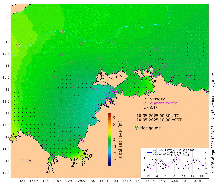 83cm/s -103T +4cm/s rms + 6cm/s 51T. Darwin_C1 52m 66cm/s -89T +4cm/s rms + 7cm/s -161T. Darwin_CW1 22m 69cm/s -108T +4cm/s rms + 8cm/s 61T. Darwin_CW2 34m 29cm/s -124T +3cm/s rms + 9cm/s 98T. Darwin_CW3 22m 89cm/s -92T +5cm/s rms + 7cm/s 88T. Darwin_C3 56m 52cm/s -115T +2cm/s rms + 9cm/s -126T. Darwin_CTbW 22m 2cm/s -34T +9cm/s rms + 2cm/s -110T. NWSLYN 196m 45cm/s -90T +1cm/s rms + 1cm/s -47T. DARBGF 30m 1cm/s -148T +7cm/s rms + 2cm/s -137T. ITFTIS 464m 5cm/s 2T +9cm/s rms + 1cm/s 74T. ITFMHB 146m 27cm/s -22T +4cm/s rms + 1cm/s -134T. ITFJBG 61m 19cm/s -36T +6cm/s rms + 4cm/s 121T. ITFFTB 108m 41cm/s -62T +4cm/s rms + 3cm/s 80T. NRSDAR 19m 102cm Carronade Island 107cm Guy Point 100cm Napier Broome Bay 40cm Lesueur Island -13cm Reveley Island 1cm Rocky Island -30cm Cape Domett -24cm Lacrosse Island 3cm Adolphus Island 63cm Pender Point 95cm Wyndham -5cm The Boxers -33cm Unnamed Shoal 36cm Loxton Shoal -65cm Pelican Island 2cm Calder Shoal 17cm Evans Shoal 0cm Quoin Island -82cm Port Keats -94cm Jones Point -3cm Catfish Island -91cm Cape Scott Offshore -96cm Cape Ford -114cm Anson Bay -3cm Goodrich Bank -92cm Peron Island North -99cm Point Jenny -100cm Native Point -105cm Fish Reef -112cm Tapa Bay -61cm Point Fawcett (Offshore) -104cm Burge Point -113cm Munkunuwa -81cm Beagle A -108cm Parsons Bank -101cm Fenton Patches 9cm Lynedoch Bank -101cm Hancox Shoal Area -109cm Nightcliff -114cm Darwin -111cm Charles Point Patches -58cm Glyde Point -11cm Chambers Bay 5cm Point Stuart -33cm Cape Hotham 2cm Christine Reef 11cm West Alligator Head 37cm East Field Island -10cm Two Hills Bay -29cm Newby Shoal -12cm Camp Point -108cm Medina Inlet South -52cm South Barlow Point -34cm St. Asaph Bay -10cm Cape Van Dieman -12cm Snake Bay -5cm Cache Point 53cm Echo Shoal -10cm Point Jahleel (Off) -25cm Cape Don -19cm Port Essington -18cm Smith Point - West -14cm NW Peacock Island -7cm North Of Jones Shoal -4cm Peacock Island -24cm Point David -20cm D'urville Point -10cm Money Shoal -24cm Copeland Island -25cm Cape Cockburn -21cm One Tree Point -20cm Hogmany Shoal -19cm New Year Island - West -20cm Grant Island -31cm Aurari Bay -28cm Cuthbert Point -27cm North Goulburn Island -30cm Paxie Shoal -30cm Entrance Island -28cm Yabooma Island