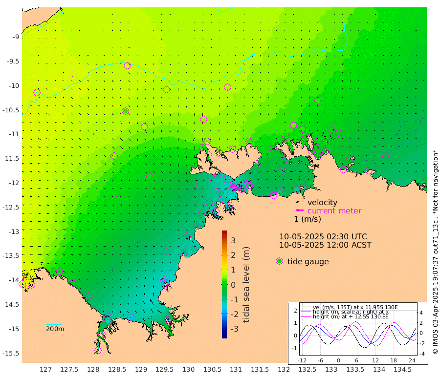 77cm/s -101T +4cm/s rms + 6cm/s 51T. Darwin_C1 52m 82cm/s -91T +4cm/s rms + 7cm/s -161T. Darwin_CW1 22m 51cm/s -106T +4cm/s rms + 8cm/s 61T. Darwin_CW2 34m 45cm/s -135T +3cm/s rms + 9cm/s 98T. Darwin_CW3 22m 95cm/s -91T +5cm/s rms + 7cm/s 88T. Darwin_C3 56m 33cm/s -116T +2cm/s rms + 9cm/s -126T. Darwin_CTbW 22m 4cm/s 159T +9cm/s rms + 2cm/s -110T. NWSLYN 196m 5cm/s -179T +1cm/s rms + 1cm/s -47T. DARBGF 30m 6cm/s 76T +7cm/s rms + 2cm/s -137T. ITFTIS 464m 8cm/s 108T +9cm/s rms + 1cm/s 74T. ITFMHB 146m 9cm/s 69T +4cm/s rms + 1cm/s -134T. ITFJBG 61m 16cm/s 103T +6cm/s rms + 4cm/s 121T. ITFFTB 108m 7cm/s 175T +4cm/s rms + 3cm/s 80T. NRSDAR 19m 95cm Carronade Island 94cm Guy Point 97cm Napier Broome Bay 20cm Lesueur Island -72cm Reveley Island -14cm Rocky Island -132cm Cape Domett -113cm Lacrosse Island -135cm Adolphus Island -114cm Pender Point -97cm Wyndham 45cm The Boxers 28cm Unnamed Shoal 86cm Loxton Shoal -160cm Pelican Island 57cm Calder Shoal 66cm Evans Shoal -191cm Quoin Island -127cm Port Keats -148cm Jones Point -170cm Catfish Island -83cm Cape Scott Offshore -82cm Cape Ford -99cm Anson Bay 54cm Goodrich Bank -78cm Peron Island North -68cm Point Jenny -66cm Native Point -83cm Fish Reef -92cm Tapa Bay -5cm Point Fawcett (Offshore) -97cm Burge Point -89cm Munkunuwa -40cm Beagle A -105cm Parsons Bank -87cm Fenton Patches 58cm Lynedoch Bank -106cm Hancox Shoal Area -101cm Nightcliff -122cm Darwin -101cm Charles Point Patches -94cm Glyde Point -89cm Chambers Bay -93cm Point Stuart -84cm Cape Hotham -68cm Christine Reef -103cm West Alligator Head -99cm East Field Island -69cm Two Hills Bay 21cm Newby Shoal -66cm Camp Point -89cm Medina Inlet South 10cm South Barlow Point 28cm St. Asaph Bay 51cm Cape Van Dieman 49cm Snake Bay 49cm Cache Point 95cm Echo Shoal 31cm Point Jahleel (Off) -11cm Cape Don 20cm Port Essington 24cm Smith Point - West 26cm NW Peacock Island 39cm North Of Jones Shoal 11cm Peacock Island -2cm Point David 21cm D'urville Point 25cm Money Shoal -6cm Copeland Island -2cm Cape Cockburn 3cm One Tree Point -9cm Hogmany Shoal 6cm New Year Island - West 0cm Grant Island -23cm Aurari Bay -37cm Cuthbert Point -18cm North Goulburn Island -54cm Paxie Shoal -66cm Entrance Island -94cm Yabooma Island