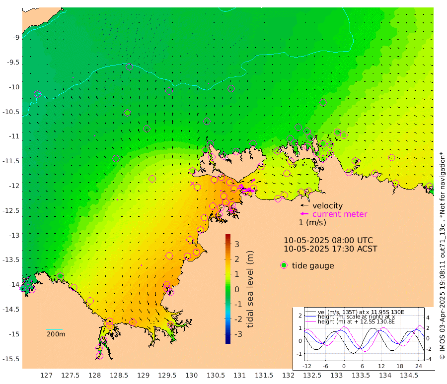 117cm/s 78T +4cm/s rms + 6cm/s 51T. Darwin_C1 52m 105cm/s 92T +4cm/s rms + 7cm/s -161T. Darwin_CW1 22m 79cm/s 73T +4cm/s rms + 8cm/s 61T. Darwin_CW2 34m 69cm/s 44T +3cm/s rms + 9cm/s 98T. Darwin_CW3 22m 131cm/s 89T +5cm/s rms + 7cm/s 88T. Darwin_C3 56m 56cm/s 65T +2cm/s rms + 9cm/s -126T. Darwin_CTbW 22m 6cm/s -10T +9cm/s rms + 2cm/s -110T. NWSLYN 196m 15cm/s 68T +1cm/s rms + 1cm/s -47T. DARBGF 30m 6cm/s -51T +7cm/s rms + 2cm/s -137T. ITFTIS 464m 11cm/s -32T +9cm/s rms + 1cm/s 74T. ITFMHB 146m 10cm/s -133T +4cm/s rms + 1cm/s -134T. ITFJBG 61m 14cm/s -66T +6cm/s rms + 4cm/s 121T. ITFFTB 108m 9cm/s 81T +4cm/s rms + 3cm/s 80T. NRSDAR 19m -74cm Carronade Island -83cm Guy Point -68cm Napier Broome Bay 20cm Lesueur Island 101cm Reveley Island 71cm Rocky Island 178cm Cape Domett 154cm Lacrosse Island 181cm Adolphus Island 133cm Pender Point 116cm Wyndham 4cm The Boxers 28cm Unnamed Shoal -55cm Loxton Shoal 196cm Pelican Island -17cm Calder Shoal -41cm Evans Shoal 227cm Quoin Island 194cm Port Keats 198cm Jones Point 196cm Catfish Island 132cm Cape Scott Offshore 137cm Cape Ford 156cm Anson Bay -20cm Goodrich Bank 134cm Peron Island North 128cm Point Jenny 127cm Native Point 150cm Fish Reef 150cm Tapa Bay 52cm Point Fawcett (Offshore) 171cm Burge Point 142cm Munkunuwa 110cm Beagle A 167cm Parsons Bank 162cm Fenton Patches -24cm Lynedoch Bank 160cm Hancox Shoal Area 167cm Nightcliff 193cm Darwin 170cm Charles Point Patches 144cm Glyde Point 112cm Chambers Bay 115cm Point Stuart 120cm Cape Hotham 97cm Christine Reef 122cm West Alligator Head 116cm East Field Island 99cm Two Hills Bay 63cm Newby Shoal 100cm Camp Point 155cm Medina Inlet South 43cm South Barlow Point 13cm St. Asaph Bay -16cm Cape Van Dieman -9cm Snake Bay -13cm Cache Point -77cm Echo Shoal 3cm Point Jahleel (Off) 52cm Cape Don 18cm Port Essington 13cm Smith Point - West 11cm NW Peacock Island -4cm North Of Jones Shoal 1cm Peacock Island 32cm Point David 17cm D'urville Point 12cm Money Shoal 35cm Copeland Island 48cm Cape Cockburn 32cm One Tree Point 36cm Hogmany Shoal 33cm New Year Island - West 36cm Grant Island 58cm Aurari Bay 72cm Cuthbert Point 53cm North Goulburn Island 80cm Paxie Shoal 90cm Entrance Island 107cm Yabooma Island