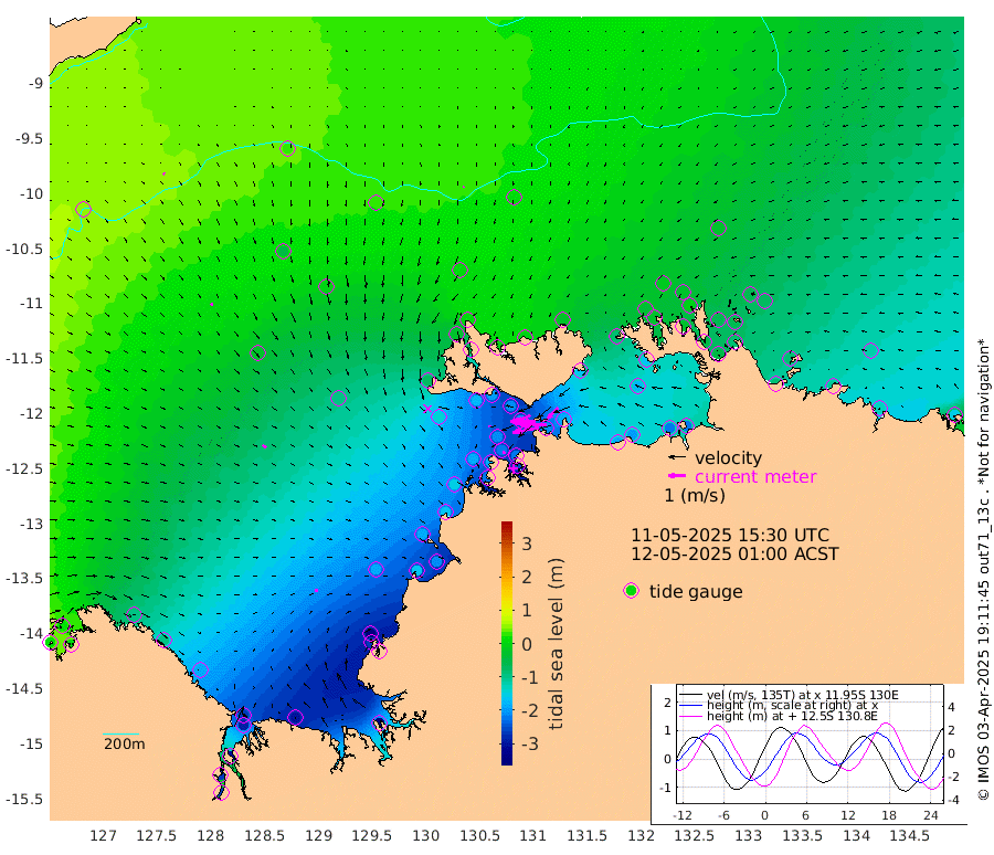 153cm/s -101T +4cm/s rms + 6cm/s 51T. Darwin_C1 52m 152cm/s -92T +4cm/s rms + 7cm/s -161T. Darwin_CW1 22m 78cm/s -105T +4cm/s rms + 8cm/s 61T. Darwin_CW2 34m 87cm/s -137T +3cm/s rms + 9cm/s 98T. Darwin_CW3 22m 150cm/s -90T +5cm/s rms + 7cm/s 88T. Darwin_C3 56m 78cm/s -115T +2cm/s rms + 9cm/s -126T. Darwin_CTbW 22m 9cm/s -178T +9cm/s rms + 2cm/s -110T. NWSLYN 196m 9cm/s 170T +1cm/s rms + 1cm/s -47T. DARBGF 30m 9cm/s 125T +7cm/s rms + 2cm/s -137T. ITFTIS 464m 15cm/s 148T +9cm/s rms + 1cm/s 74T. ITFMHB 146m 16cm/s 104T +4cm/s rms + 1cm/s -134T. ITFJBG 61m 27cm/s 124T +6cm/s rms + 4cm/s 121T. ITFFTB 108m 17cm/s 153T +4cm/s rms + 3cm/s 80T. NRSDAR 19m 12cm Carronade Island 15cm Guy Point 8cm Napier Broome Bay -100cm Lesueur Island -188cm Reveley Island -94cm Rocky Island -287cm Cape Domett -265cm Lacrosse Island -309cm Adolphus Island -269cm Pender Point -268cm Wyndham -29cm The Boxers -45cm Unnamed Shoal 33cm Loxton Shoal -294cm Pelican Island -8cm Calder Shoal 23cm Evans Shoal -391cm Quoin Island -274cm Port Keats -265cm Jones Point -354cm Catfish Island -186cm Cape Scott Offshore -164cm Cape Ford -204cm Anson Bay 10cm Goodrich Bank -184cm Peron Island North -160cm Point Jenny -157cm Native Point -188cm Fish Reef -189cm Tapa Bay -76cm Point Fawcett (Offshore) -218cm Burge Point -171cm Munkunuwa -139cm Beagle A -210cm Parsons Bank -205cm Fenton Patches 11cm Lynedoch Bank -211cm Hancox Shoal Area -222cm Nightcliff -250cm Darwin -218cm Charles Point Patches -204cm Glyde Point -188cm Chambers Bay -199cm Point Stuart -189cm Cape Hotham -170cm Christine Reef -216cm West Alligator Head -219cm East Field Island -169cm Two Hills Bay -101cm Newby Shoal -164cm Camp Point -196cm Medina Inlet South -57cm South Barlow Point -27cm St. Asaph Bay 9cm Cape Van Dieman -3cm Snake Bay -1cm Cache Point 49cm Echo Shoal -24cm Point Jahleel (Off) -84cm Cape Don -34cm Port Essington -29cm Smith Point - West -28cm NW Peacock Island -17cm North Of Jones Shoal -8cm Peacock Island -53cm Point David -32cm D'urville Point -29cm Money Shoal -56cm Copeland Island -82cm Cape Cockburn -57cm One Tree Point -70cm Hogmany Shoal -59cm New Year Island - West -61cm Grant Island -85cm Aurari Bay -102cm Cuthbert Point -82cm North Goulburn Island -119cm Paxie Shoal -128cm Entrance Island -157cm Yabooma Island