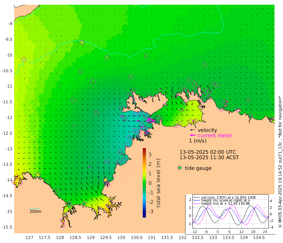 108cm/s -103T +4cm/s rms + 6cm/s 51T. Darwin_C1 52m 69cm/s -88T +4cm/s rms + 7cm/s -161T. Darwin_CW1 22m 83cm/s -109T +4cm/s rms + 8cm/s 61T. Darwin_CW2 34m 35cm/s -119T +3cm/s rms + 9cm/s 98T. Darwin_CW3 22m 88cm/s -92T +5cm/s rms + 7cm/s 88T. Darwin_C3 56m 68cm/s -115T +2cm/s rms + 9cm/s -126T. Darwin_CTbW 22m 1cm/s 104T +9cm/s rms + 2cm/s -110T. NWSLYN 196m 53cm/s -90T +1cm/s rms + 1cm/s -47T. DARBGF 30m 2cm/s -4T +7cm/s rms + 2cm/s -137T. ITFTIS 464m 10cm/s 8T +9cm/s rms + 1cm/s 74T. ITFMHB 146m 35cm/s -21T +4cm/s rms + 1cm/s -134T. ITFJBG 61m 25cm/s -33T +6cm/s rms + 4cm/s 121T. ITFFTB 108m 47cm/s -63T +4cm/s rms + 3cm/s 80T. NRSDAR 19m 155cm Carronade Island 159cm Guy Point 159cm Napier Broome Bay 88cm Lesueur Island 11cm Reveley Island 16cm Rocky Island 0cm Cape Domett 9cm Lacrosse Island 30cm Adolphus Island 123cm Pender Point 165cm Wyndham 18cm The Boxers -8cm Unnamed Shoal 54cm Loxton Shoal -40cm Pelican Island 16cm Calder Shoal 30cm Evans Shoal 43cm Quoin Island -76cm Port Keats -77cm Jones Point 114cm Catfish Island -82cm Cape Scott Offshore -97cm Cape Ford -111cm Anson Bay 5cm Goodrich Bank -88cm Peron Island North -102cm Point Jenny -103cm Native Point -103cm Fish Reef -114cm Tapa Bay -52cm Point Fawcett (Offshore) -112cm Burge Point -124cm Munkunuwa -84cm Beagle A -120cm Parsons Bank -109cm Fenton Patches 19cm Lynedoch Bank -108cm Hancox Shoal Area -120cm Nightcliff -118cm Darwin -111cm Charles Point Patches -43cm Glyde Point 24cm Chambers Bay 47cm Point Stuart -11cm Cape Hotham 24cm Christine Reef 58cm West Alligator Head 92cm East Field Island 20cm Two Hills Bay -23cm Newby Shoal 13cm Camp Point -113cm Medina Inlet South -56cm South Barlow Point -31cm St. Asaph Bay -2cm Cape Van Dieman -6cm Snake Bay 6cm Cache Point 78cm Echo Shoal 0cm Point Jahleel (Off) -13cm Cape Don -11cm Port Essington -14cm Smith Point - West -8cm NW Peacock Island 1cm North Of Jones Shoal -1cm Peacock Island -16cm Point David -17cm D'urville Point -3cm Money Shoal -18cm Copeland Island -17cm Cape Cockburn -12cm One Tree Point -3cm Hogmany Shoal -8cm New Year Island - West -12cm Grant Island -22cm Aurari Bay -17cm Cuthbert Point -16cm North Goulburn Island -13cm Paxie Shoal -17cm Entrance Island -15cm Yabooma Island