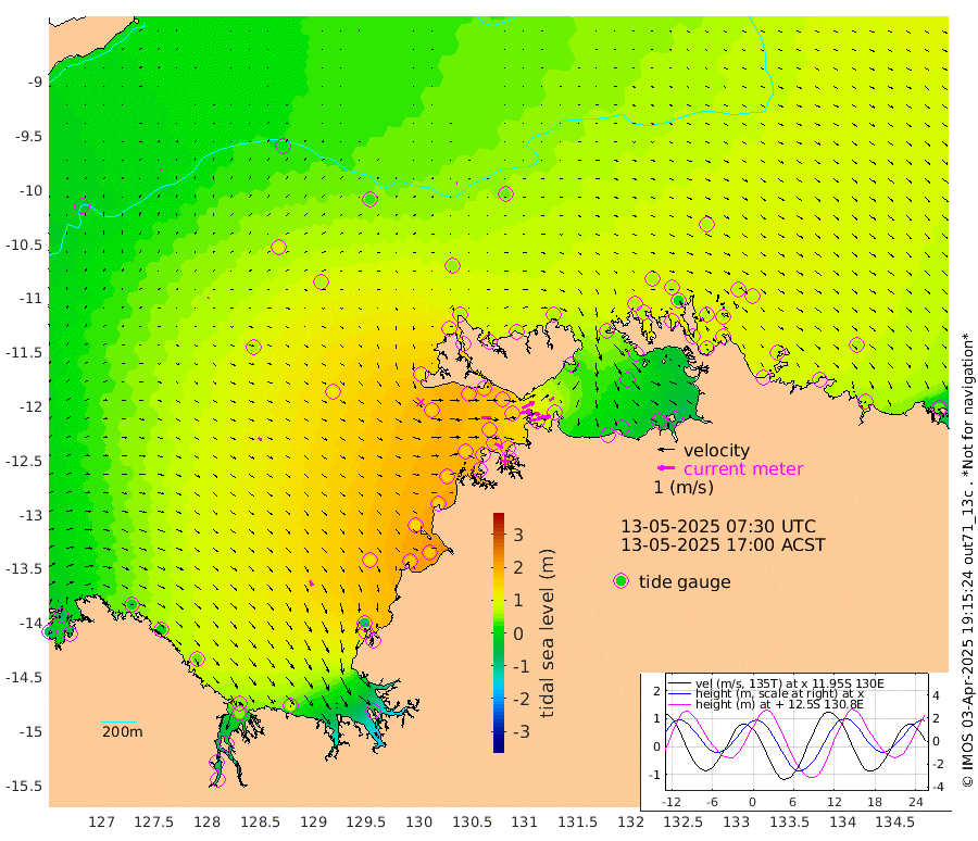 113cm/s 78T +4cm/s rms + 6cm/s 51T. Darwin_C1 52m 75cm/s 83T +4cm/s rms + 7cm/s -161T. Darwin_CW1 22m 61cm/s 75T +4cm/s rms + 8cm/s 61T. Darwin_CW2 34m 33cm/s 57T +3cm/s rms + 9cm/s 98T. Darwin_CW3 22m 70cm/s 87T +5cm/s rms + 7cm/s 88T. Darwin_C3 56m 80cm/s 63T +2cm/s rms + 9cm/s -126T. Darwin_CTbW 22m 5cm/s 99T +9cm/s rms + 2cm/s -110T. NWSLYN 196m 54cm/s 90T +1cm/s rms + 1cm/s -47T. DARBGF 30m 9cm/s 17T +7cm/s rms + 2cm/s -137T. ITFTIS 464m 6cm/s 57T +9cm/s rms + 1cm/s 74T. ITFMHB 146m 32cm/s 155T +4cm/s rms + 1cm/s -134T. ITFJBG 61m 23cm/s 124T +6cm/s rms + 4cm/s 121T. ITFFTB 108m 52cm/s 118T +4cm/s rms + 3cm/s 80T. NRSDAR 19m -67cm Carronade Island -75cm Guy Point -64cm Napier Broome Bay 9cm Lesueur Island 40cm Reveley Island 4cm Rocky Island 50cm Cape Domett 49cm Lacrosse Island 10cm Adolphus Island -77cm Pender Point -109cm Wyndham 60cm The Boxers 102cm Unnamed Shoal 16cm Loxton Shoal 71cm Pelican Island 59cm Calder Shoal 27cm Evans Shoal -11cm Quoin Island 129cm Port Keats 117cm Jones Point -89cm Catfish Island 131cm Cape Scott Offshore 168cm Cape Ford 161cm Anson Bay 56cm Goodrich Bank 143cm Peron Island North 153cm Point Jenny 156cm Native Point 156cm Fish Reef 165cm Tapa Bay 114cm Point Fawcett (Offshore) 171cm Burge Point 162cm Munkunuwa 146cm Beagle A 166cm Parsons Bank 165cm Fenton Patches 43cm Lynedoch Bank 151cm Hancox Shoal Area 171cm Nightcliff 173cm Darwin 170cm Charles Point Patches 91cm Glyde Point 8cm Chambers Bay -10cm Point Stuart 58cm Cape Hotham 12cm Christine Reef -24cm West Alligator Head -56cm East Field Island 23cm Two Hills Bay 118cm Newby Shoal 35cm Camp Point 165cm Medina Inlet South 117cm South Barlow Point 91cm St. Asaph Bay 64cm Cape Van Dieman 75cm Snake Bay 58cm Cache Point -13cm Echo Shoal 59cm Point Jahleel (Off) 67cm Cape Don 66cm Port Essington 67cm Smith Point - West 65cm NW Peacock Island 59cm North Of Jones Shoal 22cm Peacock Island 74cm Point David 72cm D'urville Point 63cm Money Shoal 71cm Copeland Island 91cm Cape Cockburn 71cm One Tree Point 70cm Hogmany Shoal 73cm New Year Island - West 73cm Grant Island 73cm Aurari Bay 64cm Cuthbert Point 73cm North Goulburn Island 63cm Paxie Shoal 56cm Entrance Island 44cm Yabooma Island