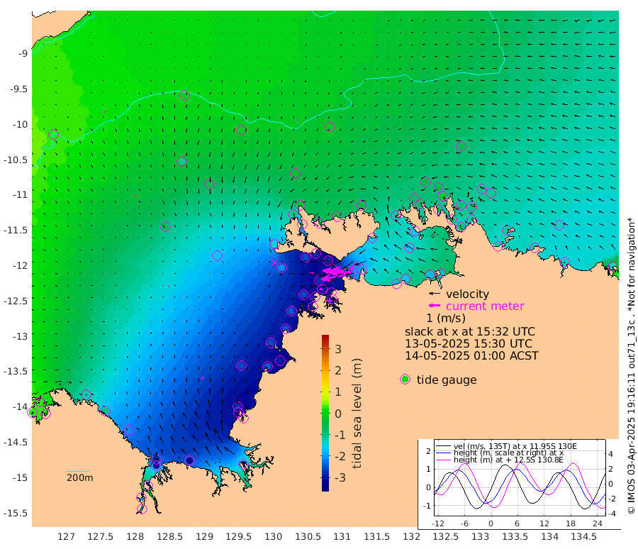 225cm/s -102T +4cm/s rms + 6cm/s 51T. Darwin_C1 52m 186cm/s -90T +4cm/s rms + 7cm/s -161T. Darwin_CW1 22m 124cm/s -106T +4cm/s rms + 8cm/s 61T. Darwin_CW2 34m 104cm/s -135T +3cm/s rms + 9cm/s 98T. Darwin_CW3 22m 191cm/s -90T +5cm/s rms + 7cm/s 88T. Darwin_C3 56m 131cm/s -115T +2cm/s rms + 9cm/s -126T. Darwin_CTbW 22m 7cm/s -142T +9cm/s rms + 2cm/s -110T. NWSLYN 196m 40cm/s -101T +1cm/s rms + 1cm/s -47T. DARBGF 30m 9cm/s 149T +7cm/s rms + 2cm/s -137T. ITFTIS 464m 7cm/s 146T +9cm/s rms + 1cm/s 74T. ITFMHB 146m 13cm/s 21T +4cm/s rms + 1cm/s -134T. ITFJBG 61m 8cm/s 107T +6cm/s rms + 4cm/s 121T. ITFFTB 108m 25cm/s -81T +4cm/s rms + 3cm/s 80T. NRSDAR 19m 24cm Carronade Island 24cm Guy Point 21cm Napier Broome Bay -117cm Lesueur Island -213cm Reveley Island -93cm Rocky Island -298cm Cape Domett -280cm Lacrosse Island -295cm Adolphus Island -213cm Pender Point -193cm Wyndham -76cm The Boxers -106cm Unnamed Shoal -1cm Loxton Shoal -320cm Pelican Island -58cm Calder Shoal -12cm Evans Shoal -355cm Quoin Island -326cm Port Keats -307cm Jones Point -279cm Catfish Island -256cm Cape Scott Offshore -247cm Cape Ford -285cm Anson Bay -36cm Goodrich Bank -252cm Peron Island North -240cm Point Jenny -241cm Native Point -257cm Fish Reef -276cm Tapa Bay -145cm Point Fawcett (Offshore) -290cm Burge Point -251cm Munkunuwa -214cm Beagle A -283cm Parsons Bank -279cm Fenton Patches -25cm Lynedoch Bank -283cm Hancox Shoal Area -303cm Nightcliff -323cm Darwin -298cm Charles Point Patches -234cm Glyde Point -176cm Chambers Bay -168cm Point Stuart -200cm Cape Hotham -163cm Christine Reef -176cm West Alligator Head -158cm East Field Island -163cm Two Hills Bay -163cm Newby Shoal -167cm Camp Point -273cm Medina Inlet South -126cm South Barlow Point -90cm St. Asaph Bay -41cm Cape Van Dieman -56cm Snake Bay -46cm Cache Point 27cm Echo Shoal -65cm Point Jahleel (Off) -115cm Cape Don -72cm Port Essington -71cm Smith Point - West -66cm NW Peacock Island -55cm North Of Jones Shoal -21cm Peacock Island -89cm Point David -73cm D'urville Point -61cm Money Shoal -88cm Copeland Island -116cm Cape Cockburn -88cm One Tree Point -108cm Hogmany Shoal -93cm New Year Island - West -95cm Grant Island -111cm Aurari Bay -118cm Cuthbert Point -108cm North Goulburn Island -133cm Paxie Shoal -133cm Entrance Island -143cm Yabooma Island