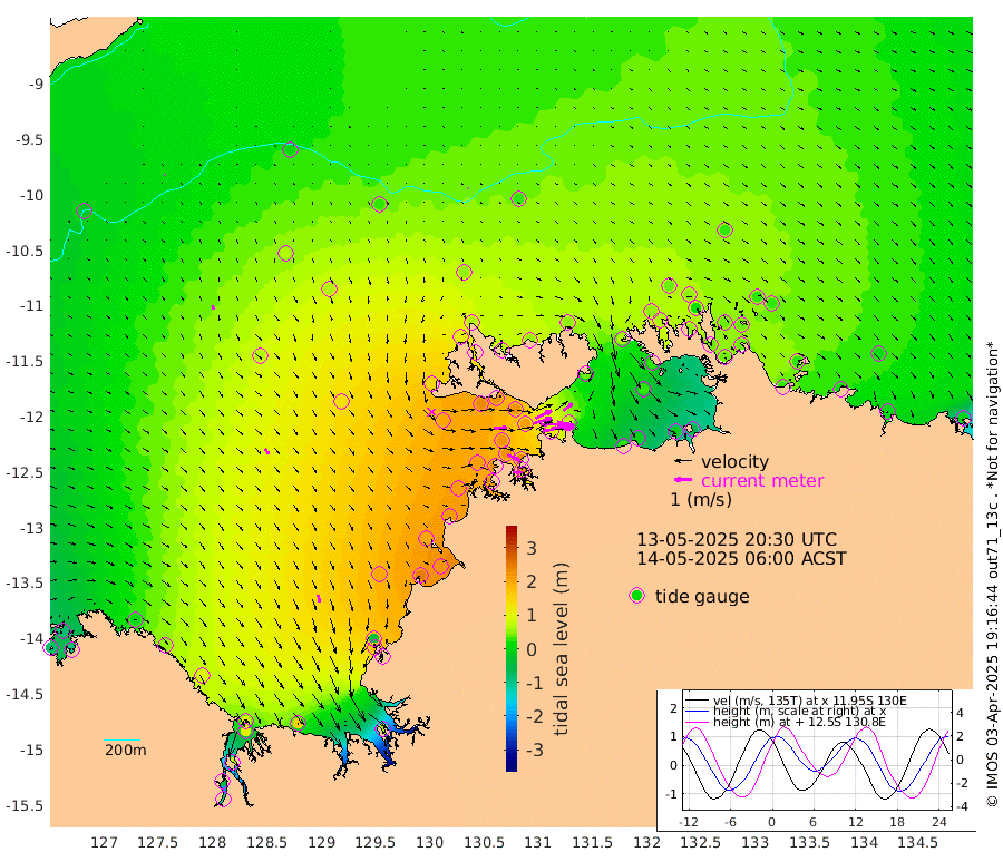 175cm/s 77T +4cm/s rms + 6cm/s 51T. Darwin_C1 52m 124cm/s 89T +4cm/s rms + 7cm/s -161T. Darwin_CW1 22m 109cm/s 74T +4cm/s rms + 8cm/s 61T. Darwin_CW2 34m 67cm/s 52T +3cm/s rms + 9cm/s 98T. Darwin_CW3 22m 141cm/s 88T +5cm/s rms + 7cm/s 88T. Darwin_C3 56m 104cm/s 64T +2cm/s rms + 9cm/s -126T. Darwin_CTbW 22m 3cm/s 127T +9cm/s rms + 2cm/s -110T. NWSLYN 196m 76cm/s 88T +1cm/s rms + 1cm/s -47T. DARBGF 30m 3cm/s 120T +7cm/s rms + 2cm/s -137T. ITFTIS 464m 22cm/s 175T +9cm/s rms + 1cm/s 74T. ITFMHB 146m 43cm/s 164T +4cm/s rms + 1cm/s -134T. ITFJBG 61m 37cm/s 143T +6cm/s rms + 4cm/s 121T. ITFFTB 108m 76cm/s 116T +4cm/s rms + 3cm/s 80T. NRSDAR 19m -86cm Carronade Island -82cm Guy Point -93cm Napier Broome Bay 7cm Lesueur Island 95cm Reveley Island 45cm Rocky Island 110cm Cape Domett 106cm Lacrosse Island 72cm Adolphus Island -46cm Pender Point -94cm Wyndham 59cm The Boxers 67cm Unnamed Shoal 10cm Loxton Shoal 150cm Pelican Island 64cm Calder Shoal 29cm Evans Shoal 57cm Quoin Island 191cm Port Keats 177cm Jones Point -35cm Catfish Island 191cm Cape Scott Offshore 246cm Cape Ford 220cm Anson Bay 51cm Goodrich Bank 194cm Peron Island North 213cm Point Jenny 213cm Native Point 210cm Fish Reef 230cm Tapa Bay 146cm Point Fawcett (Offshore) 224cm Burge Point 228cm Munkunuwa 193cm Beagle A 217cm Parsons Bank 223cm Fenton Patches 27cm Lynedoch Bank 209cm Hancox Shoal Area 233cm Nightcliff 226cm Darwin 224cm Charles Point Patches 118cm Glyde Point 27cm Chambers Bay -7cm Point Stuart 72cm Cape Hotham 32cm Christine Reef -16cm West Alligator Head -59cm East Field Island 28cm Two Hills Bay 127cm Newby Shoal 36cm Camp Point 220cm Medina Inlet South 134cm South Barlow Point 110cm St. Asaph Bay 58cm Cape Van Dieman 60cm Snake Bay 53cm Cache Point -15cm Echo Shoal 55cm Point Jahleel (Off) 62cm Cape Don 51cm Port Essington 60cm Smith Point - West 47cm NW Peacock Island 42cm North Of Jones Shoal 15cm Peacock Island 35cm Point David 54cm D'urville Point 30cm Money Shoal 34cm Copeland Island 40cm Cape Cockburn 35cm One Tree Point 33cm Hogmany Shoal 32cm New Year Island - West 34cm Grant Island 29cm Aurari Bay 21cm Cuthbert Point 28cm North Goulburn Island 11cm Paxie Shoal 11cm Entrance Island -10cm Yabooma Island