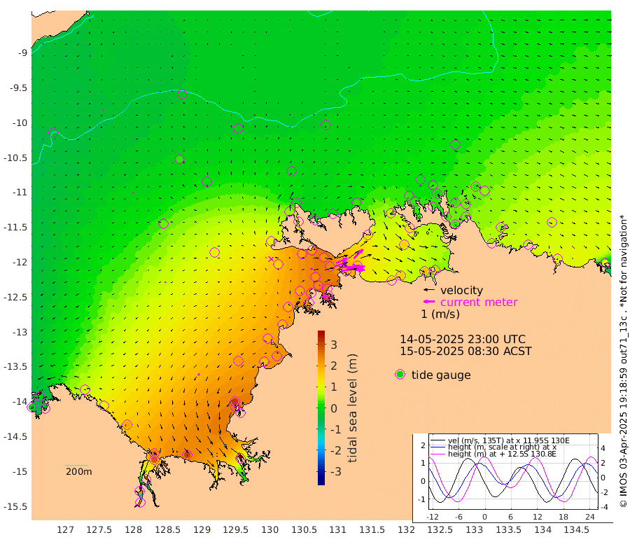 212cm/s 78T +4cm/s rms + 6cm/s 51T. Darwin_C1 52m 162cm/s 93T +4cm/s rms + 7cm/s -161T. Darwin_CW1 22m 117cm/s 72T +4cm/s rms + 8cm/s 61T. Darwin_CW2 34m 117cm/s 46T +3cm/s rms + 9cm/s 98T. Darwin_CW3 22m 183cm/s 89T +5cm/s rms + 7cm/s 88T. Darwin_C3 56m 109cm/s 66T +2cm/s rms + 9cm/s -126T. Darwin_CTbW 22m 5cm/s -2T +9cm/s rms + 2cm/s -110T. NWSLYN 196m 22cm/s 66T +1cm/s rms + 1cm/s -47T. DARBGF 30m 6cm/s -106T +7cm/s rms + 2cm/s -137T. ITFTIS 464m 11cm/s -133T +9cm/s rms + 1cm/s 74T. ITFMHB 146m 14cm/s -118T +4cm/s rms + 1cm/s -134T. ITFJBG 61m 14cm/s -94T +6cm/s rms + 4cm/s 121T. ITFFTB 108m 12cm/s 67T +4cm/s rms + 3cm/s 80T. NRSDAR 19m -17cm Carronade Island -10cm Guy Point -19cm Napier Broome Bay 87cm Lesueur Island 194cm Reveley Island 112cm Rocky Island 277cm Cape Domett 254cm Lacrosse Island 297cm Adolphus Island 236cm Pender Point 222cm Wyndham 37cm The Boxers 30cm Unnamed Shoal -19cm Loxton Shoal 299cm Pelican Island 21cm Calder Shoal -9cm Evans Shoal 360cm Quoin Island 278cm Port Keats 257cm Jones Point 308cm Catfish Island 205cm Cape Scott Offshore 172cm Cape Ford 222cm Anson Bay 1cm Goodrich Bank 191cm Peron Island North 186cm Point Jenny 184cm Native Point 195cm Fish Reef 214cm Tapa Bay 93cm Point Fawcett (Offshore) 222cm Burge Point 194cm Munkunuwa 156cm Beagle A 218cm Parsons Bank 217cm Fenton Patches -8cm Lynedoch Bank 227cm Hancox Shoal Area 241cm Nightcliff 250cm Darwin 227cm Charles Point Patches 188cm Glyde Point 165cm Chambers Bay 155cm Point Stuart 162cm Cape Hotham 156cm Christine Reef 170cm West Alligator Head 161cm East Field Island 138cm Two Hills Bay 105cm Newby Shoal 137cm Camp Point 208cm Medina Inlet South 72cm South Barlow Point 47cm St. Asaph Bay 1cm Cape Van Dieman 7cm Snake Bay 8cm Cache Point -35cm Echo Shoal 28cm Point Jahleel (Off) 74cm Cape Don 27cm Port Essington 31cm Smith Point - West 23cm NW Peacock Island 13cm North Of Jones Shoal 5cm Peacock Island 31cm Point David 28cm D'urville Point 13cm Money Shoal 33cm Copeland Island 45cm Cape Cockburn 33cm One Tree Point 46cm Hogmany Shoal 33cm New Year Island - West 37cm Grant Island 51cm Aurari Bay 66cm Cuthbert Point 49cm North Goulburn Island 74cm Paxie Shoal 81cm Entrance Island 93cm Yabooma Island