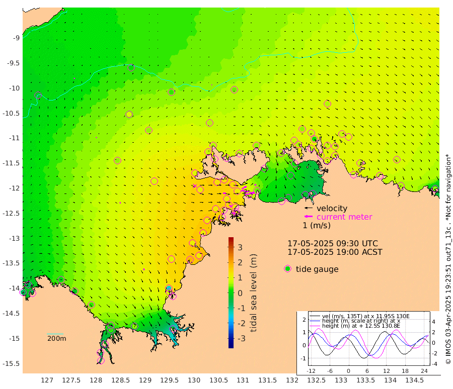 103cm/s 79T +4cm/s rms + 6cm/s 51T. Darwin_C1 52m 71cm/s 85T +4cm/s rms + 7cm/s -161T. Darwin_CW1 22m 41cm/s 76T +4cm/s rms + 8cm/s 61T. Darwin_CW2 34m 24cm/s 62T +3cm/s rms + 9cm/s 98T. Darwin_CW3 22m 50cm/s 88T +5cm/s rms + 7cm/s 88T. Darwin_C3 56m 66cm/s 62T +2cm/s rms + 9cm/s -126T. Darwin_CTbW 22m 7cm/s 120T +9cm/s rms + 2cm/s -110T. NWSLYN 196m 38cm/s 91T +1cm/s rms + 1cm/s -47T. DARBGF 30m 9cm/s 8T +7cm/s rms + 2cm/s -137T. ITFTIS 464m 7cm/s 26T +9cm/s rms + 1cm/s 74T. ITFMHB 146m 23cm/s 152T +4cm/s rms + 1cm/s -134T. ITFJBG 61m 14cm/s 118T +6cm/s rms + 4cm/s 121T. ITFFTB 108m 34cm/s 119T +4cm/s rms + 3cm/s 80T. NRSDAR 19m -68cm Carronade Island -70cm Guy Point -68cm Napier Broome Bay -2cm Lesueur Island 28cm Reveley Island -18cm Rocky Island 25cm Cape Domett 20cm Lacrosse Island -13cm Adolphus Island -77cm Pender Point -111cm Wyndham 48cm The Boxers 90cm Unnamed Shoal 17cm Loxton Shoal 49cm Pelican Island 46cm Calder Shoal 30cm Evans Shoal -41cm Quoin Island 91cm Port Keats 93cm Jones Point -141cm Catfish Island 94cm Cape Scott Offshore 185cm Cape Ford 116cm Anson Bay 57cm Goodrich Bank 111cm Peron Island North 116cm Point Jenny 120cm Native Point 116cm Fish Reef 131cm Tapa Bay 90cm Point Fawcett (Offshore) 130cm Burge Point 129cm Munkunuwa 106cm Beagle A 135cm Parsons Bank 120cm Fenton Patches 43cm Lynedoch Bank 121cm Hancox Shoal Area 119cm Nightcliff 136cm Darwin 137cm Charles Point Patches 69cm Glyde Point -12cm Chambers Bay -18cm Point Stuart 41cm Cape Hotham -4cm Christine Reef -32cm West Alligator Head -63cm East Field Island 13cm Two Hills Bay 82cm Newby Shoal 23cm Camp Point 127cm Medina Inlet South 97cm South Barlow Point 76cm St. Asaph Bay 64cm Cape Van Dieman 72cm Snake Bay 57cm Cache Point -15cm Echo Shoal 56cm Point Jahleel (Off) 58cm Cape Don 68cm Port Essington 67cm Smith Point - West 69cm NW Peacock Island 54cm North Of Jones Shoal 21cm Peacock Island 84cm Point David 74cm D'urville Point 66cm Money Shoal 81cm Copeland Island 97cm Cape Cockburn 75cm One Tree Point 97cm Hogmany Shoal 78cm New Year Island - West 83cm Grant Island 75cm Aurari Bay 74cm Cuthbert Point 79cm North Goulburn Island 72cm Paxie Shoal 65cm Entrance Island 51cm Yabooma Island