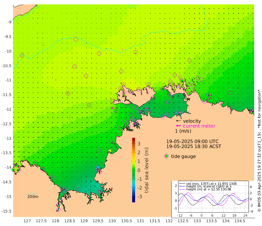 37cm/s -100T +4cm/s rms + 6cm/s 51T. Darwin_C1 52m 9cm/s -93T +4cm/s rms + 7cm/s -161T. Darwin_CW1 22m 10cm/s -112T +4cm/s rms + 8cm/s 61T. Darwin_CW2 34m 33cm/s -137T +3cm/s rms + 9cm/s 98T. Darwin_CW3 22m 17cm/s -89T +5cm/s rms + 7cm/s 88T. Darwin_C3 56m 20cm/s -115T +2cm/s rms + 9cm/s -126T. Darwin_CTbW 22m 10cm/s 137T +9cm/s rms + 2cm/s -110T. NWSLYN 196m 17cm/s 99T +1cm/s rms + 1cm/s -47T. DARBGF 30m 10cm/s 31T +7cm/s rms + 2cm/s -137T. ITFTIS 464m 10cm/s 46T +9cm/s rms + 1cm/s 74T. ITFMHB 146m 11cm/s 104T +4cm/s rms + 1cm/s -134T. ITFJBG 61m 15cm/s 92T +6cm/s rms + 4cm/s 121T. ITFFTB 108m 18cm/s 135T +4cm/s rms + 3cm/s 80T. NRSDAR 19m 13cm Carronade Island 13cm Guy Point 20cm Napier Broome Bay 1cm Lesueur Island -43cm Reveley Island -26cm Rocky Island -75cm Cape Domett -71cm Lacrosse Island -104cm Adolphus Island -102cm Pender Point -115cm Wyndham 54cm The Boxers 59cm Unnamed Shoal 68cm Loxton Shoal -77cm Pelican Island 57cm Calder Shoal 62cm Evans Shoal -139cm Quoin Island -46cm Port Keats -39cm Jones Point -166cm Catfish Island -11cm Cape Scott Offshore 88cm Cape Ford -10cm Anson Bay 67cm Goodrich Bank 4cm Peron Island North 6cm Point Jenny 9cm Native Point 4cm Fish Reef 1cm Tapa Bay 45cm Point Fawcett (Offshore) -5cm Burge Point 6cm Munkunuwa 14cm Beagle A -7cm Parsons Bank -11cm Fenton Patches 61cm Lynedoch Bank -19cm Hancox Shoal Area -30cm Nightcliff -10cm Darwin 12cm Charles Point Patches -30cm Glyde Point -75cm Chambers Bay -74cm Point Stuart -41cm Cape Hotham -65cm Christine Reef -90cm West Alligator Head -102cm East Field Island -46cm Two Hills Bay 36cm Newby Shoal -35cm Camp Point 6cm Medina Inlet South 53cm South Barlow Point 57cm St. Asaph Bay 68cm Cape Van Dieman 68cm Snake Bay 62cm Cache Point 55cm Echo Shoal 46cm Point Jahleel (Off) 20cm Cape Don 52cm Port Essington 45cm Smith Point - West 47cm NW Peacock Island 51cm North Of Jones Shoal 17cm Peacock Island 38cm Point David 46cm D'urville Point 51cm Money Shoal 32cm Copeland Island 39cm Cape Cockburn 38cm One Tree Point 45cm Hogmany Shoal 36cm New Year Island - West 36cm Grant Island 12cm Aurari Bay 7cm Cuthbert Point 20cm North Goulburn Island 2cm Paxie Shoal -21cm Entrance Island -45cm Yabooma Island