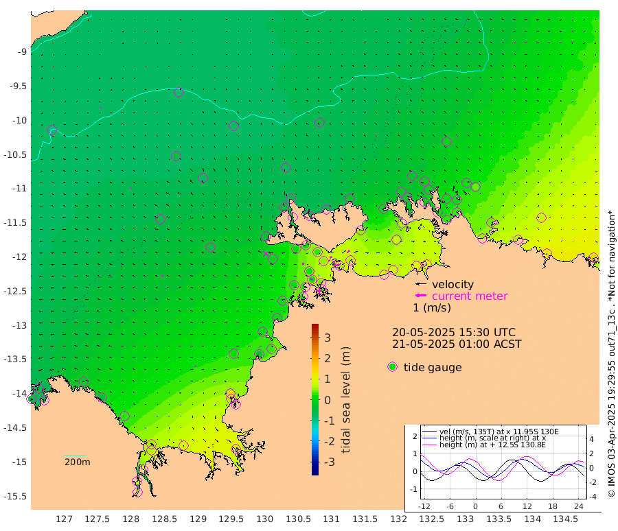 40cm/s 80T +4cm/s rms + 6cm/s 51T. Darwin_C1 52m 8cm/s 82T +4cm/s rms + 7cm/s -161T. Darwin_CW1 22m 11cm/s 65T +4cm/s rms + 8cm/s 61T. Darwin_CW2 34m 32cm/s 43T +3cm/s rms + 9cm/s 98T. Darwin_CW3 22m 14cm/s 89T +5cm/s rms + 7cm/s 88T. Darwin_C3 56m 22cm/s 63T +2cm/s rms + 9cm/s -126T. Darwin_CTbW 22m 4cm/s -31T +9cm/s rms + 2cm/s -110T. NWSLYN 196m 16cm/s -85T +1cm/s rms + 1cm/s -47T. DARBGF 30m 8cm/s -117T +7cm/s rms + 2cm/s -137T. ITFTIS 464m 8cm/s -63T +9cm/s rms + 1cm/s 74T. ITFMHB 146m 7cm/s -69T +4cm/s rms + 1cm/s -134T. ITFJBG 61m 15cm/s -72T +6cm/s rms + 4cm/s 121T. ITFFTB 108m 22cm/s -51T +4cm/s rms + 3cm/s 80T. NRSDAR 19m -46cm Carronade Island -44cm Guy Point -57cm Napier Broome Bay -13cm Lesueur Island 28cm Reveley Island -38cm Rocky Island 60cm Cape Domett 53cm Lacrosse Island 82cm Adolphus Island 68cm Pender Point 76cm Wyndham -57cm The Boxers -38cm Unnamed Shoal -85cm Loxton Shoal 85cm Pelican Island -68cm Calder Shoal -68cm Evans Shoal 106cm Quoin Island 48cm Port Keats 58cm Jones Point 136cm Catfish Island 18cm Cape Scott Offshore -41cm Cape Ford 27cm Anson Bay -57cm Goodrich Bank 8cm Peron Island North 10cm Point Jenny 6cm Native Point 6cm Fish Reef 22cm Tapa Bay -37cm Point Fawcett (Offshore) 16cm Burge Point 2cm Munkunuwa -10cm Beagle A 30cm Parsons Bank 20cm Fenton Patches -56cm Lynedoch Bank 46cm Hancox Shoal Area 40cm Nightcliff 33cm Darwin 16cm Charles Point Patches 48cm Glyde Point 85cm Chambers Bay 83cm Point Stuart 57cm Cape Hotham 69cm Christine Reef 93cm West Alligator Head 100cm East Field Island 57cm Two Hills Bay -46cm Newby Shoal 52cm Camp Point 5cm Medina Inlet South -45cm South Barlow Point -52cm St. Asaph Bay -55cm Cape Van Dieman -54cm Snake Bay -49cm Cache Point -80cm Echo Shoal -32cm Point Jahleel (Off) 2cm Cape Don -22cm Port Essington -18cm Smith Point - West -14cm NW Peacock Island -32cm North Of Jones Shoal -9cm Peacock Island 21cm Point David -9cm D'urville Point -11cm Money Shoal 28cm Copeland Island 26cm Cape Cockburn 10cm One Tree Point 36cm Hogmany Shoal 16cm New Year Island - West 21cm Grant Island 50cm Aurari Bay 67cm Cuthbert Point 44cm North Goulburn Island 76cm Paxie Shoal 103cm Entrance Island 140cm Yabooma Island