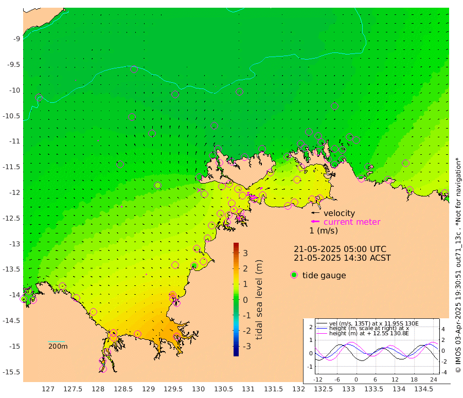 51cm/s 77T +4cm/s rms + 6cm/s 51T. Darwin_C1 52m 36cm/s 92T +4cm/s rms + 7cm/s -161T. Darwin_CW1 22m 36cm/s 72T +4cm/s rms + 8cm/s 61T. Darwin_CW2 34m 39cm/s 45T +3cm/s rms + 9cm/s 98T. Darwin_CW3 22m 60cm/s 90T +5cm/s rms + 7cm/s 88T. Darwin_C3 56m 30cm/s 67T +2cm/s rms + 9cm/s -126T. Darwin_CTbW 22m 4cm/s -6T +9cm/s rms + 2cm/s -110T. NWSLYN 196m 10cm/s -62T +1cm/s rms + 1cm/s -47T. DARBGF 30m 4cm/s -39T +7cm/s rms + 2cm/s -137T. ITFTIS 464m 7cm/s -27T +9cm/s rms + 1cm/s 74T. ITFMHB 146m 12cm/s -49T +4cm/s rms + 1cm/s -134T. ITFJBG 61m 16cm/s -51T +6cm/s rms + 4cm/s 121T. ITFFTB 108m 16cm/s -42T +4cm/s rms + 3cm/s 80T. NRSDAR 19m 46cm Carronade Island 46cm Guy Point 58cm Napier Broome Bay 75cm Lesueur Island 106cm Reveley Island 81cm Rocky Island 166cm Cape Domett 152cm Lacrosse Island 181cm Adolphus Island 194cm Pender Point 204cm Wyndham 20cm The Boxers 15cm Unnamed Shoal -16cm Loxton Shoal 154cm Pelican Island 2cm Calder Shoal -23cm Evans Shoal 220cm Quoin Island 140cm Port Keats 125cm Jones Point 223cm Catfish Island 84cm Cape Scott Offshore 34cm Cape Ford 90cm Anson Bay -20cm Goodrich Bank 65cm Peron Island North 75cm Point Jenny 74cm Native Point 75cm Fish Reef 83cm Tapa Bay 19cm Point Fawcett (Offshore) 99cm Burge Point 65cm Munkunuwa 63cm Beagle A 83cm Parsons Bank 96cm Fenton Patches -17cm Lynedoch Bank 91cm Hancox Shoal Area 106cm Nightcliff 103cm Darwin 85cm Charles Point Patches 99cm Glyde Point 120cm Chambers Bay 116cm Point Stuart 92cm Cape Hotham 112cm Christine Reef 130cm West Alligator Head 142cm East Field Island 88cm Two Hills Bay 56cm Newby Shoal 95cm Camp Point 79cm Medina Inlet South 7cm South Barlow Point -4cm St. Asaph Bay -21cm Cape Van Dieman -19cm Snake Bay -15cm Cache Point -19cm Echo Shoal -4cm Point Jahleel (Off) 31cm Cape Don -7cm Port Essington -8cm Smith Point - West -10cm NW Peacock Island -14cm North Of Jones Shoal -5cm Peacock Island -3cm Point David -10cm D'urville Point -7cm Money Shoal -2cm Copeland Island 2cm Cape Cockburn 0cm One Tree Point -2cm Hogmany Shoal 5cm New Year Island - West 4cm Grant Island 16cm Aurari Bay 28cm Cuthbert Point 16cm North Goulburn Island 44cm Paxie Shoal 51cm Entrance Island 65cm Yabooma Island