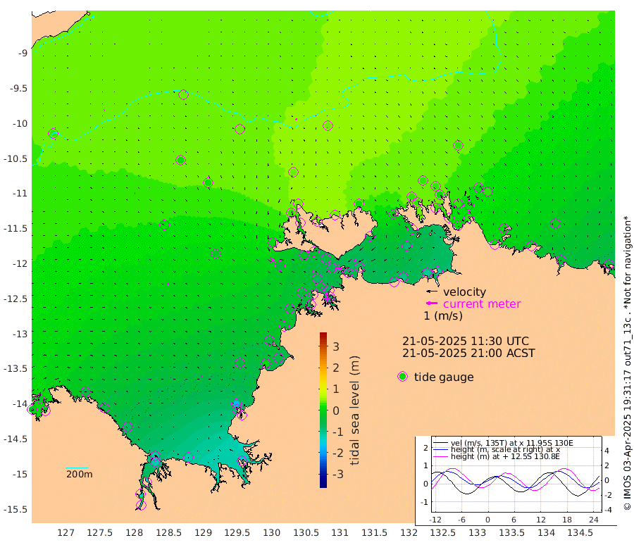 9cm/s -105T +4cm/s rms + 6cm/s 51T. Darwin_C1 52m 5cm/s -72T +4cm/s rms + 7cm/s -161T. Darwin_CW1 22m 19cm/s -109T +4cm/s rms + 8cm/s 61T. Darwin_CW2 34m 21cm/s -146T +3cm/s rms + 9cm/s 98T. Darwin_CW3 22m 33cm/s -89T +5cm/s rms + 7cm/s 88T. Darwin_C3 56m 4cm/s -103T +2cm/s rms + 9cm/s -126T. Darwin_CTbW 22m 10cm/s 150T +9cm/s rms + 2cm/s -110T. NWSLYN 196m 10cm/s 110T +1cm/s rms + 1cm/s -47T. DARBGF 30m 4cm/s 51T +7cm/s rms + 2cm/s -137T. ITFTIS 464m 4cm/s 87T +9cm/s rms + 1cm/s 74T. ITFMHB 146m 9cm/s 117T +4cm/s rms + 1cm/s -134T. ITFJBG 61m 12cm/s 112T +6cm/s rms + 4cm/s 121T. ITFFTB 108m 12cm/s 134T +4cm/s rms + 3cm/s 80T. NRSDAR 19m -17cm Carronade Island -14cm Guy Point -13cm Napier Broome Bay -47cm Lesueur Island -78cm Reveley Island -46cm Rocky Island -116cm Cape Domett -116cm Lacrosse Island -137cm Adolphus Island -131cm Pender Point -145cm Wyndham 14cm The Boxers 13cm Unnamed Shoal 40cm Loxton Shoal -113cm Pelican Island 20cm Calder Shoal 41cm Evans Shoal -167cm Quoin Island -90cm Port Keats -86cm Jones Point -174cm Catfish Island -50cm Cape Scott Offshore 5cm Cape Ford -52cm Anson Bay 39cm Goodrich Bank -36cm Peron Island North -39cm Point Jenny -38cm Native Point -43cm Fish Reef -46cm Tapa Bay 8cm Point Fawcett (Offshore) -58cm Burge Point -34cm Munkunuwa -38cm Beagle A -46cm Parsons Bank -66cm Fenton Patches 37cm Lynedoch Bank -57cm Hancox Shoal Area -74cm Nightcliff -60cm Darwin -40cm Charles Point Patches -66cm Glyde Point -93cm Chambers Bay -91cm Point Stuart -69cm Cape Hotham -83cm Christine Reef -105cm West Alligator Head -119cm East Field Island -64cm Two Hills Bay -18cm Newby Shoal -64cm Camp Point -40cm Medina Inlet South 18cm South Barlow Point 24cm St. Asaph Bay 40cm Cape Van Dieman 39cm Snake Bay 35cm Cache Point 29cm Echo Shoal 21cm Point Jahleel (Off) -2cm Cape Don 31cm Port Essington 27cm Smith Point - West 30cm NW Peacock Island 33cm North Of Jones Shoal 11cm Peacock Island 24cm Point David 29cm D'urville Point 32cm Money Shoal 21cm Copeland Island 24cm Cape Cockburn 24cm One Tree Point 29cm Hogmany Shoal 17cm New Year Island - West 21cm Grant Island 1cm Aurari Bay 1cm Cuthbert Point 10cm North Goulburn Island -7cm Paxie Shoal -27cm Entrance Island -45cm Yabooma Island