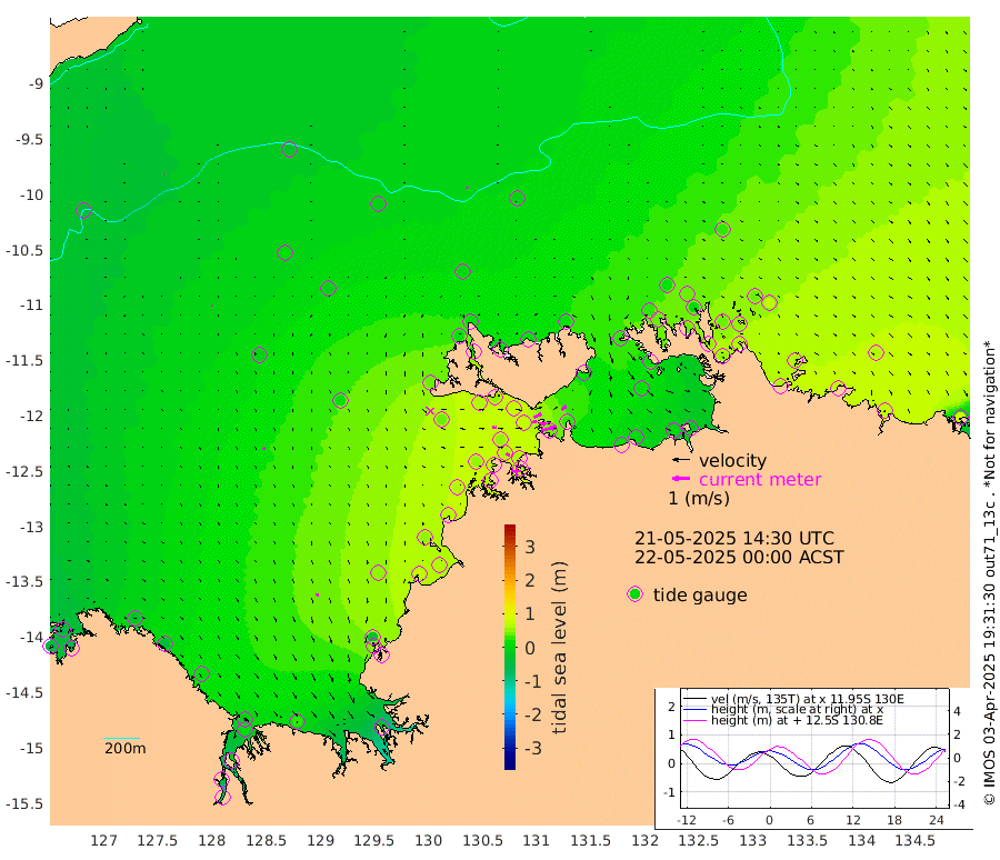 80cm/s 78T +4cm/s rms + 6cm/s 51T. Darwin_C1 52m 36cm/s 90T +4cm/s rms + 7cm/s -161T. Darwin_CW1 22m 30cm/s 74T +4cm/s rms + 8cm/s 61T. Darwin_CW2 34m 35cm/s 48T +3cm/s rms + 9cm/s 98T. Darwin_CW3 22m 37cm/s 88T +5cm/s rms + 7cm/s 88T. Darwin_C3 56m 46cm/s 64T +2cm/s rms + 9cm/s -126T. Darwin_CTbW 22m 5cm/s 146T +9cm/s rms + 2cm/s -110T. NWSLYN 196m 23cm/s 93T +1cm/s rms + 1cm/s -47T. DARBGF 30m 2cm/s -121T +7cm/s rms + 2cm/s -137T. ITFTIS 464m 6cm/s -163T +9cm/s rms + 1cm/s 74T. ITFMHB 146m 16cm/s 161T +4cm/s rms + 1cm/s -134T. ITFJBG 61m 12cm/s 156T +6cm/s rms + 4cm/s 121T. ITFFTB 108m 22cm/s 117T +4cm/s rms + 3cm/s 80T. NRSDAR 19m -55cm Carronade Island -53cm Guy Point -62cm Napier Broome Bay -28cm Lesueur Island 5cm Reveley Island -34cm Rocky Island 4cm Cape Domett -1cm Lacrosse Island -11cm Adolphus Island -55cm Pender Point -73cm Wyndham -4cm The Boxers 14cm Unnamed Shoal -28cm Loxton Shoal 34cm Pelican Island -7cm Calder Shoal -7cm Evans Shoal -30cm Quoin Island 41cm Port Keats 46cm Jones Point -25cm Catfish Island 45cm Cape Scott Offshore 68cm Cape Ford 59cm Anson Bay 7cm Goodrich Bank 53cm Peron Island North 62cm Point Jenny 60cm Native Point 54cm Fish Reef 67cm Tapa Bay 35cm Point Fawcett (Offshore) 57cm Burge Point 59cm Munkunuwa 44cm Beagle A 71cm Parsons Bank 54cm Fenton Patches -3cm Lynedoch Bank 69cm Hancox Shoal Area 62cm Nightcliff 61cm Darwin 60cm Charles Point Patches 37cm Glyde Point 19cm Chambers Bay 9cm Point Stuart 29cm Cape Hotham 17cm Christine Reef 5cm West Alligator Head -14cm East Field Island 20cm Two Hills Bay 13cm Newby Shoal 13cm Camp Point 55cm Medina Inlet South 30cm South Barlow Point 20cm St. Asaph Bay 12cm Cape Van Dieman 12cm Snake Bay 14cm Cache Point -40cm Echo Shoal 17cm Point Jahleel (Off) 31cm Cape Don 30cm Port Essington 35cm Smith Point - West 35cm NW Peacock Island 20cm North Of Jones Shoal 9cm Peacock Island 53cm Point David 42cm D'urville Point 31cm Money Shoal 55cm Copeland Island 64cm Cape Cockburn 44cm One Tree Point 70cm Hogmany Shoal 44cm New Year Island - West 52cm Grant Island 57cm Aurari Bay 70cm Cuthbert Point 62cm North Goulburn Island 64cm Paxie Shoal 77cm Entrance Island 83cm Yabooma Island