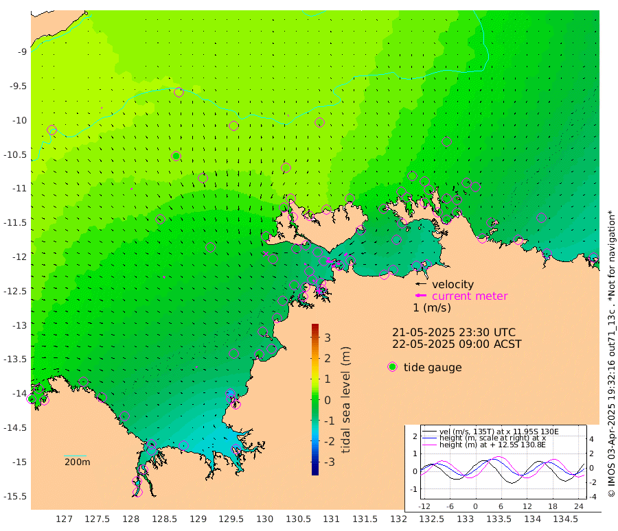 34cm/s -104T +4cm/s rms + 6cm/s 51T. Darwin_C1 52m 24cm/s -88T +4cm/s rms + 7cm/s -161T. Darwin_CW1 22m 23cm/s -107T +4cm/s rms + 8cm/s 61T. Darwin_CW2 34m 35cm/s -139T +3cm/s rms + 9cm/s 98T. Darwin_CW3 22m 44cm/s -90T +5cm/s rms + 7cm/s 88T. Darwin_C3 56m 17cm/s -114T +2cm/s rms + 9cm/s -126T. Darwin_CTbW 22m 2cm/s -120T +9cm/s rms + 2cm/s -110T. NWSLYN 196m 14cm/s 103T +1cm/s rms + 1cm/s -47T. DARBGF 30m 6cm/s 119T +7cm/s rms + 2cm/s -137T. ITFTIS 464m 11cm/s 151T +9cm/s rms + 1cm/s 74T. ITFMHB 146m 12cm/s 131T +4cm/s rms + 1cm/s -134T. ITFJBG 61m 18cm/s 125T +6cm/s rms + 4cm/s 121T. ITFFTB 108m 18cm/s 133T +4cm/s rms + 3cm/s 80T. NRSDAR 19m 14cm Carronade Island 11cm Guy Point 10cm Napier Broome Bay -19cm Lesueur Island -62cm Reveley Island -3cm Rocky Island -118cm Cape Domett -101cm Lacrosse Island -133cm Adolphus Island -139cm Pender Point -144cm Wyndham 24cm The Boxers 19cm Unnamed Shoal 60cm Loxton Shoal -129cm Pelican Island 43cm Calder Shoal 53cm Evans Shoal -170cm Quoin Island -101cm Port Keats -103cm Jones Point -177cm Catfish Island -55cm Cape Scott Offshore -18cm Cape Ford -67cm Anson Bay 43cm Goodrich Bank -38cm Peron Island North -49cm Point Jenny -46cm Native Point -44cm Fish Reef -61cm Tapa Bay 9cm Point Fawcett (Offshore) -65cm Burge Point -38cm Munkunuwa -24cm Beagle A -64cm Parsons Bank -60cm Fenton Patches 42cm Lynedoch Bank -77cm Hancox Shoal Area -76cm Nightcliff -78cm Darwin -64cm Charles Point Patches -80cm Glyde Point -107cm Chambers Bay -101cm Point Stuart -76cm Cape Hotham -93cm Christine Reef -111cm West Alligator Head -120cm East Field Island -72cm Two Hills Bay 4cm Newby Shoal -80cm Camp Point -48cm Medina Inlet South 22cm South Barlow Point 32cm St. Asaph Bay 42cm Cape Van Dieman 43cm Snake Bay 36cm Cache Point 64cm Echo Shoal 23cm Point Jahleel (Off) -19cm Cape Don 12cm Port Essington 15cm Smith Point - West 12cm NW Peacock Island 25cm North Of Jones Shoal 7cm Peacock Island -15cm Point David 9cm D'urville Point 3cm Money Shoal -20cm Copeland Island -19cm Cape Cockburn -10cm One Tree Point -27cm Hogmany Shoal -14cm New Year Island - West -17cm Grant Island -38cm Aurari Bay -61cm Cuthbert Point -38cm North Goulburn Island -81cm Paxie Shoal -94cm Entrance Island -127cm Yabooma Island