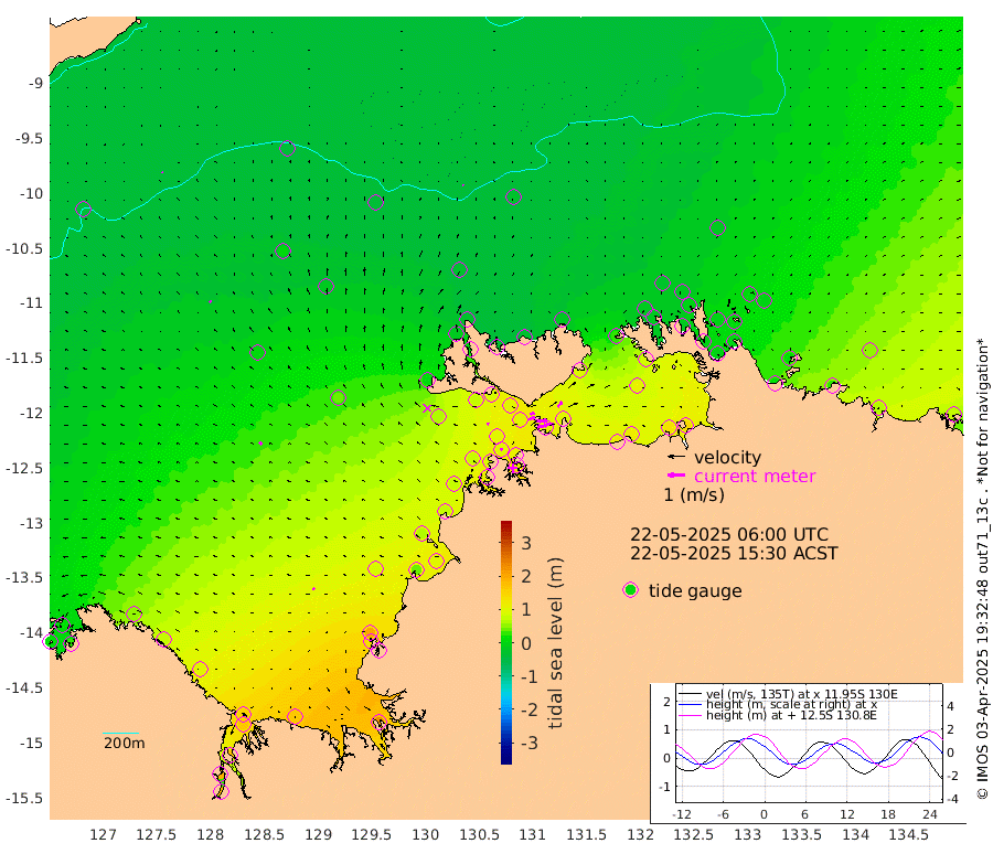 50cm/s 77T +4cm/s rms + 6cm/s 51T. Darwin_C1 52m 42cm/s 93T +4cm/s rms + 7cm/s -161T. Darwin_CW1 22m 39cm/s 72T +4cm/s rms + 8cm/s 61T. Darwin_CW2 34m 41cm/s 43T +3cm/s rms + 9cm/s 98T. Darwin_CW3 22m 69cm/s 90T +5cm/s rms + 7cm/s 88T. Darwin_C3 56m 26cm/s 67T +2cm/s rms + 9cm/s -126T. Darwin_CTbW 22m 5cm/s -12T +9cm/s rms + 2cm/s -110T. NWSLYN 196m 11cm/s -62T +1cm/s rms + 1cm/s -47T. DARBGF 30m 5cm/s -43T +7cm/s rms + 2cm/s -137T. ITFTIS 464m 11cm/s -25T +9cm/s rms + 1cm/s 74T. ITFMHB 146m 13cm/s -56T +4cm/s rms + 1cm/s -134T. ITFJBG 61m 19cm/s -52T +6cm/s rms + 4cm/s 121T. ITFFTB 108m 15cm/s -40T +4cm/s rms + 3cm/s 80T. NRSDAR 19m 14cm Carronade Island 12cm Guy Point 25cm Napier Broome Bay 56cm Lesueur Island 101cm Reveley Island 70cm Rocky Island 166cm Cape Domett 149cm Lacrosse Island 177cm Adolphus Island 185cm Pender Point 190cm Wyndham 4cm The Boxers 10cm Unnamed Shoal -36cm Loxton Shoal 158cm Pelican Island -14cm Calder Shoal -39cm Evans Shoal 219cm Quoin Island 144cm Port Keats 135cm Jones Point 198cm Catfish Island 84cm Cape Scott Offshore 43cm Cape Ford 93cm Anson Bay -32cm Goodrich Bank 67cm Peron Island North 75cm Point Jenny 75cm Native Point 78cm Fish Reef 87cm Tapa Bay 11cm Point Fawcett (Offshore) 106cm Burge Point 73cm Munkunuwa 61cm Beagle A 92cm Parsons Bank 101cm Fenton Patches -29cm Lynedoch Bank 98cm Hancox Shoal Area 112cm Nightcliff 113cm Darwin 91cm Charles Point Patches 103cm Glyde Point 115cm Chambers Bay 115cm Point Stuart 93cm Cape Hotham 107cm Christine Reef 128cm West Alligator Head 138cm East Field Island 85cm Two Hills Bay 44cm Newby Shoal 94cm Camp Point 84cm Medina Inlet South 1cm South Barlow Point -13cm St. Asaph Bay -32cm Cape Van Dieman -29cm Snake Bay -28cm Cache Point -43cm Echo Shoal -14cm Point Jahleel (Off) 25cm Cape Don -14cm Port Essington -17cm Smith Point - West -18cm NW Peacock Island -25cm North Of Jones Shoal -8cm Peacock Island -3cm Point David -17cm D'urville Point -14cm Money Shoal -2cm Copeland Island 0cm Cape Cockburn -3cm One Tree Point -4cm Hogmany Shoal 3cm New Year Island - West 2cm Grant Island 18cm Aurari Bay 30cm Cuthbert Point 15cm North Goulburn Island 48cm Paxie Shoal 57cm Entrance Island 75cm Yabooma Island