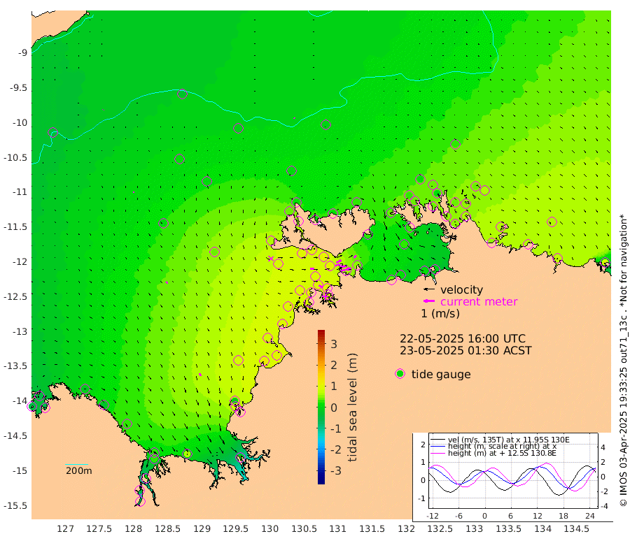 80cm/s 78T +4cm/s rms + 6cm/s 51T. Darwin_C1 52m 42cm/s 87T +4cm/s rms + 7cm/s -161T. Darwin_CW1 22m 44cm/s 74T +4cm/s rms + 8cm/s 61T. Darwin_CW2 34m 30cm/s 52T +3cm/s rms + 9cm/s 98T. Darwin_CW3 22m 53cm/s 87T +5cm/s rms + 7cm/s 88T. Darwin_C3 56m 50cm/s 64T +2cm/s rms + 9cm/s -126T. Darwin_CTbW 22m 4cm/s 143T +9cm/s rms + 2cm/s -110T. NWSLYN 196m 33cm/s 91T +1cm/s rms + 1cm/s -47T. DARBGF 30m 2cm/s -141T +7cm/s rms + 2cm/s -137T. ITFTIS 464m 10cm/s -175T +9cm/s rms + 1cm/s 74T. ITFMHB 146m 24cm/s 160T +4cm/s rms + 1cm/s -134T. ITFJBG 61m 19cm/s 148T +6cm/s rms + 4cm/s 121T. ITFFTB 108m 32cm/s 118T +4cm/s rms + 3cm/s 80T. NRSDAR 19m -51cm Carronade Island -50cm Guy Point -61cm Napier Broome Bay -15cm Lesueur Island 27cm Reveley Island -24cm Rocky Island 32cm Cape Domett 29cm Lacrosse Island 10cm Adolphus Island -48cm Pender Point -68cm Wyndham 8cm The Boxers 21cm Unnamed Shoal -28cm Loxton Shoal 64cm Pelican Island 5cm Calder Shoal -5cm Evans Shoal -10cm Quoin Island 75cm Port Keats 80cm Jones Point -2cm Catfish Island 79cm Cape Scott Offshore 113cm Cape Ford 96cm Anson Bay 11cm Goodrich Bank 86cm Peron Island North 100cm Point Jenny 97cm Native Point 93cm Fish Reef 105cm Tapa Bay 60cm Point Fawcett (Offshore) 98cm Burge Point 95cm Munkunuwa 82cm Beagle A 103cm Parsons Bank 97cm Fenton Patches -4cm Lynedoch Bank 102cm Hancox Shoal Area 104cm Nightcliff 97cm Darwin 95cm Charles Point Patches 60cm Glyde Point 38cm Chambers Bay 20cm Point Stuart 47cm Cape Hotham 33cm Christine Reef 17cm West Alligator Head -5cm East Field Island 31cm Two Hills Bay 39cm Newby Shoal 26cm Camp Point 90cm Medina Inlet South 47cm South Barlow Point 36cm St. Asaph Bay 17cm Cape Van Dieman 14cm Snake Bay 20cm Cache Point -38cm Echo Shoal 23cm Point Jahleel (Off) 40cm Cape Don 32cm Port Essington 38cm Smith Point - West 36cm NW Peacock Island 22cm North Of Jones Shoal 9cm Peacock Island 48cm Point David 42cm D'urville Point 29cm Money Shoal 51cm Copeland Island 61cm Cape Cockburn 41cm One Tree Point 63cm Hogmany Shoal 41cm New Year Island - West 47cm Grant Island 54cm Aurari Bay 65cm Cuthbert Point 58cm North Goulburn Island 59cm Paxie Shoal 75cm Entrance Island 82cm Yabooma Island