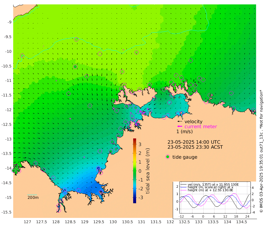 38cm/s -100T +4cm/s rms + 6cm/s 51T. Darwin_C1 52m 51cm/s -92T +4cm/s rms + 7cm/s -161T. Darwin_CW1 22m 24cm/s -106T +4cm/s rms + 8cm/s 61T. Darwin_CW2 34m 40cm/s -143T +3cm/s rms + 9cm/s 98T. Darwin_CW3 22m 58cm/s -89T +5cm/s rms + 7cm/s 88T. Darwin_C3 56m 14cm/s -115T +2cm/s rms + 9cm/s -126T. Darwin_CTbW 22m 12cm/s 161T +9cm/s rms + 2cm/s -110T. NWSLYN 196m 29cm/s 103T +1cm/s rms + 1cm/s -47T. DARBGF 30m 7cm/s 114T +7cm/s rms + 2cm/s -137T. ITFTIS 464m 16cm/s 156T +9cm/s rms + 1cm/s 74T. ITFMHB 146m 23cm/s 133T +4cm/s rms + 1cm/s -134T. ITFJBG 61m 31cm/s 129T +6cm/s rms + 4cm/s 121T. ITFFTB 108m 34cm/s 129T +4cm/s rms + 3cm/s 80T. NRSDAR 19m -20cm Carronade Island -18cm Guy Point -20cm Napier Broome Bay -82cm Lesueur Island -130cm Reveley Island -70cm Rocky Island -200cm Cape Domett -188cm Lacrosse Island -237cm Adolphus Island -236cm Pender Point -253cm Wyndham 7cm The Boxers -1cm Unnamed Shoal 44cm Loxton Shoal -193cm Pelican Island 24cm Calder Shoal 48cm Evans Shoal -292cm Quoin Island -160cm Port Keats -155cm Jones Point -248cm Catfish Island -82cm Cape Scott Offshore -45cm Cape Ford -87cm Anson Bay 40cm Goodrich Bank -67cm Peron Island North -62cm Point Jenny -62cm Native Point -73cm Fish Reef -81cm Tapa Bay 5cm Point Fawcett (Offshore) -103cm Burge Point -60cm Munkunuwa -57cm Beagle A -89cm Parsons Bank -105cm Fenton Patches 35cm Lynedoch Bank -103cm Hancox Shoal Area -113cm Nightcliff -119cm Darwin -92cm Charles Point Patches -119cm Glyde Point -140cm Chambers Bay -149cm Point Stuart -117cm Cape Hotham -130cm Christine Reef -167cm West Alligator Head -188cm East Field Island -108cm Two Hills Bay -38cm Newby Shoal -116cm Camp Point -76cm Medina Inlet South 13cm South Barlow Point 26cm St. Asaph Bay 43cm Cape Van Dieman 37cm Snake Bay 36cm Cache Point 41cm Echo Shoal 16cm Point Jahleel (Off) -22cm Cape Don 20cm Port Essington 22cm Smith Point - West 21cm NW Peacock Island 31cm North Of Jones Shoal 10cm Peacock Island 2cm Point David 20cm D'urville Point 18cm Money Shoal -1cm Copeland Island -2cm Cape Cockburn 5cm One Tree Point -3cm Hogmany Shoal -5cm New Year Island - West -4cm Grant Island -26cm Aurari Bay -36cm Cuthbert Point -16cm North Goulburn Island -51cm Paxie Shoal -69cm Entrance Island -95cm Yabooma Island