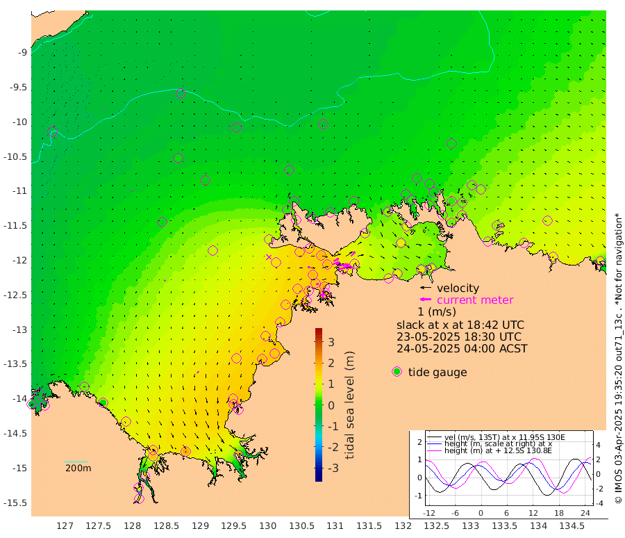 102cm/s 78T +4cm/s rms + 6cm/s 51T. Darwin_C1 52m 81cm/s 91T +4cm/s rms + 7cm/s -161T. Darwin_CW1 22m 70cm/s 74T +4cm/s rms + 8cm/s 61T. Darwin_CW2 34m 57cm/s 43T +3cm/s rms + 9cm/s 98T. Darwin_CW3 22m 109cm/s 89T +5cm/s rms + 7cm/s 88T. Darwin_C3 56m 53cm/s 65T +2cm/s rms + 9cm/s -126T. Darwin_CTbW 22m 3cm/s 11T +9cm/s rms + 2cm/s -110T. NWSLYN 196m 25cm/s 80T +1cm/s rms + 1cm/s -47T. DARBGF 30m 5cm/s -104T +7cm/s rms + 2cm/s -137T. ITFTIS 464m 8cm/s -143T +9cm/s rms + 1cm/s 74T. ITFMHB 146m 15cm/s -168T +4cm/s rms + 1cm/s -134T. ITFJBG 61m 7cm/s -152T +6cm/s rms + 4cm/s 121T. ITFFTB 108m 20cm/s 107T +4cm/s rms + 3cm/s 80T. NRSDAR 19m -39cm Carronade Island -35cm Guy Point -50cm Napier Broome Bay 38cm Lesueur Island 117cm Reveley Island 18cm Rocky Island 167cm Cape Domett 157cm Lacrosse Island 166cm Adolphus Island 103cm Pender Point 90cm Wyndham 7cm The Boxers 13cm Unnamed Shoal -49cm Loxton Shoal 197cm Pelican Island -1cm Calder Shoal -27cm Evans Shoal 184cm Quoin Island 186cm Port Keats 186cm Jones Point 155cm Catfish Island 146cm Cape Scott Offshore 171cm Cape Ford 165cm Anson Bay -10cm Goodrich Bank 141cm Peron Island North 153cm Point Jenny 149cm Native Point 153cm Fish Reef 170cm Tapa Bay 70cm Point Fawcett (Offshore) 176cm Burge Point 148cm Munkunuwa 130cm Beagle A 169cm Parsons Bank 175cm Fenton Patches -24cm Lynedoch Bank 178cm Hancox Shoal Area 188cm Nightcliff 183cm Darwin 168cm Charles Point Patches 139cm Glyde Point 124cm Chambers Bay 107cm Point Stuart 120cm Cape Hotham 114cm Christine Reef 114cm West Alligator Head 104cm East Field Island 95cm Two Hills Bay 68cm Newby Shoal 98cm Camp Point 153cm Medina Inlet South 48cm South Barlow Point 30cm St. Asaph Bay -6cm Cape Van Dieman -8cm Snake Bay 1cm Cache Point -56cm Echo Shoal 15cm Point Jahleel (Off) 53cm Cape Don 20cm Port Essington 24cm Smith Point - West 20cm NW Peacock Island 4cm North Of Jones Shoal 3cm Peacock Island 37cm Point David 26cm D'urville Point 15cm Money Shoal 41cm Copeland Island 51cm Cape Cockburn 32cm One Tree Point 54cm Hogmany Shoal 34cm New Year Island - West 39cm Grant Island 56cm Aurari Bay 73cm Cuthbert Point 55cm North Goulburn Island 78cm Paxie Shoal 101cm Entrance Island 125cm Yabooma Island