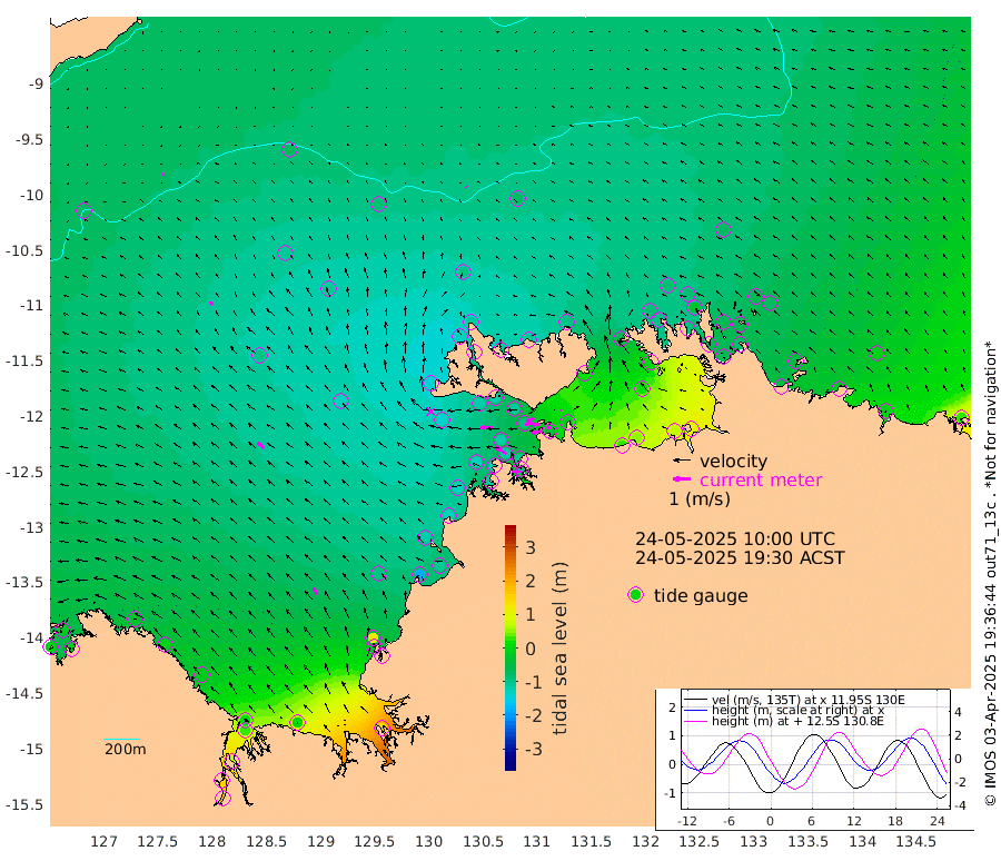 61cm/s -102T +4cm/s rms + 6cm/s 51T. Darwin_C1 52m 20cm/s -89T +4cm/s rms + 7cm/s -161T. Darwin_CW1 22m 43cm/s -105T +4cm/s rms + 8cm/s 61T. Darwin_CW2 34m 5cm/s -84T +3cm/s rms + 9cm/s 98T. Darwin_CW3 22m 40cm/s -94T +5cm/s rms + 7cm/s 88T. Darwin_C3 56m 46cm/s -116T +2cm/s rms + 9cm/s -126T. Darwin_CTbW 22m 8cm/s -37T +9cm/s rms + 2cm/s -110T. NWSLYN 196m 69cm/s -88T +1cm/s rms + 1cm/s -47T. DARBGF 30m 6cm/s -99T +7cm/s rms + 2cm/s -137T. ITFTIS 464m 22cm/s -24T +9cm/s rms + 1cm/s 74T. ITFMHB 146m 43cm/s -30T +4cm/s rms + 1cm/s -134T. ITFJBG 61m 46cm/s -50T +6cm/s rms + 4cm/s 121T. ITFFTB 108m 72cm/s -56T +4cm/s rms + 3cm/s 80T. NRSDAR 19m -14cm Carronade Island -10cm Guy Point -6cm Napier Broome Bay -32cm Lesueur Island -16cm Reveley Island -8cm Rocky Island 27cm Cape Domett 10cm Lacrosse Island 76cm Adolphus Island 157cm Pender Point 182cm Wyndham -97cm The Boxers -102cm Unnamed Shoal -77cm Loxton Shoal 8cm Pelican Island -109cm Calder Shoal -89cm Evans Shoal 141cm Quoin Island -46cm Port Keats -42cm Jones Point 118cm Catfish Island -97cm Cape Scott Offshore -191cm Cape Ford -107cm Anson Bay -99cm Goodrich Bank -120cm Peron Island North -133cm Point Jenny -133cm Native Point -131cm Fish Reef -125cm Tapa Bay -141cm Point Fawcett (Offshore) -115cm Burge Point -123cm Munkunuwa -142cm Beagle A -106cm Parsons Bank -120cm Fenton Patches -78cm Lynedoch Bank -92cm Hancox Shoal Area -105cm Nightcliff -96cm Darwin -114cm Charles Point Patches -37cm Glyde Point 29cm Chambers Bay 52cm Point Stuart -15cm Cape Hotham 22cm Christine Reef 68cm West Alligator Head 103cm East Field Island 5cm Two Hills Bay -129cm Newby Shoal 12cm Camp Point -119cm Medina Inlet South -131cm South Barlow Point -126cm St. Asaph Bay -106cm Cape Van Dieman -104cm Snake Bay -106cm Cache Point -68cm Echo Shoal -91cm Point Jahleel (Off) -67cm Cape Don -87cm Port Essington -96cm Smith Point - West -88cm NW Peacock Island -89cm North Of Jones Shoal -31cm Peacock Island -64cm Point David -92cm D'urville Point -72cm Money Shoal -60cm Copeland Island -83cm Cape Cockburn -66cm One Tree Point -73cm Hogmany Shoal -65cm New Year Island - West -64cm Grant Island -44cm Aurari Bay -33cm Cuthbert Point -53cm North Goulburn Island -5cm Paxie Shoal -5cm Entrance Island 30cm Yabooma Island