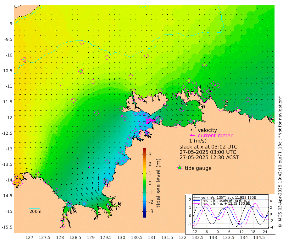 164cm/s -102T +4cm/s rms + 6cm/s 51T. Darwin_C1 52m 134cm/s -90T +4cm/s rms + 7cm/s -161T. Darwin_CW1 22m 90cm/s -107T +4cm/s rms + 8cm/s 61T. Darwin_CW2 34m 73cm/s -133T +3cm/s rms + 9cm/s 98T. Darwin_CW3 22m 132cm/s -91T +5cm/s rms + 7cm/s 88T. Darwin_C3 56m 91cm/s -115T +2cm/s rms + 9cm/s -126T. Darwin_CTbW 22m 8cm/s 144T +9cm/s rms + 2cm/s -110T. NWSLYN 196m 26cm/s -99T +1cm/s rms + 1cm/s -47T. DARBGF 30m 10cm/s 47T +7cm/s rms + 2cm/s -137T. ITFTIS 464m 13cm/s 51T +9cm/s rms + 1cm/s 74T. ITFMHB 146m 21cm/s 9T +4cm/s rms + 1cm/s -134T. ITFJBG 61m 15cm/s 49T +6cm/s rms + 4cm/s 121T. ITFFTB 108m 23cm/s -81T +4cm/s rms + 3cm/s 80T. NRSDAR 19m 158cm Carronade Island 159cm Guy Point 164cm Napier Broome Bay 63cm Lesueur Island -77cm Reveley Island -24cm Rocky Island -136cm Cape Domett -114cm Lacrosse Island -125cm Adolphus Island -61cm Pender Point -24cm Wyndham 65cm The Boxers 37cm Unnamed Shoal 120cm Loxton Shoal -173cm Pelican Island 71cm Calder Shoal 88cm Evans Shoal -164cm Quoin Island -167cm Port Keats -177cm Jones Point -76cm Catfish Island -113cm Cape Scott Offshore -124cm Cape Ford -138cm Anson Bay 68cm Goodrich Bank -113cm Peron Island North -115cm Point Jenny -113cm Native Point -126cm Fish Reef -141cm Tapa Bay -18cm Point Fawcett (Offshore) -155cm Burge Point -150cm Munkunuwa -80cm Beagle A -164cm Parsons Bank -142cm Fenton Patches 79cm Lynedoch Bank -156cm Hancox Shoal Area -162cm Nightcliff -170cm Darwin -137cm Charles Point Patches -111cm Glyde Point -76cm Chambers Bay -76cm Point Stuart -91cm Cape Hotham -67cm Christine Reef -84cm West Alligator Head -64cm East Field Island -62cm Two Hills Bay 5cm Newby Shoal -56cm Camp Point -136cm Medina Inlet South -8cm South Barlow Point 23cm St. Asaph Bay 62cm Cape Van Dieman 58cm Snake Bay 63cm Cache Point 143cm Echo Shoal 39cm Point Jahleel (Off) -10cm Cape Don 29cm Port Essington 28cm Smith Point - West 33cm NW Peacock Island 53cm North Of Jones Shoal 16cm Peacock Island 3cm Point David 24cm D'urville Point 41cm Money Shoal -2cm Copeland Island 2cm Cape Cockburn 12cm One Tree Point 5cm Hogmany Shoal 15cm New Year Island - West 6cm Grant Island -19cm Aurari Bay -33cm Cuthbert Point -14cm North Goulburn Island -44cm Paxie Shoal -63cm Entrance Island -87cm Yabooma Island
