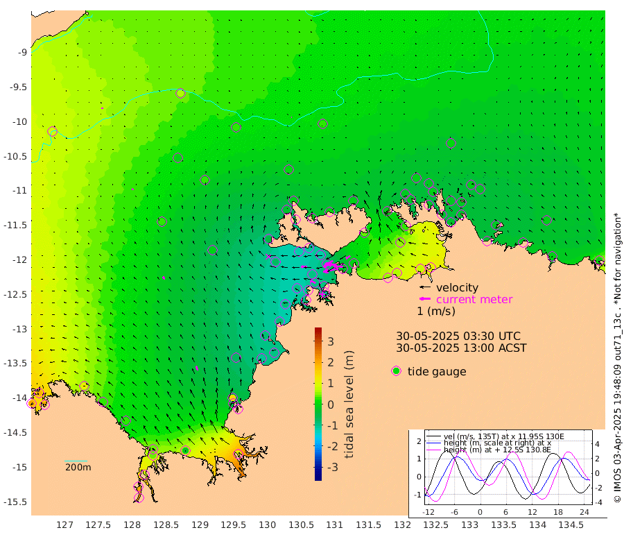 144cm/s -102T +4cm/s rms + 6cm/s 51T. Darwin_C1 52m 86cm/s -89T +4cm/s rms + 7cm/s -161T. Darwin_CW1 22m 80cm/s -109T +4cm/s rms + 8cm/s 61T. Darwin_CW2 34m 46cm/s -120T +3cm/s rms + 9cm/s 98T. Darwin_CW3 22m 82cm/s -92T +5cm/s rms + 7cm/s 88T. Darwin_C3 56m 82cm/s -116T +2cm/s rms + 9cm/s -126T. Darwin_CTbW 22m 4cm/s 112T +9cm/s rms + 2cm/s -110T. NWSLYN 196m 58cm/s -89T +1cm/s rms + 1cm/s -47T. DARBGF 30m 7cm/s 5T +7cm/s rms + 2cm/s -137T. ITFTIS 464m 16cm/s 10T +9cm/s rms + 1cm/s 74T. ITFMHB 146m 42cm/s -21T +4cm/s rms + 1cm/s -134T. ITFJBG 61m 31cm/s -29T +6cm/s rms + 4cm/s 121T. ITFFTB 108m 52cm/s -63T +4cm/s rms + 3cm/s 80T. NRSDAR 19m 190cm Carronade Island 198cm Guy Point 202cm Napier Broome Bay 114cm Lesueur Island 30cm Reveley Island 24cm Rocky Island 35cm Cape Domett 38cm Lacrosse Island 71cm Adolphus Island 180cm Pender Point 229cm Wyndham 33cm The Boxers -5cm Unnamed Shoal 65cm Loxton Shoal -14cm Pelican Island 26cm Calder Shoal 31cm Evans Shoal 88cm Quoin Island -51cm Port Keats -65cm Jones Point 140cm Catfish Island -68cm Cape Scott Offshore -110cm Cape Ford -94cm Anson Bay 7cm Goodrich Bank -90cm Peron Island North -87cm Point Jenny -87cm Native Point -101cm Fish Reef -101cm Tapa Bay -52cm Point Fawcett (Offshore) -98cm Burge Point -123cm Munkunuwa -75cm Beagle A -115cm Parsons Bank -95cm Fenton Patches 23cm Lynedoch Bank -94cm Hancox Shoal Area -99cm Nightcliff -106cm Darwin -98cm Charles Point Patches -31cm Glyde Point 50cm Chambers Bay 57cm Point Stuart -5cm Cape Hotham 50cm Christine Reef 68cm West Alligator Head 109cm East Field Island 25cm Two Hills Bay -5cm Newby Shoal 35cm Camp Point -105cm Medina Inlet South -55cm South Barlow Point -29cm St. Asaph Bay -2cm Cape Van Dieman -8cm Snake Bay 5cm Cache Point 89cm Echo Shoal -1cm Point Jahleel (Off) -9cm Cape Don -14cm Port Essington -19cm Smith Point - West -13cm NW Peacock Island 0cm North Of Jones Shoal -2cm Peacock Island -23cm Point David -23cm D'urville Point 0cm Money Shoal -25cm Copeland Island -27cm Cape Cockburn -17cm One Tree Point -13cm Hogmany Shoal -10cm New Year Island - West -16cm Grant Island -27cm Aurari Bay -19cm Cuthbert Point -20cm North Goulburn Island -3cm Paxie Shoal -9cm Entrance Island -3cm Yabooma Island