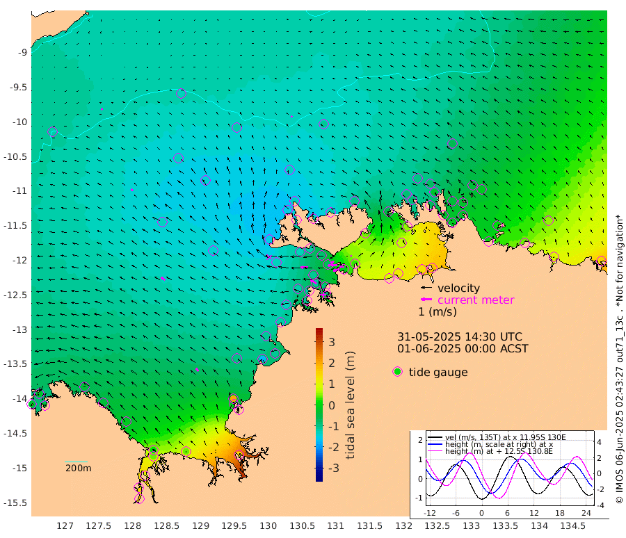 56cm/s -104T +4cm/s rms + 6cm/s 51T. Darwin_C1 52m 43cm/s -85T +4cm/s rms + 7cm/s -161T. Darwin_CW1 22m 46cm/s -106T +4cm/s rms + 8cm/s 61T. Darwin_CW2 34m 8cm/s -37T +3cm/s rms + 9cm/s 98T. Darwin_CW3 22m 57cm/s -93T +5cm/s rms + 7cm/s 88T. Darwin_C3 56m 34cm/s -116T +2cm/s rms + 9cm/s -126T. Darwin_CTbW 22m 11cm/s -39T +9cm/s rms + 2cm/s -110T. NWSLYN 196m 69cm/s -89T +1cm/s rms + 1cm/s -47T. DARBGF 30m 13cm/s -121T +7cm/s rms + 2cm/s -137T. ITFTIS 464m 19cm/s -45T +9cm/s rms + 1cm/s 74T. ITFMHB 146m 35cm/s -36T +4cm/s rms + 1cm/s -134T. ITFJBG 61m 45cm/s -59T +6cm/s rms + 4cm/s 121T. ITFFTB 108m 71cm/s -57T +4cm/s rms + 3cm/s 80T. NRSDAR 19m -33cm Carronade Island -34cm Guy Point -43cm Napier Broome Bay -45cm Lesueur Island -14cm Reveley Island -39cm Rocky Island 34cm Cape Domett 17cm Lacrosse Island 95cm Adolphus Island 146cm Pender Point 181cm Wyndham -130cm The Boxers -130cm Unnamed Shoal -132cm Loxton Shoal 35cm Pelican Island -146cm Calder Shoal -121cm Evans Shoal 144cm Quoin Island -38cm Port Keats -17cm Jones Point 196cm Catfish Island -99cm Cape Scott Offshore -172cm Cape Ford -108cm Anson Bay -125cm Goodrich Bank -108cm Peron Island North -121cm Point Jenny -126cm Native Point -115cm Fish Reef -117cm Tapa Bay -151cm Point Fawcett (Offshore) -104cm Burge Point -127cm Munkunuwa -132cm Beagle A -86cm Parsons Bank -102cm Fenton Patches -109cm Lynedoch Bank -69cm Hancox Shoal Area -92cm Nightcliff -87cm Darwin -112cm Charles Point Patches -8cm Glyde Point 89cm Chambers Bay 113cm Point Stuart 28cm Cape Hotham 71cm Christine Reef 134cm West Alligator Head 173cm East Field Island 53cm Two Hills Bay -145cm Newby Shoal 39cm Camp Point -122cm Medina Inlet South -151cm South Barlow Point -150cm St. Asaph Bay -129cm Cape Van Dieman -132cm Snake Bay -118cm Cache Point -114cm Echo Shoal -95cm Point Jahleel (Off) -51cm Cape Don -80cm Port Essington -82cm Smith Point - West -72cm NW Peacock Island -92cm North Of Jones Shoal -29cm Peacock Island -31cm Point David -71cm D'urville Point -61cm Money Shoal -20cm Copeland Island -30cm Cape Cockburn -40cm One Tree Point -18cm Hogmany Shoal -36cm New Year Island - West -29cm Grant Island 9cm Aurari Bay 40cm Cuthbert Point 3cm North Goulburn Island 52cm Paxie Shoal 91cm Entrance Island 151cm Yabooma Island