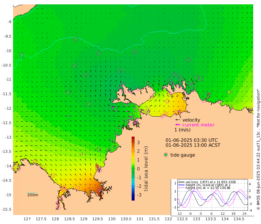 21cm/s -103T +4cm/s rms + 6cm/s 51T. Darwin_C1 52m 4cm/s -79T +4cm/s rms + 7cm/s -161T. Darwin_CW1 22m 10cm/s -120T +4cm/s rms + 8cm/s 61T. Darwin_CW2 34m 16cm/s 16T +3cm/s rms + 9cm/s 98T. Darwin_CW3 22m 11cm/s 105T +5cm/s rms + 7cm/s 88T. Darwin_C3 56m 11cm/s -124T +2cm/s rms + 9cm/s -126T. Darwin_CTbW 22m 3cm/s 6T +9cm/s rms + 2cm/s -110T. NWSLYN 196m 41cm/s -84T +1cm/s rms + 1cm/s -47T. DARBGF 30m 5cm/s -47T +7cm/s rms + 2cm/s -137T. ITFTIS 464m 11cm/s -21T +9cm/s rms + 1cm/s 74T. ITFMHB 146m 34cm/s -32T +4cm/s rms + 1cm/s -134T. ITFJBG 61m 32cm/s -47T +6cm/s rms + 4cm/s 121T. ITFFTB 108m 43cm/s -54T +4cm/s rms + 3cm/s 80T. NRSDAR 19m 124cm Carronade Island 128cm Guy Point 136cm Napier Broome Bay 114cm Lesueur Island 116cm Reveley Island 86cm Rocky Island 169cm Cape Domett 156cm Lacrosse Island 199cm Adolphus Island 275cm Pender Point 305cm Wyndham 17cm The Boxers -2cm Unnamed Shoal 5cm Loxton Shoal 137cm Pelican Island -1cm Calder Shoal -13cm Evans Shoal 245cm Quoin Island 90cm Port Keats 85cm Jones Point 275cm Catfish Island 28cm Cape Scott Offshore 0cm Cape Ford 15cm Anson Bay -25cm Goodrich Bank 9cm Peron Island North 8cm Point Jenny 7cm Native Point 8cm Fish Reef 12cm Tapa Bay -21cm Point Fawcett (Offshore) 27cm Burge Point -9cm Munkunuwa 2cm Beagle A 11cm Parsons Bank 23cm Fenton Patches -16cm Lynedoch Bank 25cm Hancox Shoal Area 24cm Nightcliff 29cm Darwin 15cm Charles Point Patches 71cm Glyde Point 133cm Chambers Bay 146cm Point Stuart 84cm Cape Hotham 123cm Christine Reef 167cm West Alligator Head 198cm East Field Island 99cm Two Hills Bay 22cm Newby Shoal 99cm Camp Point 6cm Medina Inlet South -37cm South Barlow Point -32cm St. Asaph Bay -31cm Cape Van Dieman -33cm Snake Bay -20cm Cache Point 14cm Echo Shoal -11cm Point Jahleel (Off) 16cm Cape Don -20cm Port Essington -24cm Smith Point - West -22cm NW Peacock Island -25cm North Of Jones Shoal -9cm Peacock Island -16cm Point David -27cm D'urville Point -18cm Money Shoal -16cm Copeland Island -15cm Cape Cockburn -14cm One Tree Point -1cm Hogmany Shoal -7cm New Year Island - West -7cm Grant Island -4cm Aurari Bay 16cm Cuthbert Point 2cm North Goulburn Island 35cm Paxie Shoal 44cm Entrance Island 59cm Yabooma Island