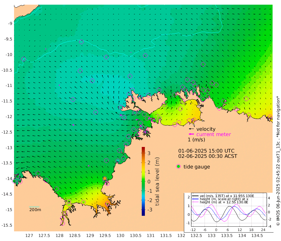 31cm/s -105T +4cm/s rms + 6cm/s 51T. Darwin_C1 52m 31cm/s -84T +4cm/s rms + 7cm/s -161T. Darwin_CW1 22m 28cm/s -106T +4cm/s rms + 8cm/s 61T. Darwin_CW2 34m 9cm/s 6T +3cm/s rms + 9cm/s 98T. Darwin_CW3 22m 34cm/s -93T +5cm/s rms + 7cm/s 88T. Darwin_C3 56m 19cm/s -115T +2cm/s rms + 9cm/s -126T. Darwin_CTbW 22m 9cm/s -37T +9cm/s rms + 2cm/s -110T. NWSLYN 196m 52cm/s -88T +1cm/s rms + 1cm/s -47T. DARBGF 30m 12cm/s -122T +7cm/s rms + 2cm/s -137T. ITFTIS 464m 15cm/s -51T +9cm/s rms + 1cm/s 74T. ITFMHB 146m 25cm/s -39T +4cm/s rms + 1cm/s -134T. ITFJBG 61m 35cm/s -61T +6cm/s rms + 4cm/s 121T. ITFFTB 108m 56cm/s -56T +4cm/s rms + 3cm/s 80T. NRSDAR 19m -33cm Carronade Island -34cm Guy Point -42cm Napier Broome Bay -33cm Lesueur Island 1cm Reveley Island -36cm Rocky Island 48cm Cape Domett 34cm Lacrosse Island 96cm Adolphus Island 128cm Pender Point 156cm Wyndham -107cm The Boxers -105cm Unnamed Shoal -116cm Loxton Shoal 53cm Pelican Island -120cm Calder Shoal -101cm Evans Shoal 142cm Quoin Island -9cm Port Keats 11cm Jones Point 202cm Catfish Island -60cm Cape Scott Offshore -119cm Cape Ford -64cm Anson Bay -104cm Goodrich Bank -65cm Peron Island North -78cm Point Jenny -84cm Native Point -70cm Fish Reef -73cm Tapa Bay -110cm Point Fawcett (Offshore) -61cm Burge Point -84cm Munkunuwa -91cm Beagle A -47cm Parsons Bank -62cm Fenton Patches -92cm Lynedoch Bank -33cm Hancox Shoal Area -51cm Nightcliff -46cm Darwin -69cm Charles Point Patches 14cm Glyde Point 94cm Chambers Bay 114cm Point Stuart 44cm Cape Hotham 74cm Christine Reef 132cm West Alligator Head 161cm East Field Island 62cm Two Hills Bay -111cm Newby Shoal 46cm Camp Point -78cm Medina Inlet South -116cm South Barlow Point -118cm St. Asaph Bay -106cm Cape Van Dieman -108cm Snake Bay -94cm Cache Point -101cm Echo Shoal -74cm Point Jahleel (Off) -30cm Cape Don -59cm Port Essington -60cm Smith Point - West -53cm NW Peacock Island -70cm North Of Jones Shoal -21cm Peacock Island -14cm Point David -50cm D'urville Point -44cm Money Shoal -5cm Copeland Island -7cm Cape Cockburn -21cm One Tree Point 0cm Hogmany Shoal -19cm New Year Island - West -13cm Grant Island 22cm Aurari Bay 51cm Cuthbert Point 18cm North Goulburn Island 62cm Paxie Shoal 98cm Entrance Island 153cm Yabooma Island