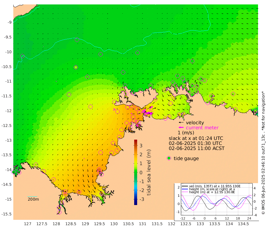 178cm/s 78T +4cm/s rms + 6cm/s 51T. Darwin_C1 52m 117cm/s 93T +4cm/s rms + 7cm/s -161T. Darwin_CW1 22m 96cm/s 71T +4cm/s rms + 8cm/s 61T. Darwin_CW2 34m 93cm/s 48T +3cm/s rms + 9cm/s 98T. Darwin_CW3 22m 143cm/s 89T +5cm/s rms + 7cm/s 88T. Darwin_C3 56m 93cm/s 65T +2cm/s rms + 9cm/s -126T. Darwin_CTbW 22m 3cm/s -20T +9cm/s rms + 2cm/s -110T. NWSLYN 196m 24cm/s 74T +1cm/s rms + 1cm/s -47T. DARBGF 30m 3cm/s -108T +7cm/s rms + 2cm/s -137T. ITFTIS 464m 9cm/s -145T +9cm/s rms + 1cm/s 74T. ITFMHB 146m 12cm/s -151T +4cm/s rms + 1cm/s -134T. ITFJBG 61m 8cm/s -126T +6cm/s rms + 4cm/s 121T. ITFFTB 108m 12cm/s 85T +4cm/s rms + 3cm/s 80T. NRSDAR 19m 1cm Carronade Island -2cm Guy Point 6cm Napier Broome Bay 76cm Lesueur Island 154cm Reveley Island 130cm Rocky Island 215cm Cape Domett 197cm Lacrosse Island 215cm Adolphus Island 174cm Pender Point 158cm Wyndham 48cm The Boxers 52cm Unnamed Shoal -4cm Loxton Shoal 223cm Pelican Island 33cm Calder Shoal 4cm Evans Shoal 253cm Quoin Island 220cm Port Keats 209cm Jones Point 252cm Catfish Island 164cm Cape Scott Offshore 155cm Cape Ford 176cm Anson Bay 11cm Goodrich Bank 163cm Peron Island North 156cm Point Jenny 156cm Native Point 172cm Fish Reef 174cm Tapa Bay 90cm Point Fawcett (Offshore) 186cm Burge Point 167cm Munkunuwa 139cm Beagle A 181cm Parsons Bank 181cm Fenton Patches 4cm Lynedoch Bank 176cm Hancox Shoal Area 187cm Nightcliff 201cm Darwin 180cm Charles Point Patches 153cm Glyde Point 129cm Chambers Bay 129cm Point Stuart 133cm Cape Hotham 118cm Christine Reef 141cm West Alligator Head 129cm East Field Island 118cm Two Hills Bay 105cm Newby Shoal 105cm Camp Point 175cm Medina Inlet South 71cm South Barlow Point 49cm St. Asaph Bay 13cm Cape Van Dieman 19cm Snake Bay 19cm Cache Point -20cm Echo Shoal 33cm Point Jahleel (Off) 69cm Cape Don 31cm Port Essington 34cm Smith Point - West 26cm NW Peacock Island 17cm North Of Jones Shoal 6cm Peacock Island 27cm Point David 30cm D'urville Point 12cm Money Shoal 27cm Copeland Island 43cm Cape Cockburn 31cm One Tree Point 38cm Hogmany Shoal 32cm New Year Island - West 34cm Grant Island 42cm Aurari Bay 52cm Cuthbert Point 44cm North Goulburn Island 50cm Paxie Shoal 59cm Entrance Island 54cm Yabooma Island