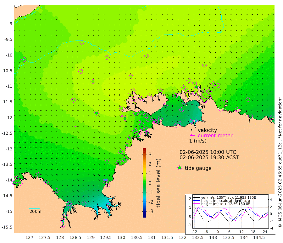 28cm/s 81T +4cm/s rms + 6cm/s 51T. Darwin_C1 52m 30cm/s 81T +4cm/s rms + 7cm/s -161T. Darwin_CW1 22m 2cm/s 105T +4cm/s rms + 8cm/s 61T. Darwin_CW2 34m 14cm/s -160T +3cm/s rms + 9cm/s 98T. Darwin_CW3 22m 4cm/s -76T +5cm/s rms + 7cm/s 88T. Darwin_C3 56m 24cm/s 61T +2cm/s rms + 9cm/s -126T. Darwin_CTbW 22m 11cm/s 141T +9cm/s rms + 2cm/s -110T. NWSLYN 196m 27cm/s 97T +1cm/s rms + 1cm/s -47T. DARBGF 30m 8cm/s 36T +7cm/s rms + 2cm/s -137T. ITFTIS 464m 7cm/s 62T +9cm/s rms + 1cm/s 74T. ITFMHB 146m 18cm/s 131T +4cm/s rms + 1cm/s -134T. ITFJBG 61m 18cm/s 111T +6cm/s rms + 4cm/s 121T. ITFFTB 108m 27cm/s 125T +4cm/s rms + 3cm/s 80T. NRSDAR 19m -34cm Carronade Island -31cm Guy Point -30cm Napier Broome Bay -31cm Lesueur Island -54cm Reveley Island -60cm Rocky Island -90cm Cape Domett -82cm Lacrosse Island -123cm Adolphus Island -144cm Pender Point -165cm Wyndham 34cm The Boxers 53cm Unnamed Shoal 47cm Loxton Shoal -79cm Pelican Island 42cm Calder Shoal 46cm Evans Shoal -145cm Quoin Island -39cm Port Keats -46cm Jones Point -186cm Catfish Island 6cm Cape Scott Offshore 22cm Cape Ford 15cm Anson Bay 54cm Goodrich Bank 12cm Peron Island North 12cm Point Jenny 15cm Native Point 5cm Fish Reef 13cm Tapa Bay 45cm Point Fawcett (Offshore) -3cm Burge Point 20cm Munkunuwa 9cm Beagle A 6cm Parsons Bank -10cm Fenton Patches 50cm Lynedoch Bank -2cm Hancox Shoal Area -3cm Nightcliff 1cm Darwin 18cm Charles Point Patches -35cm Glyde Point -86cm Chambers Bay -96cm Point Stuart -48cm Cape Hotham -77cm Christine Reef -113cm West Alligator Head -136cm East Field Island -58cm Two Hills Bay 19cm Newby Shoal -48cm Camp Point 17cm Medina Inlet South 55cm South Barlow Point 54cm St. Asaph Bay 58cm Cape Van Dieman 63cm Snake Bay 48cm Cache Point 31cm Echo Shoal 37cm Point Jahleel (Off) 14cm Cape Don 44cm Port Essington 41cm Smith Point - West 42cm NW Peacock Island 50cm North Of Jones Shoal 18cm Peacock Island 42cm Point David 43cm D'urville Point 47cm Money Shoal 38cm Copeland Island 42cm Cape Cockburn 41cm One Tree Point 40cm Hogmany Shoal 37cm New Year Island - West 37cm Grant Island 22cm Aurari Bay 8cm Cuthbert Point 26cm North Goulburn Island 12cm Paxie Shoal -18cm Entrance Island -36cm Yabooma Island