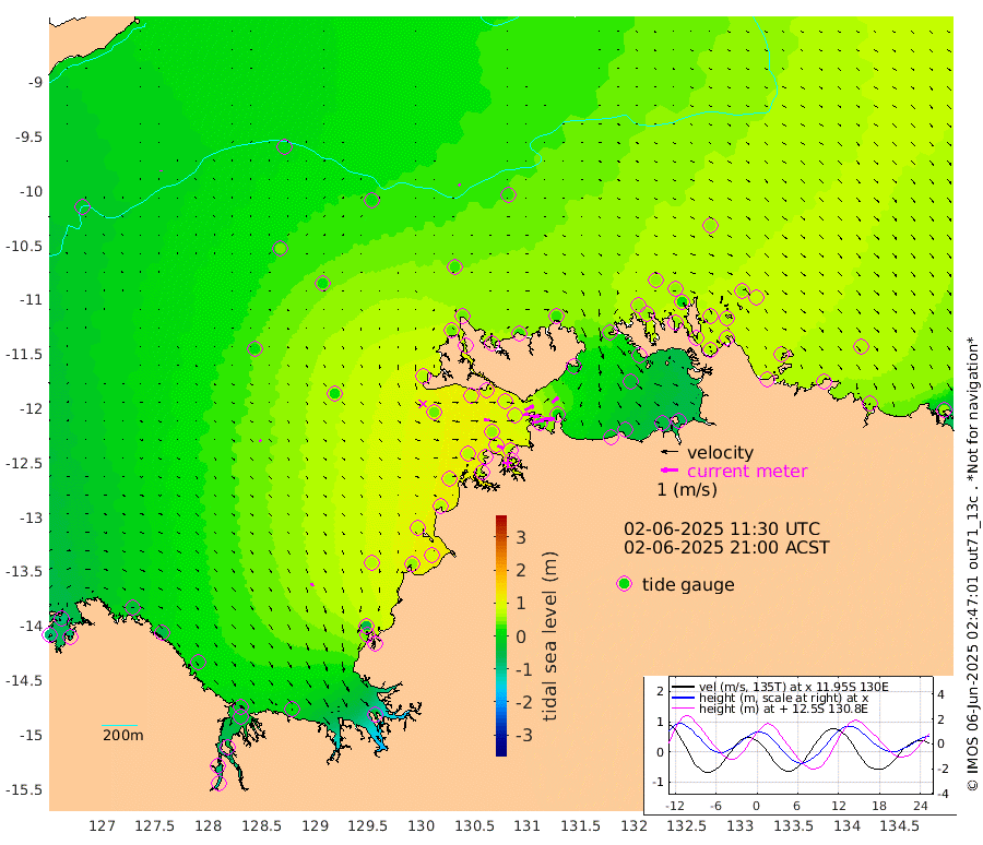 111cm/s 78T +4cm/s rms + 6cm/s 51T. Darwin_C1 52m 78cm/s 87T +4cm/s rms + 7cm/s -161T. Darwin_CW1 22m 36cm/s 77T +4cm/s rms + 8cm/s 61T. Darwin_CW2 34m 46cm/s 51T +3cm/s rms + 9cm/s 98T. Darwin_CW3 22m 54cm/s 88T +5cm/s rms + 7cm/s 88T. Darwin_C3 56m 59cm/s 64T +2cm/s rms + 9cm/s -126T. Darwin_CTbW 22m 9cm/s 137T +9cm/s rms + 2cm/s -110T. NWSLYN 196m 32cm/s 92T +1cm/s rms + 1cm/s -47T. DARBGF 30m 3cm/s 3T +7cm/s rms + 2cm/s -137T. ITFTIS 464m 1cm/s 87T +9cm/s rms + 1cm/s 74T. ITFMHB 146m 17cm/s 159T +4cm/s rms + 1cm/s -134T. ITFJBG 61m 12cm/s 137T +6cm/s rms + 4cm/s 121T. ITFFTB 108m 30cm/s 114T +4cm/s rms + 3cm/s 80T. NRSDAR 19m -81cm Carronade Island -80cm Guy Point -81cm Napier Broome Bay -38cm Lesueur Island -11cm Reveley Island -46cm Rocky Island -14cm Cape Domett -16cm Lacrosse Island -38cm Adolphus Island -89cm Pender Point -115cm Wyndham 14cm The Boxers 42cm Unnamed Shoal 1cm Loxton Shoal 14cm Pelican Island 15cm Calder Shoal 16cm Evans Shoal -34cm Quoin Island 41cm Port Keats 37cm Jones Point -52cm Catfish Island 60cm Cape Scott Offshore 49cm Cape Ford 79cm Anson Bay 29cm Goodrich Bank 70cm Peron Island North 59cm Point Jenny 59cm Native Point 62cm Fish Reef 70cm Tapa Bay 57cm Point Fawcett (Offshore) 58cm Burge Point 74cm Munkunuwa 42cm Beagle A 77cm Parsons Bank 47cm Fenton Patches 23cm Lynedoch Bank 68cm Hancox Shoal Area 66cm Nightcliff 77cm Darwin 79cm Charles Point Patches 28cm Glyde Point -20cm Chambers Bay -28cm Point Stuart 14cm Cape Hotham -23cm Christine Reef -38cm West Alligator Head -66cm East Field Island 0cm Two Hills Bay 21cm Newby Shoal -4cm Camp Point 74cm Medina Inlet South 59cm South Barlow Point 45cm St. Asaph Bay 35cm Cape Van Dieman 44cm Snake Bay 31cm Cache Point -21cm Echo Shoal 32cm Point Jahleel (Off) 37cm Cape Don 48cm Port Essington 46cm Smith Point - West 47cm NW Peacock Island 46cm North Of Jones Shoal 18cm Peacock Island 63cm Point David 52cm D'urville Point 48cm Money Shoal 62cm Copeland Island 76cm Cape Cockburn 61cm One Tree Point 69cm Hogmany Shoal 55cm New Year Island - West 59cm Grant Island 62cm Aurari Bay 59cm Cuthbert Point 64cm North Goulburn Island 63cm Paxie Shoal 46cm Entrance Island 46cm Yabooma Island