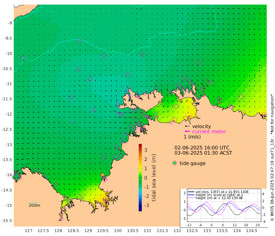 47cm/s -104T +4cm/s rms + 6cm/s 51T. Darwin_C1 52m 41cm/s -87T +4cm/s rms + 7cm/s -161T. Darwin_CW1 22m 29cm/s -109T +4cm/s rms + 8cm/s 61T. Darwin_CW2 34m 9cm/s -82T +3cm/s rms + 9cm/s 98T. Darwin_CW3 22m 34cm/s -93T +5cm/s rms + 7cm/s 88T. Darwin_C3 56m 28cm/s -116T +2cm/s rms + 9cm/s -126T. Darwin_CTbW 22m 7cm/s -37T +9cm/s rms + 2cm/s -110T. NWSLYN 196m 39cm/s -89T +1cm/s rms + 1cm/s -47T. DARBGF 30m 10cm/s -127T +7cm/s rms + 2cm/s -137T. ITFTIS 464m 10cm/s -61T +9cm/s rms + 1cm/s 74T. ITFMHB 146m 19cm/s -39T +4cm/s rms + 1cm/s -134T. ITFJBG 61m 25cm/s -63T +6cm/s rms + 4cm/s 121T. ITFFTB 108m 39cm/s -57T +4cm/s rms + 3cm/s 80T. NRSDAR 19m -19cm Carronade Island -19cm Guy Point -28cm Napier Broome Bay -24cm Lesueur Island -1cm Reveley Island -38cm Rocky Island 34cm Cape Domett 27cm Lacrosse Island 69cm Adolphus Island 97cm Pender Point 122cm Wyndham -87cm The Boxers -89cm Unnamed Shoal -94cm Loxton Shoal 38cm Pelican Island -94cm Calder Shoal -81cm Evans Shoal 106cm Quoin Island -15cm Port Keats 5cm Jones Point 171cm Catfish Island -49cm Cape Scott Offshore -92cm Cape Ford -53cm Anson Bay -85cm Goodrich Bank -52cm Peron Island North -63cm Point Jenny -69cm Native Point -55cm Fish Reef -62cm Tapa Bay -86cm Point Fawcett (Offshore) -51cm Burge Point -70cm Munkunuwa -72cm Beagle A -43cm Parsons Bank -51cm Fenton Patches -77cm Lynedoch Bank -31cm Hancox Shoal Area -44cm Nightcliff -43cm Darwin -60cm Charles Point Patches 9cm Glyde Point 79cm Chambers Bay 94cm Point Stuart 36cm Cape Hotham 60cm Christine Reef 109cm West Alligator Head 133cm East Field Island 51cm Two Hills Bay -91cm Newby Shoal 36cm Camp Point -66cm Medina Inlet South -96cm South Barlow Point -94cm St. Asaph Bay -87cm Cape Van Dieman -90cm Snake Bay -75cm Cache Point -77cm Echo Shoal -60cm Point Jahleel (Off) -25cm Cape Don -49cm Port Essington -50cm Smith Point - West -45cm NW Peacock Island -56cm North Of Jones Shoal -17cm Peacock Island -16cm Point David -43cm D'urville Point -38cm Money Shoal -8cm Copeland Island -9cm Cape Cockburn -20cm One Tree Point -5cm Hogmany Shoal -20cm New Year Island - West -15cm Grant Island 14cm Aurari Bay 36cm Cuthbert Point 11cm North Goulburn Island 45cm Paxie Shoal 77cm Entrance Island 125cm Yabooma Island