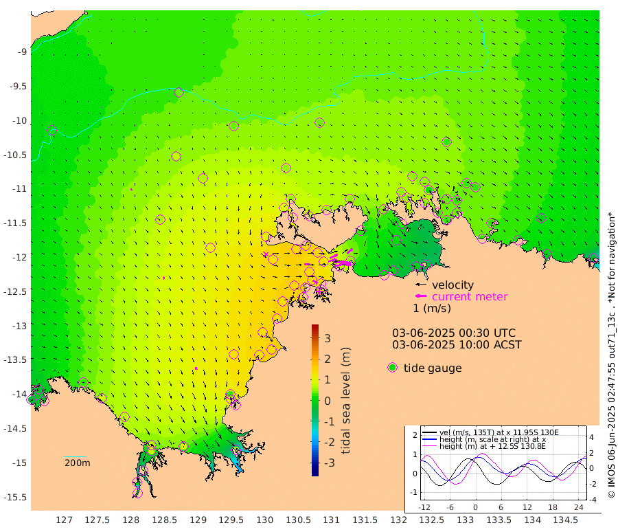 149cm/s 78T +4cm/s rms + 6cm/s 51T. Darwin_C1 52m 100cm/s 91T +4cm/s rms + 7cm/s -161T. Darwin_CW1 22m 76cm/s 74T +4cm/s rms + 8cm/s 61T. Darwin_CW2 34m 67cm/s 49T +3cm/s rms + 9cm/s 98T. Darwin_CW3 22m 109cm/s 89T +5cm/s rms + 7cm/s 88T. Darwin_C3 56m 80cm/s 65T +2cm/s rms + 9cm/s -126T. Darwin_CTbW 22m 0cm/s -65T +9cm/s rms + 2cm/s -110T. NWSLYN 196m 50cm/s 88T +1cm/s rms + 1cm/s -47T. DARBGF 30m 2cm/s 124T +7cm/s rms + 2cm/s -137T. ITFTIS 464m 14cm/s 176T +9cm/s rms + 1cm/s 74T. ITFMHB 146m 24cm/s 166T +4cm/s rms + 1cm/s -134T. ITFJBG 61m 22cm/s 145T +6cm/s rms + 4cm/s 121T. ITFFTB 108m 48cm/s 115T +4cm/s rms + 3cm/s 80T. NRSDAR 19m -29cm Carronade Island -34cm Guy Point -28cm Napier Broome Bay 26cm Lesueur Island 68cm Reveley Island 87cm Rocky Island 78cm Cape Domett 74cm Lacrosse Island 61cm Adolphus Island -15cm Pender Point -43cm Wyndham 64cm The Boxers 68cm Unnamed Shoal 36cm Loxton Shoal 93cm Pelican Island 64cm Calder Shoal 42cm Evans Shoal 52cm Quoin Island 129cm Port Keats 110cm Jones Point 30cm Catfish Island 124cm Cape Scott Offshore 131cm Cape Ford 138cm Anson Bay 52cm Goodrich Bank 133cm Peron Island North 132cm Point Jenny 133cm Native Point 141cm Fish Reef 140cm Tapa Bay 105cm Point Fawcett (Offshore) 140cm Burge Point 144cm Munkunuwa 130cm Beagle A 138cm Parsons Bank 142cm Fenton Patches 40cm Lynedoch Bank 125cm Hancox Shoal Area 143cm Nightcliff 145cm Darwin 142cm Charles Point Patches 79cm Glyde Point 18cm Chambers Bay 4cm Point Stuart 50cm Cape Hotham 21cm Christine Reef 0cm West Alligator Head -28cm East Field Island 31cm Two Hills Bay 108cm Newby Shoal 24cm Camp Point 145cm Medina Inlet South 102cm South Barlow Point 84cm St. Asaph Bay 55cm Cape Van Dieman 61cm Snake Bay 53cm Cache Point 18cm Echo Shoal 53cm Point Jahleel (Off) 54cm Cape Don 50cm Port Essington 56cm Smith Point - West 47cm NW Peacock Island 46cm North Of Jones Shoal 16cm Peacock Island 29cm Point David 51cm D'urville Point 30cm Money Shoal 26cm Copeland Island 40cm Cape Cockburn 35cm One Tree Point 25cm Hogmany Shoal 33cm New Year Island - West 32cm Grant Island 26cm Aurari Bay 17cm Cuthbert Point 26cm North Goulburn Island -1cm Paxie Shoal -5cm Entrance Island -34cm Yabooma Island