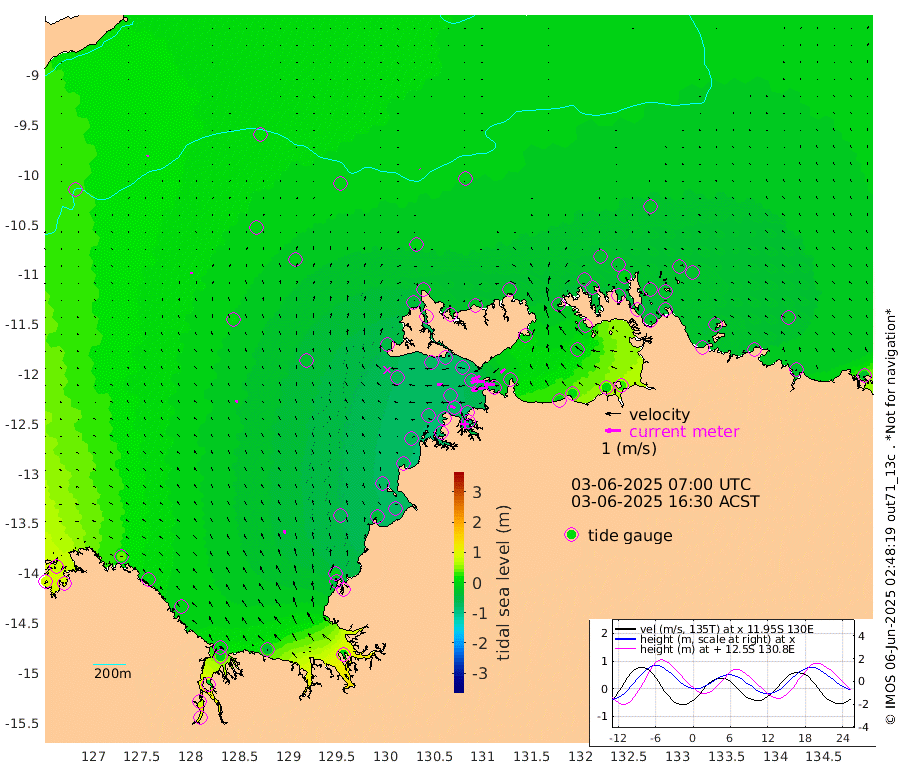 107cm/s -101T +4cm/s rms + 6cm/s 51T. Darwin_C1 52m 66cm/s -90T +4cm/s rms + 7cm/s -161T. Darwin_CW1 22m 50cm/s -106T +4cm/s rms + 8cm/s 61T. Darwin_CW2 34m 39cm/s -130T +3cm/s rms + 9cm/s 98T. Darwin_CW3 22m 64cm/s -91T +5cm/s rms + 7cm/s 88T. Darwin_C3 56m 61cm/s -115T +2cm/s rms + 9cm/s -126T. Darwin_CTbW 22m 2cm/s 114T +9cm/s rms + 2cm/s -110T. NWSLYN 196m 39cm/s -89T +1cm/s rms + 1cm/s -47T. DARBGF 30m 6cm/s 10T +7cm/s rms + 2cm/s -137T. ITFTIS 464m 15cm/s 7T +9cm/s rms + 1cm/s 74T. ITFMHB 146m 25cm/s -19T +4cm/s rms + 1cm/s -134T. ITFJBG 61m 20cm/s -25T +6cm/s rms + 4cm/s 121T. ITFFTB 108m 36cm/s -64T +4cm/s rms + 3cm/s 80T. NRSDAR 19m 76cm Carronade Island 79cm Guy Point 87cm Napier Broome Bay 35cm Lesueur Island -7cm Reveley Island 3cm Rocky Island -8cm Cape Domett -9cm Lacrosse Island -3cm Adolphus Island 76cm Pender Point 95cm Wyndham 1cm The Boxers -6cm Unnamed Shoal 17cm Loxton Shoal -37cm Pelican Island -6cm Calder Shoal -3cm Evans Shoal 2cm Quoin Island -55cm Port Keats -48cm Jones Point -10cm Catfish Island -64cm Cape Scott Offshore -43cm Cape Ford -77cm Anson Bay -10cm Goodrich Bank -76cm Peron Island North -67cm Point Jenny -64cm Native Point -76cm Fish Reef -73cm Tapa Bay -51cm Point Fawcett (Offshore) -68cm Burge Point -78cm Munkunuwa -61cm Beagle A -81cm Parsons Bank -70cm Fenton Patches -2cm Lynedoch Bank -73cm Hancox Shoal Area -82cm Nightcliff -77cm Darwin -73cm Charles Point Patches -36cm Glyde Point -5cm Chambers Bay 7cm Point Stuart -26cm Cape Hotham -1cm Christine Reef 11cm West Alligator Head 34cm East Field Island -13cm Two Hills Bay -28cm Newby Shoal 3cm Camp Point -76cm Medina Inlet South -48cm South Barlow Point -35cm St. Asaph Bay -14cm Cape Van Dieman -18cm Snake Bay -16cm Cache Point 25cm Echo Shoal -20cm Point Jahleel (Off) -27cm Cape Don -26cm Port Essington -33cm Smith Point - West -29cm NW Peacock Island -26cm North Of Jones Shoal -10cm Peacock Island -28cm Point David -35cm D'urville Point -18cm Money Shoal -30cm Copeland Island -44cm Cape Cockburn -30cm One Tree Point -27cm Hogmany Shoal -25cm New Year Island - West -27cm Grant Island -36cm Aurari Bay -32cm Cuthbert Point -34cm North Goulburn Island -17cm Paxie Shoal -24cm Entrance Island -25cm Yabooma Island